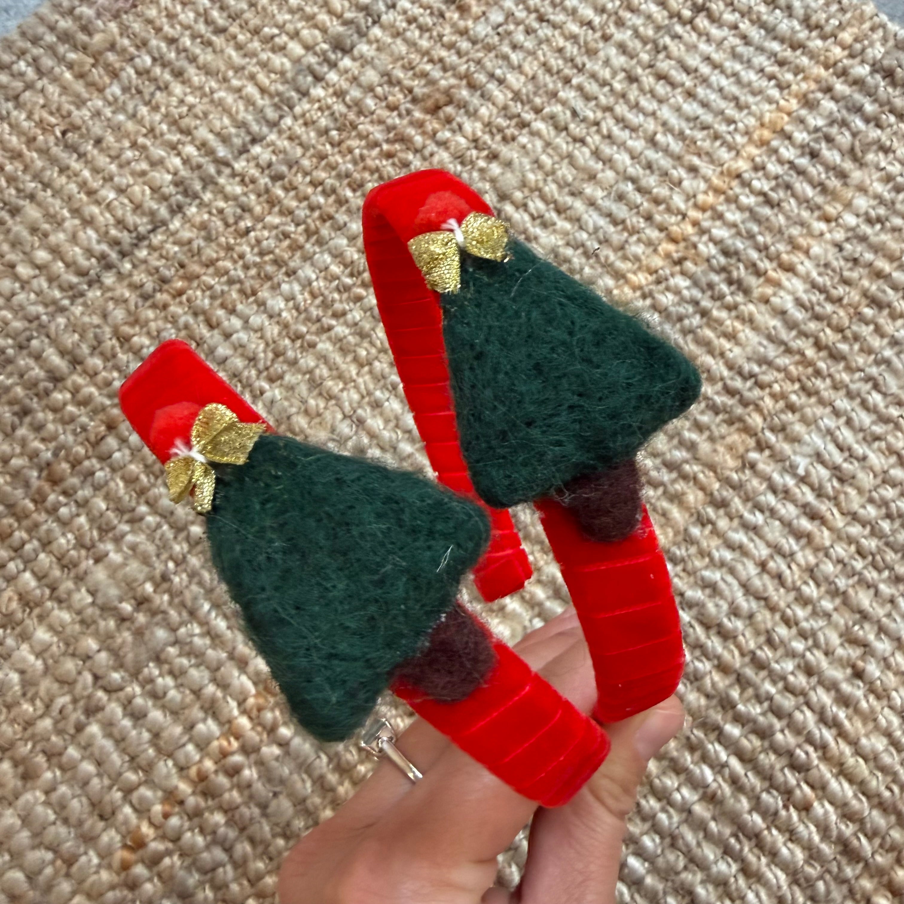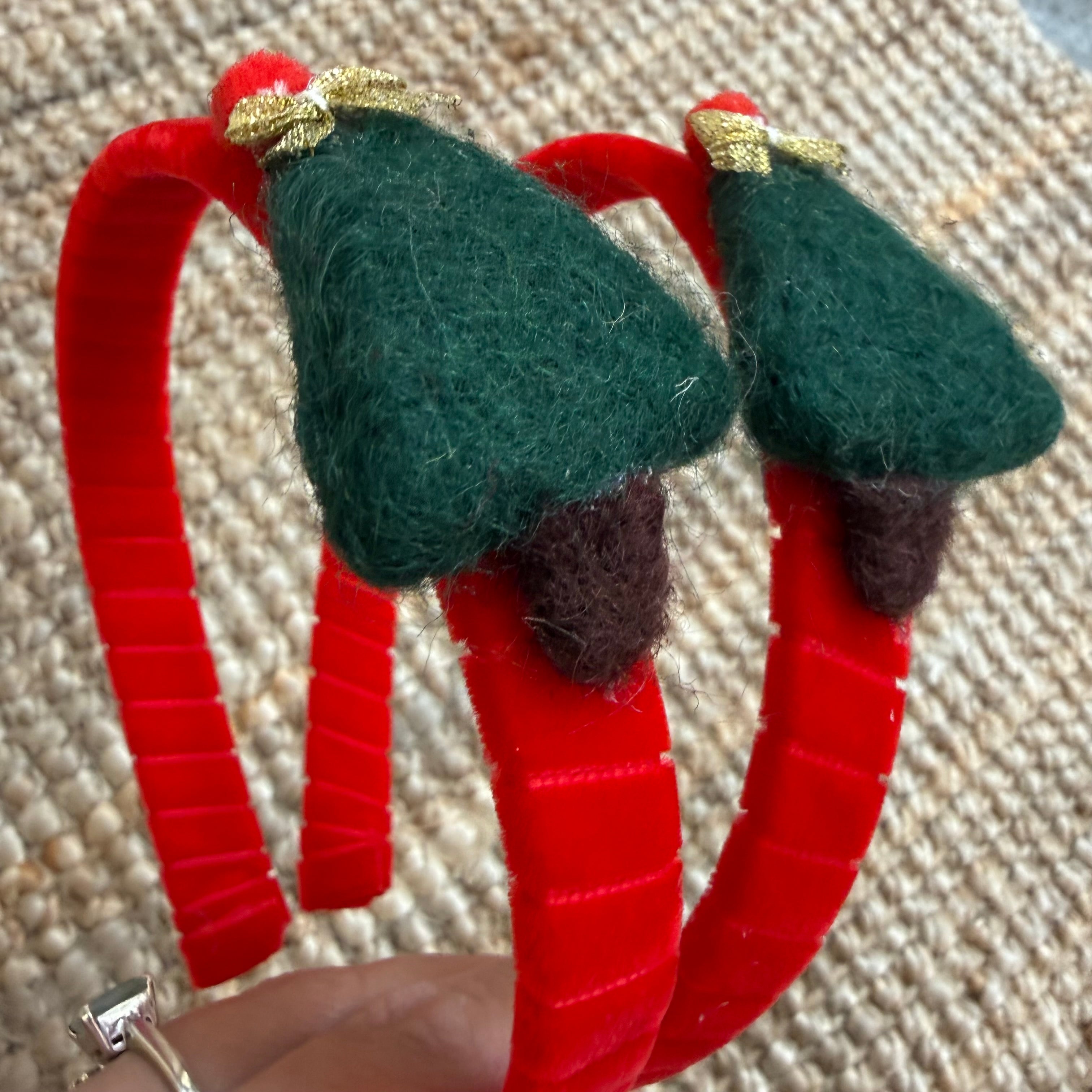 Cerchietto LAB rivestito in velluto con alberino di Natale