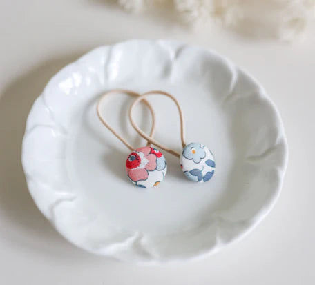 Adorabile set di 2 elastici rifiniti con bottone rivestito in tessuto originale Liberty of London