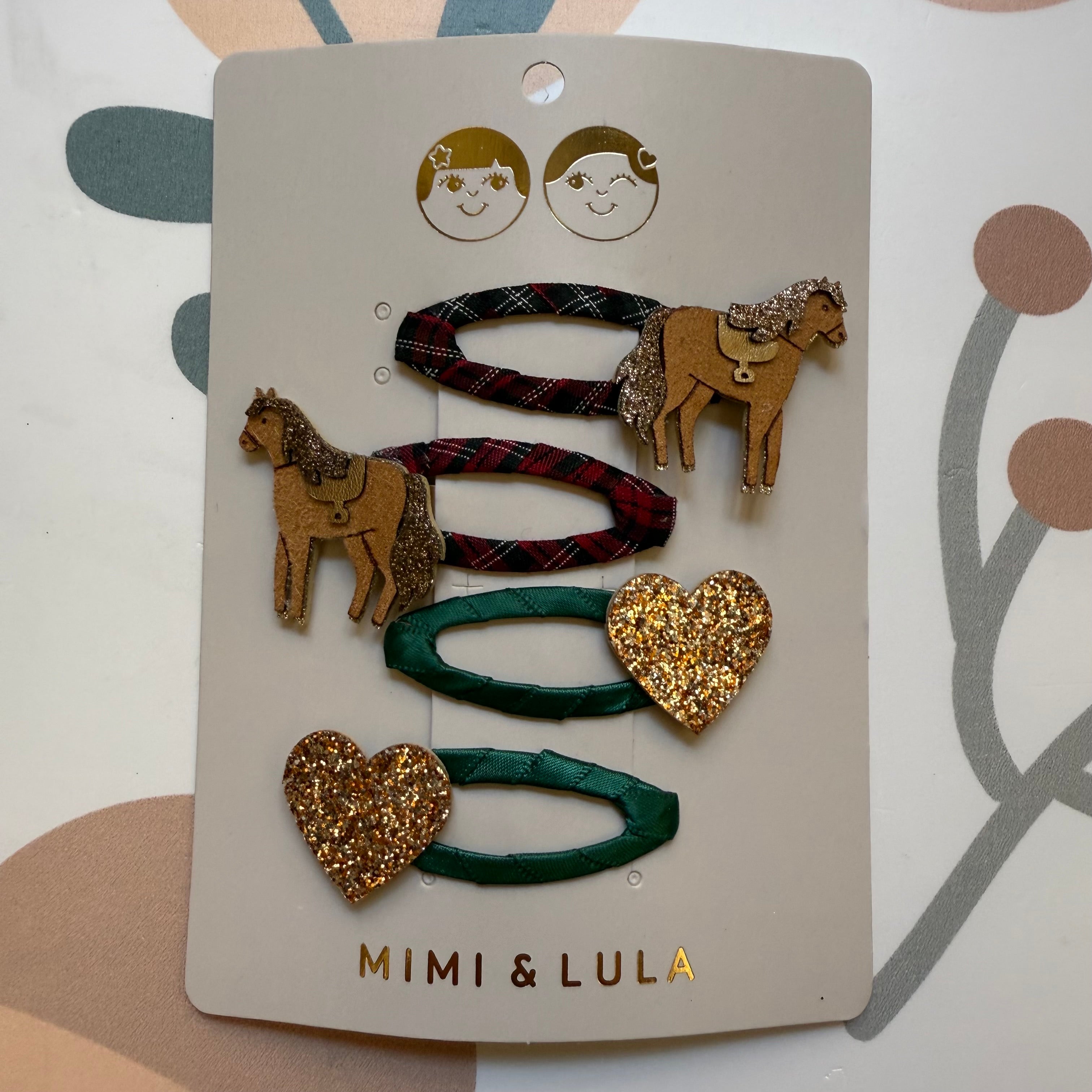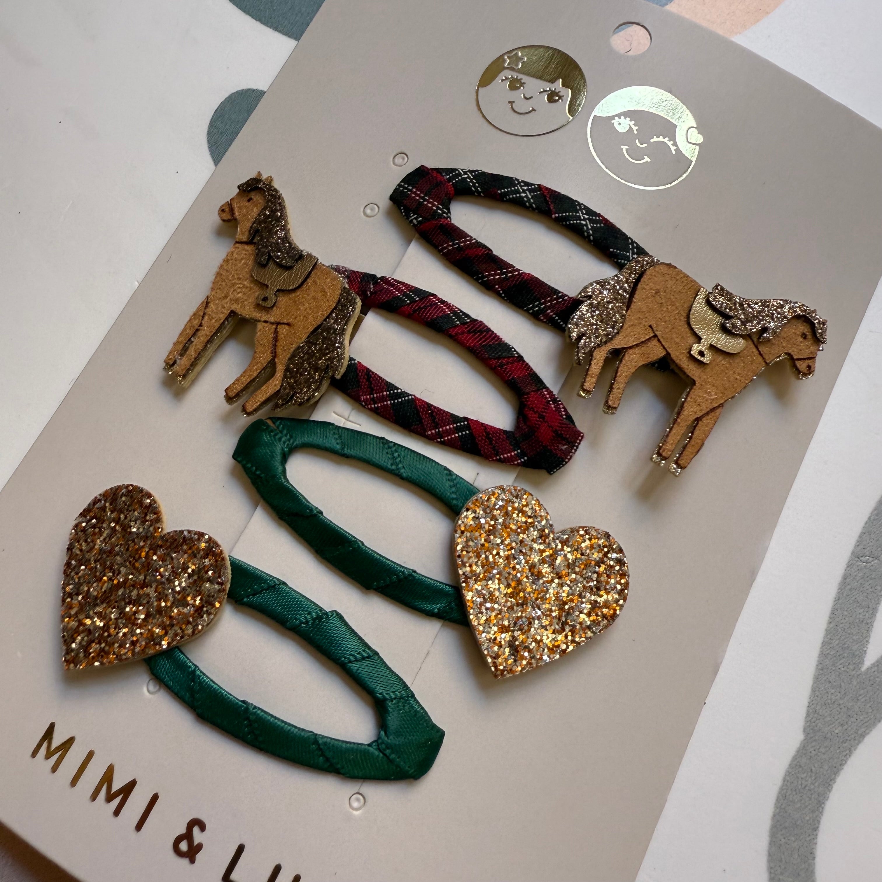 Pack mollette clips cavalli e cuori glitter Mimi & Lula