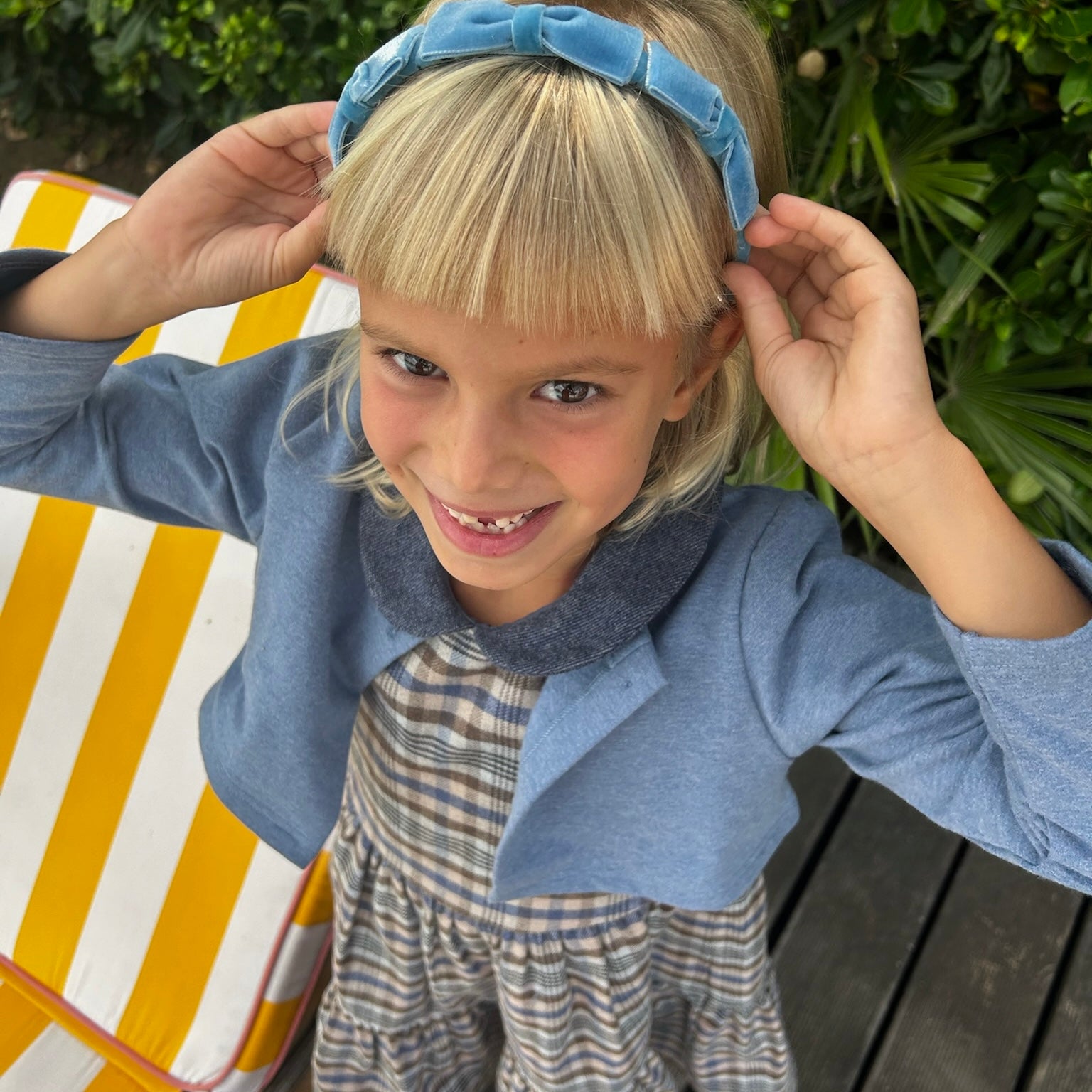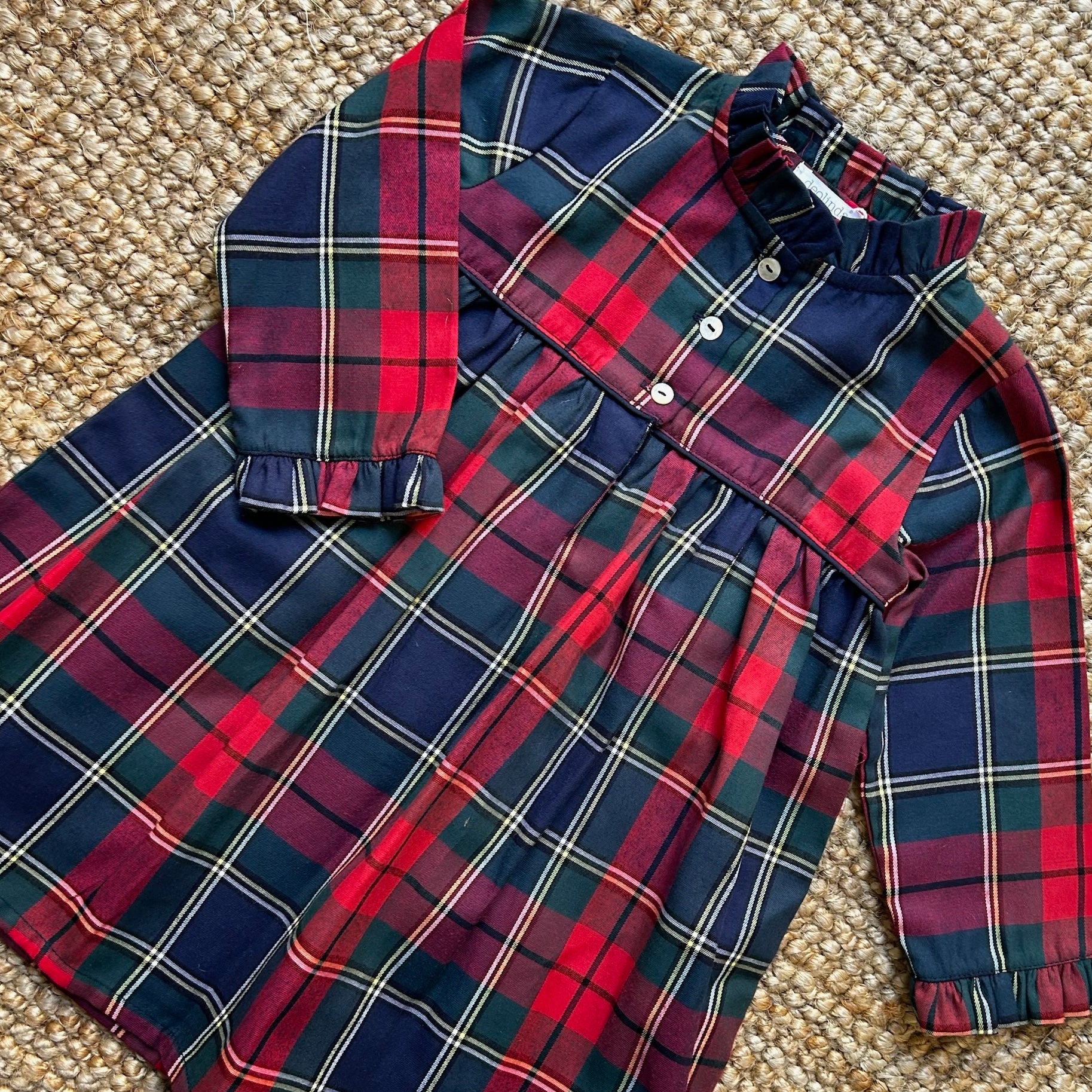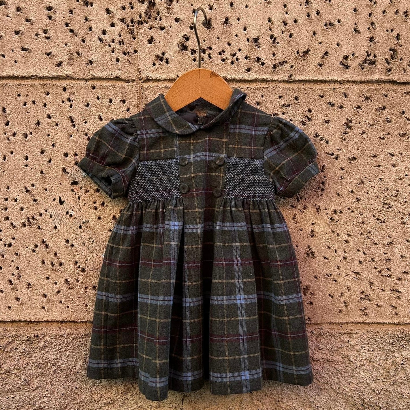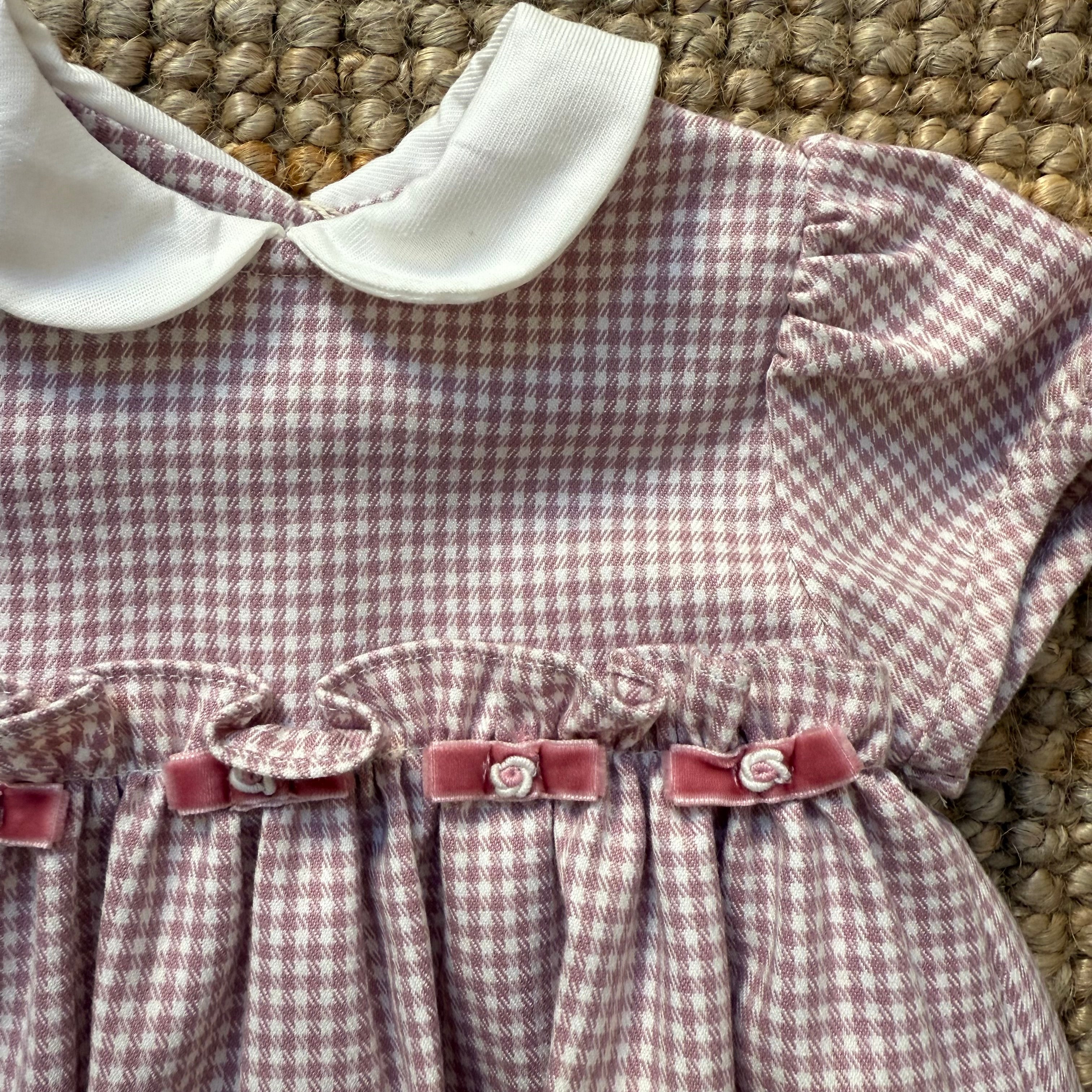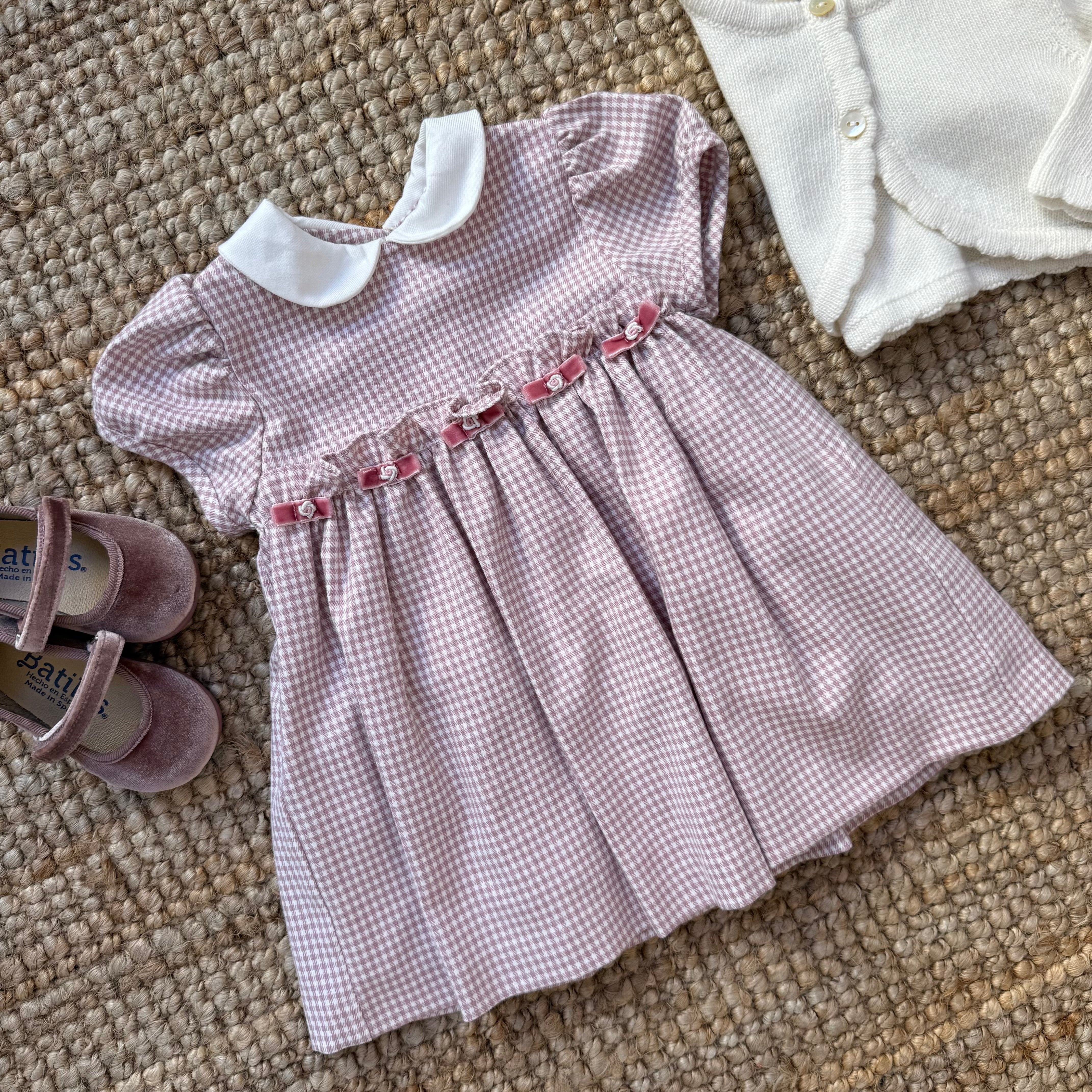 Abito in flanella vichy con fiocchi velluto e roselline Isi F25I113VENC
