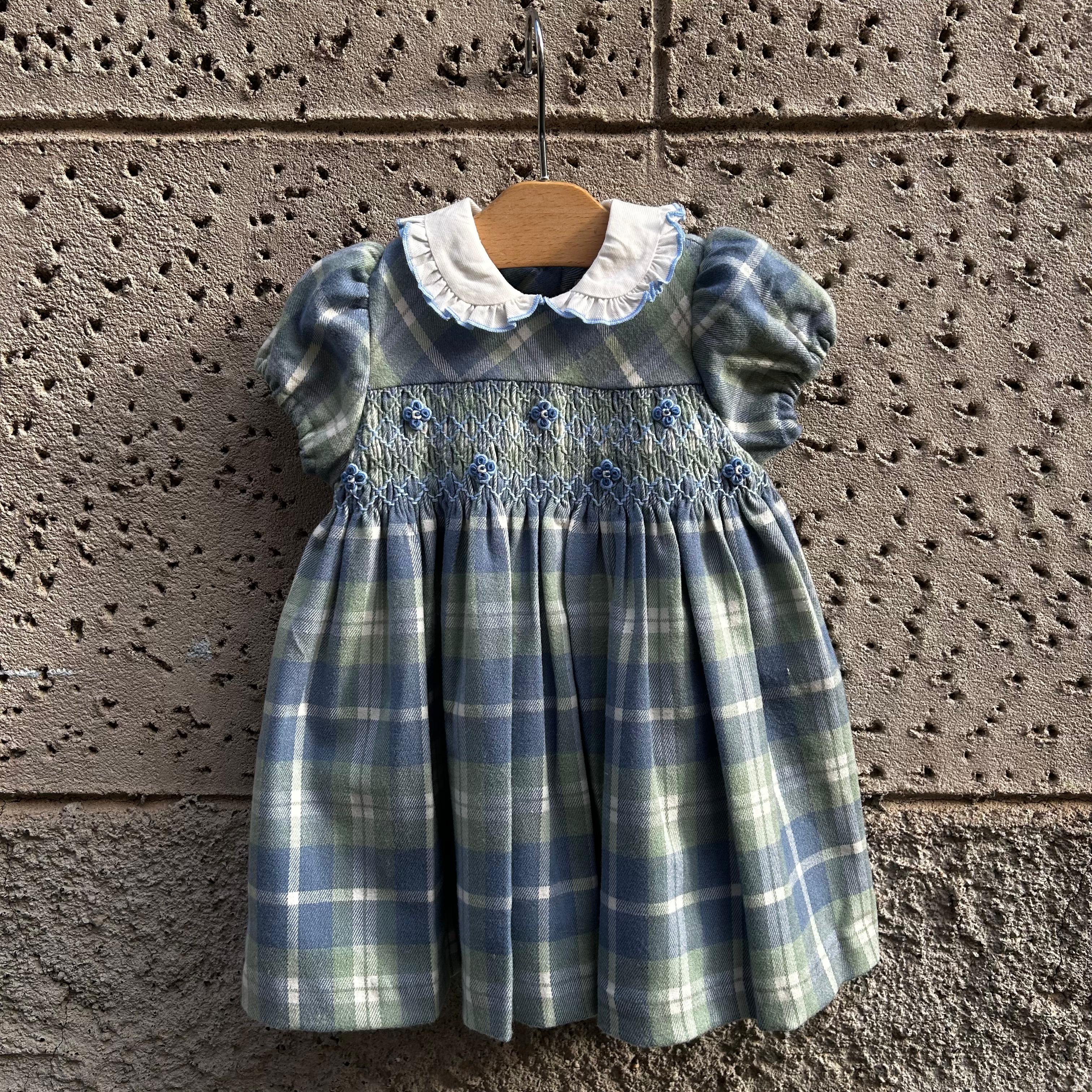Abito tartan cielo/salvia con ricamo punto smock Malvi F25I018VERS