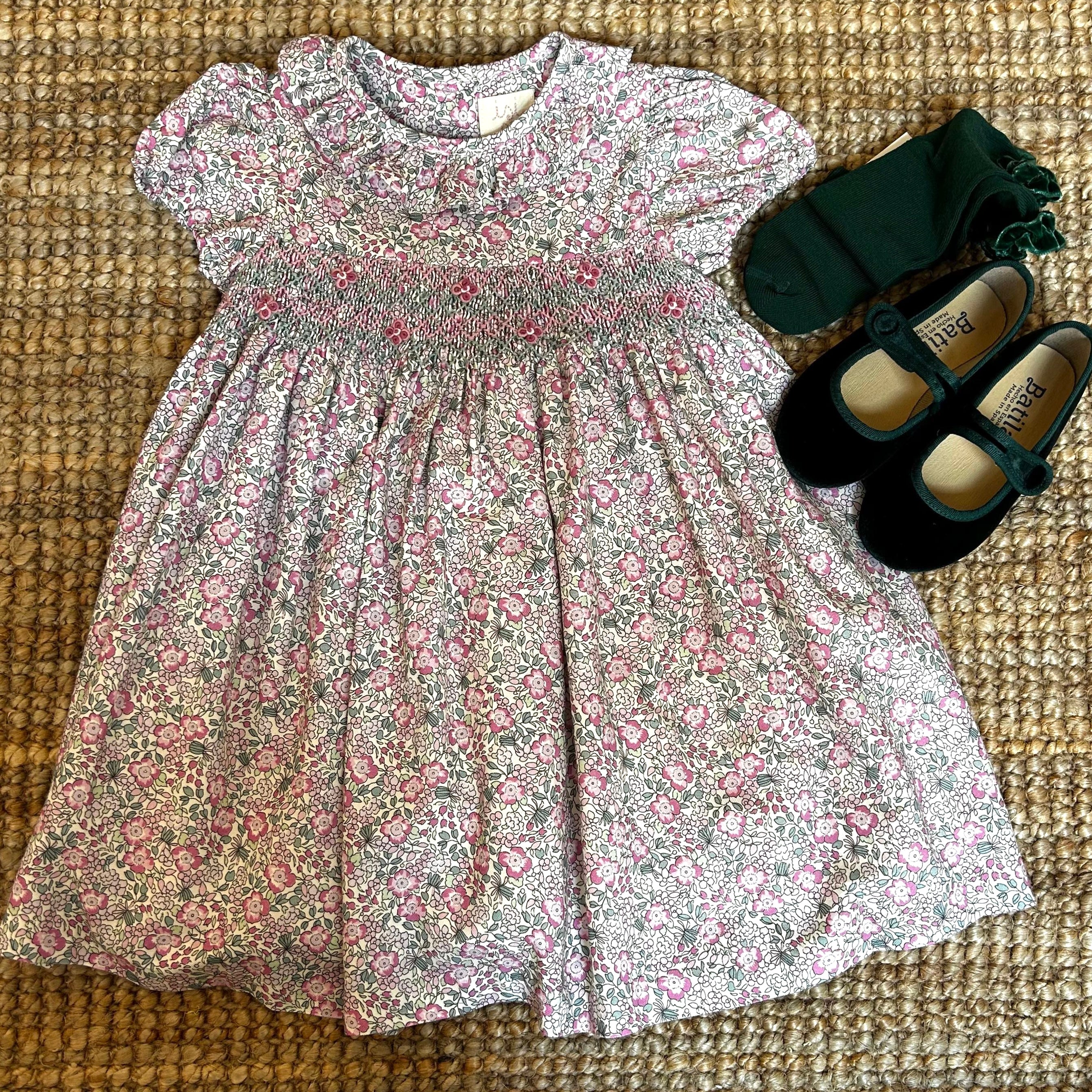 Abito newborn fiorellini con ricamo punto smock Malvi F25I109VEPT