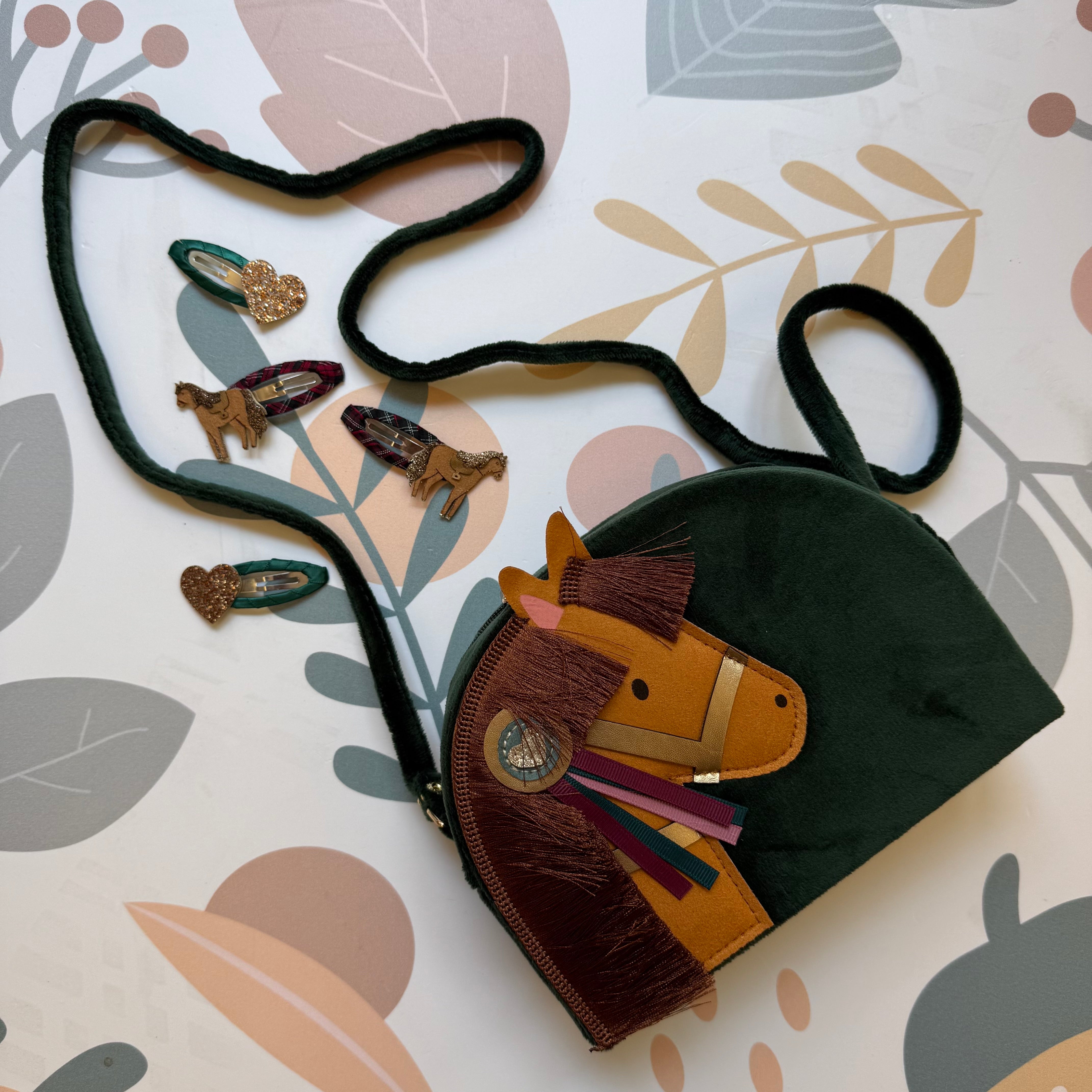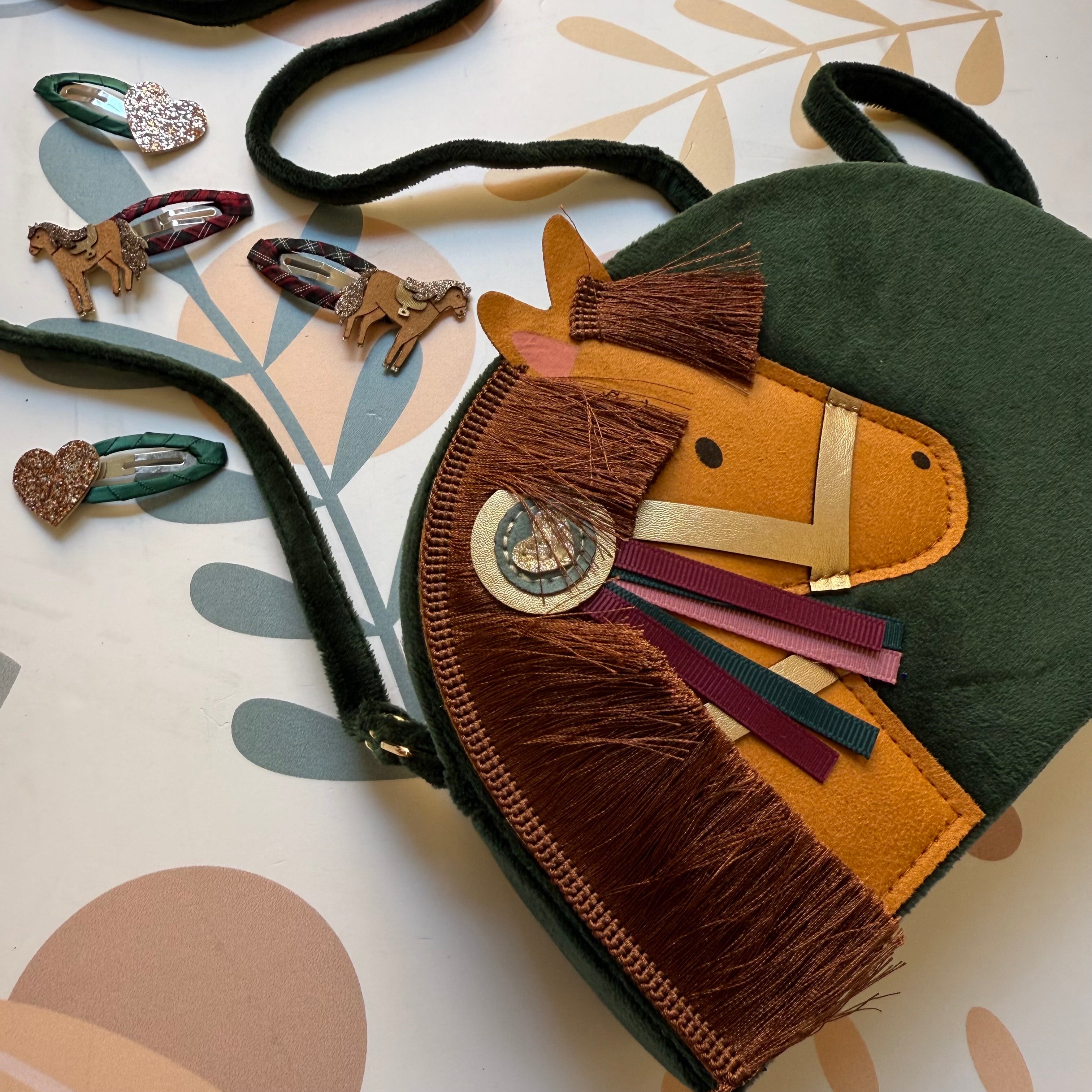 Borsina a tracolla velluto verde cavallo Mimi & Lula