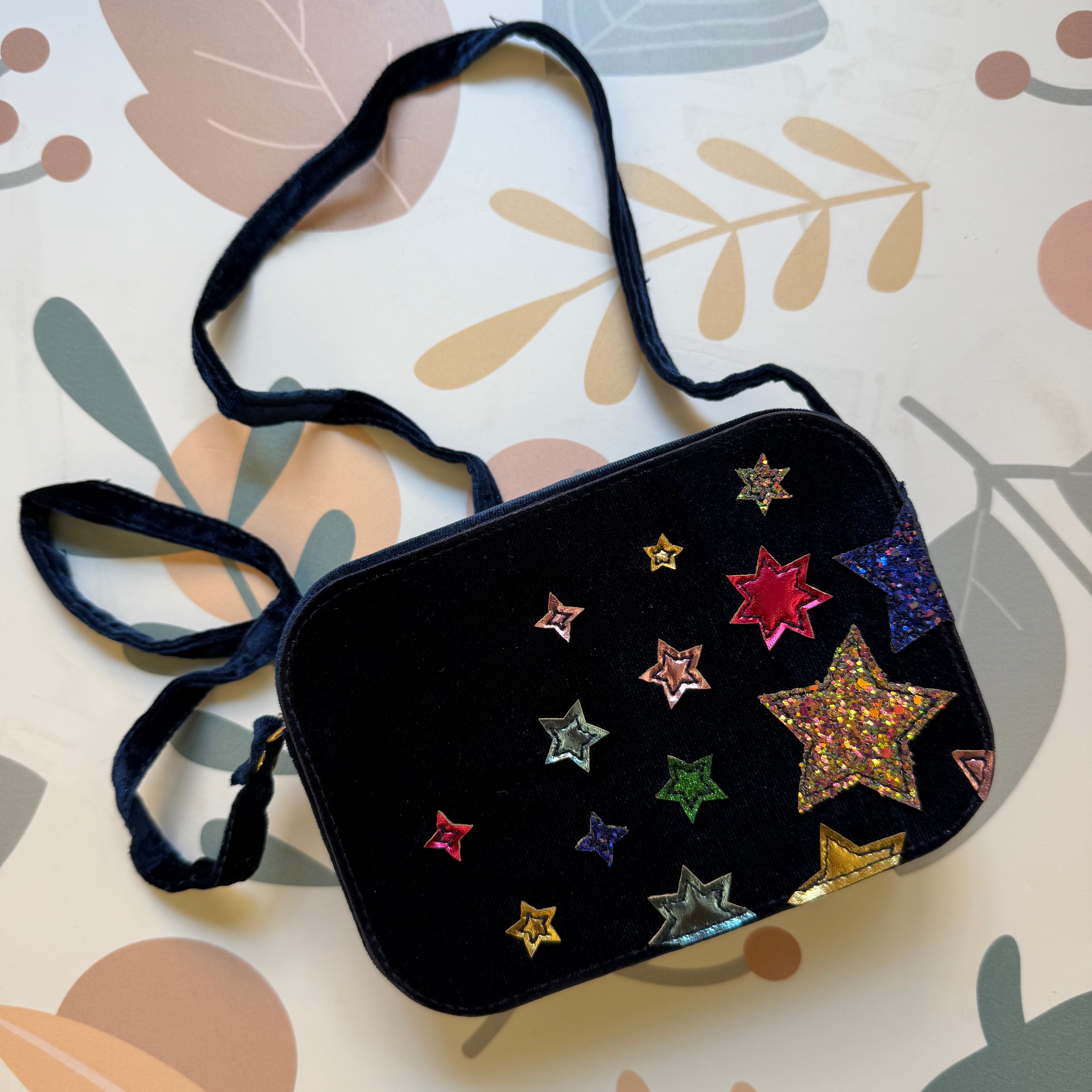Borsina a tracolla velluto blu e stelle glitter Mimi & Lula