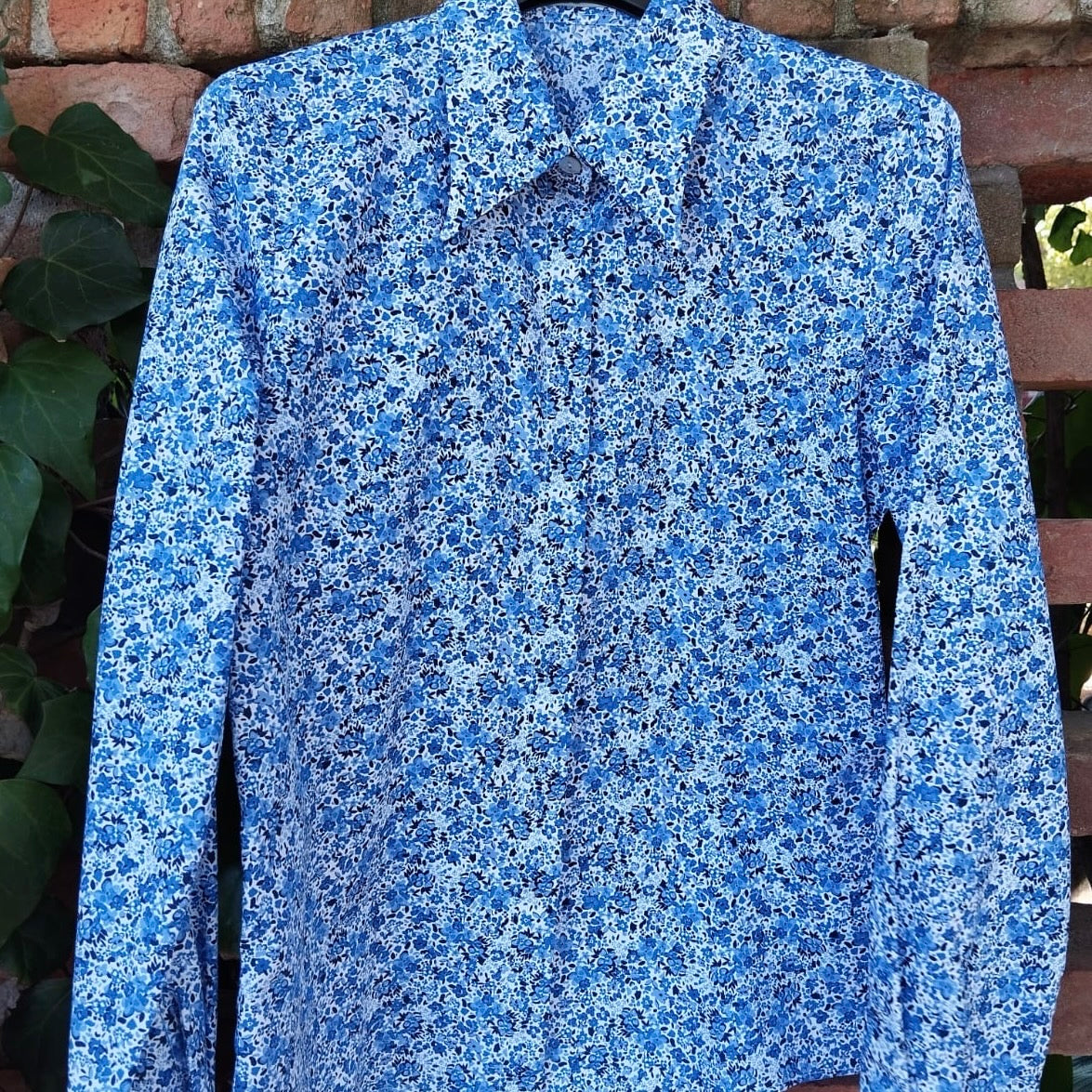 Camicia donna LAB tessuto fiorellini toni dell’azzurro