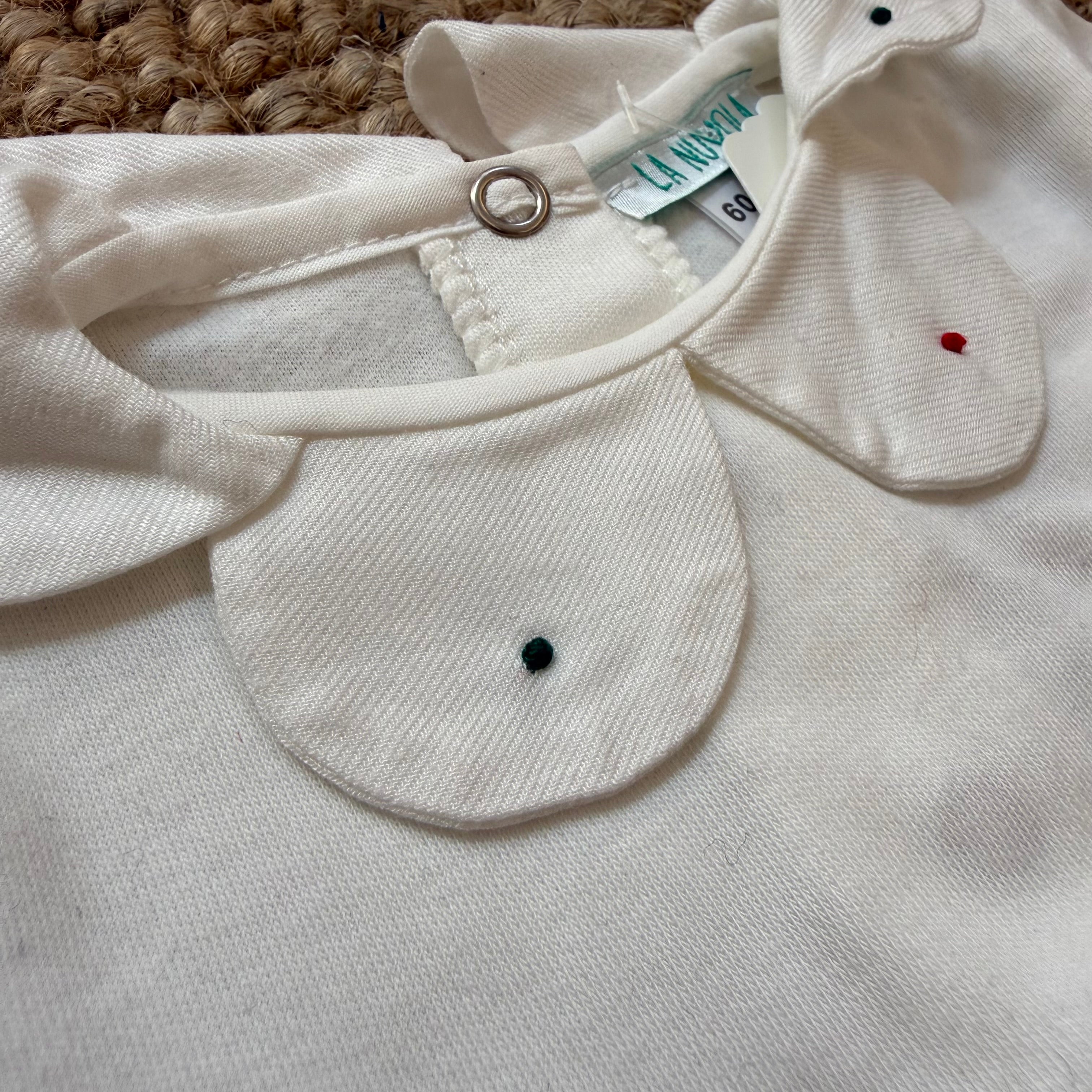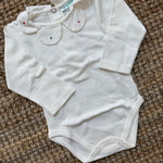 Body newborn manica lunga in jersey con colletto ricamato a mano