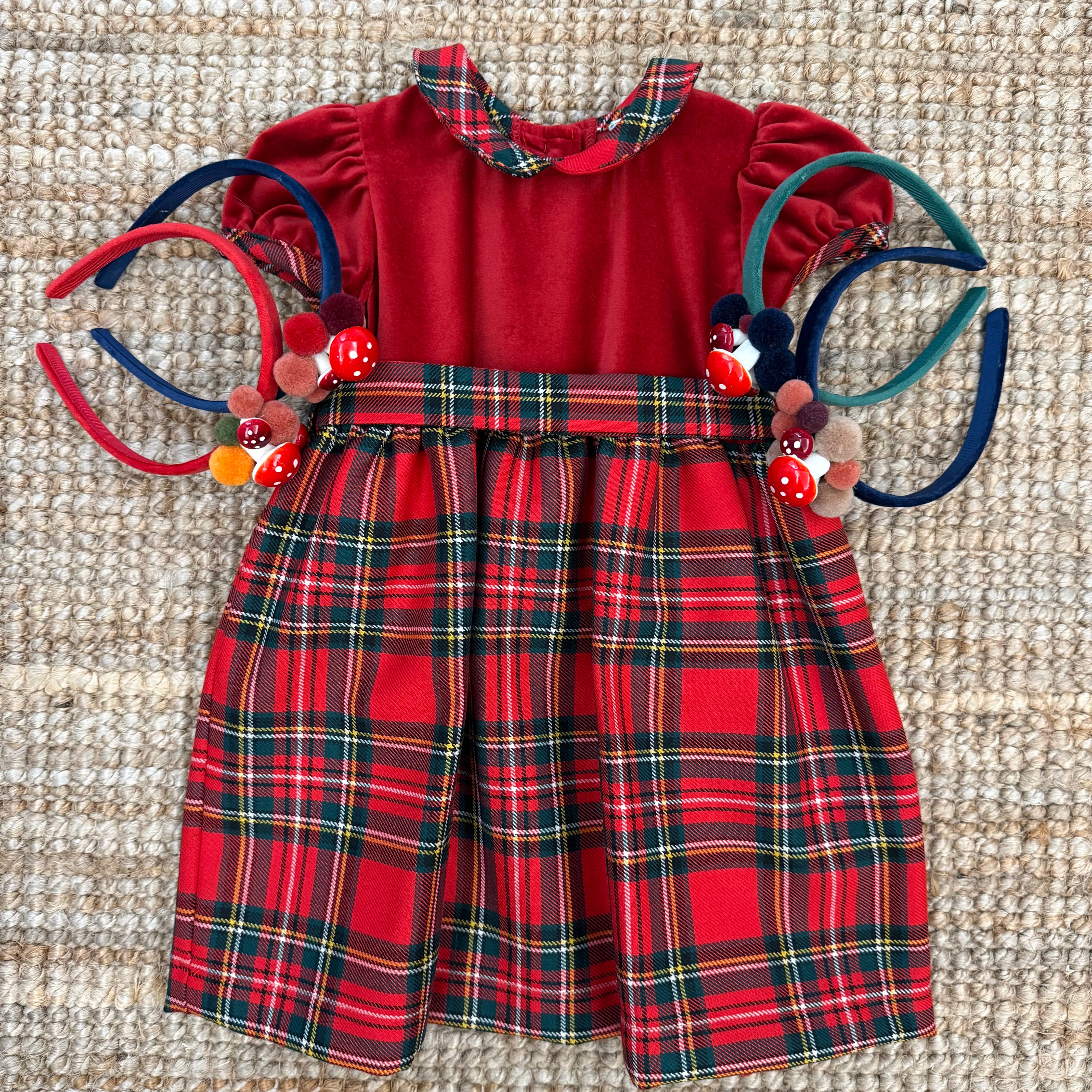Abito newborn tartan con ricamo punto smock con coulotte Isi FCCI150VERR