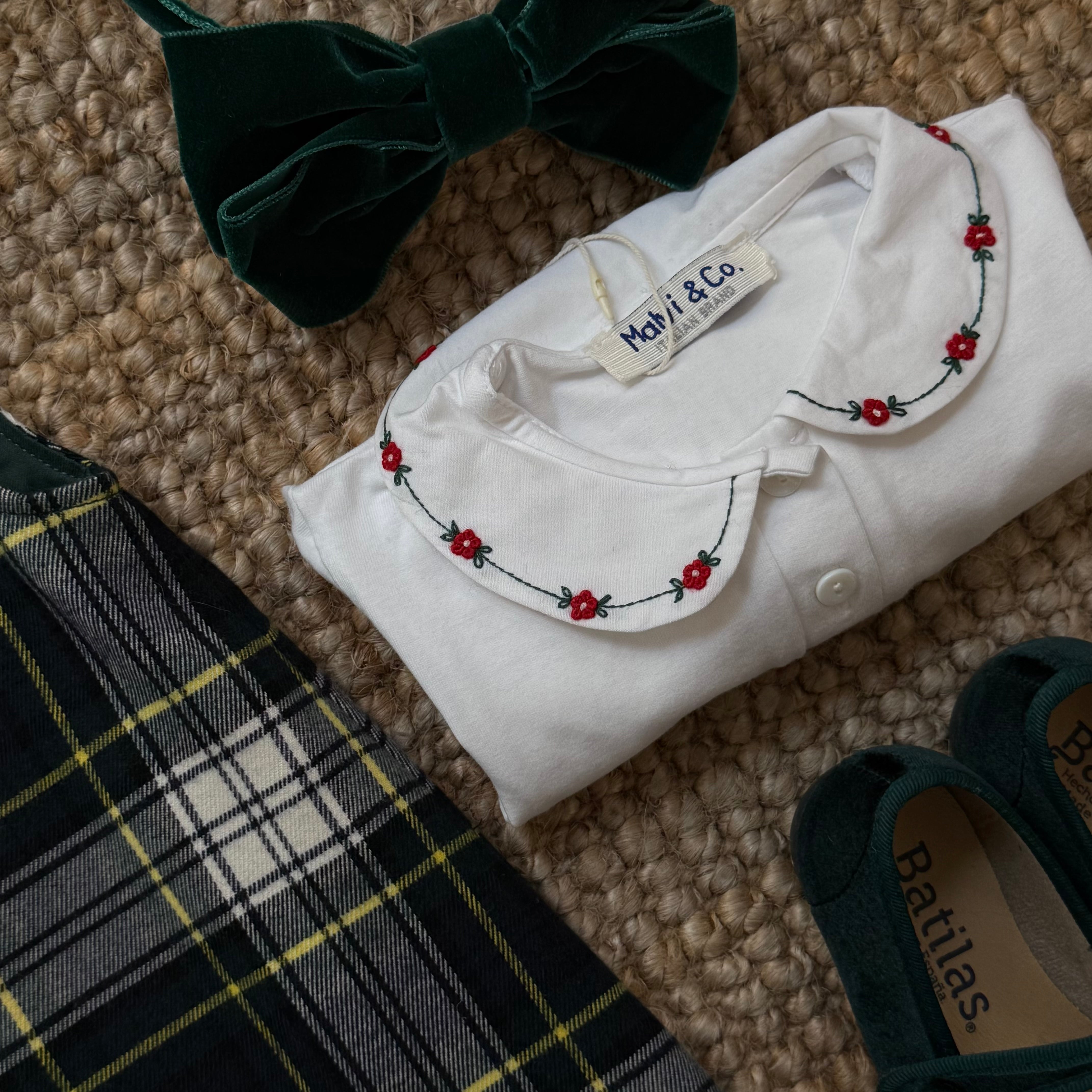 Polo LAB Sara colletto frill verde e ricamo natalizio