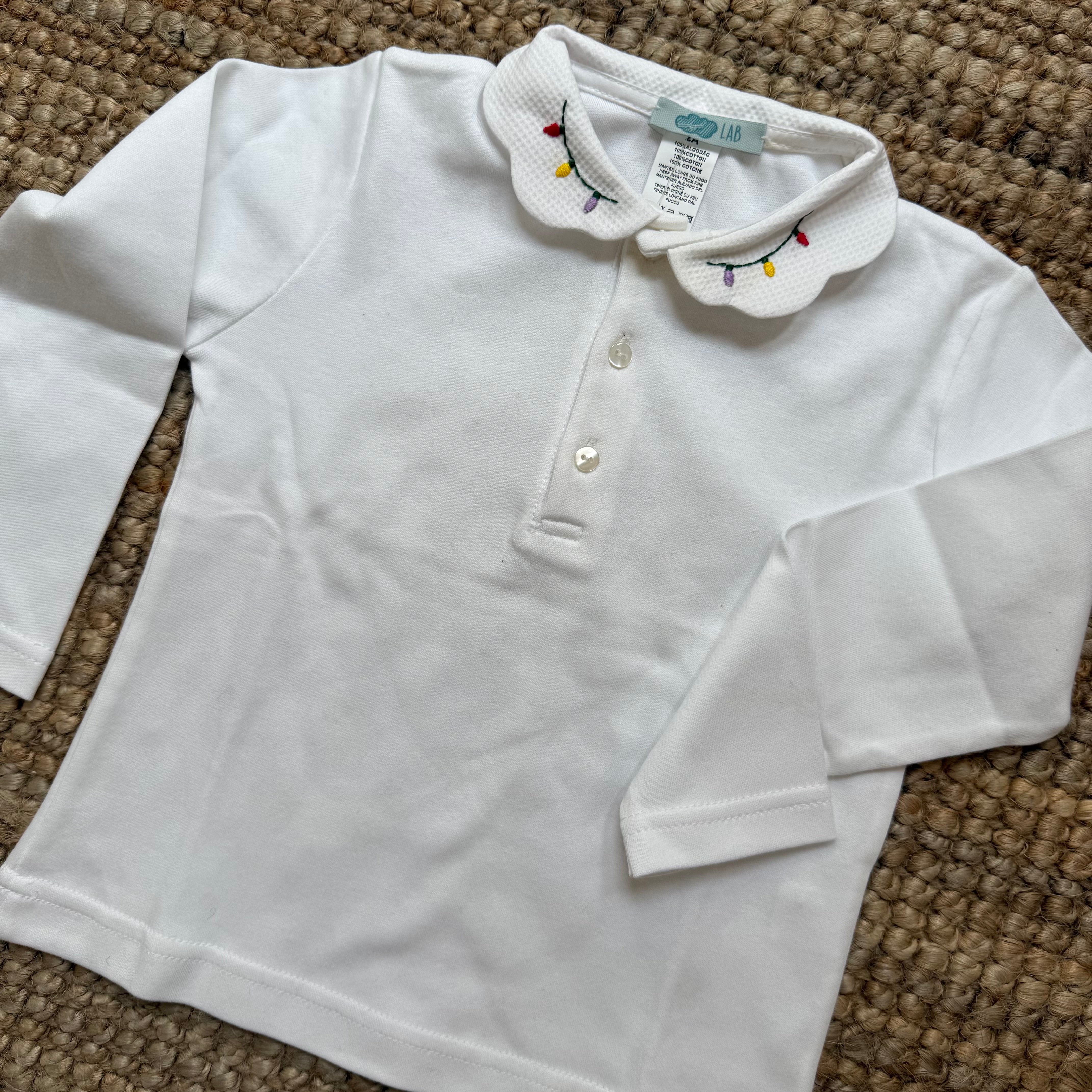 Polo LAB colletto petalo e ricamo luci natalizie