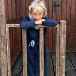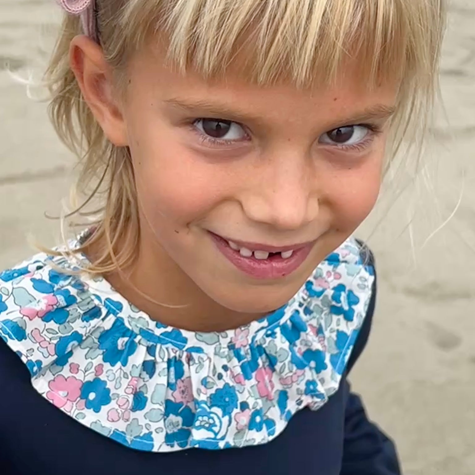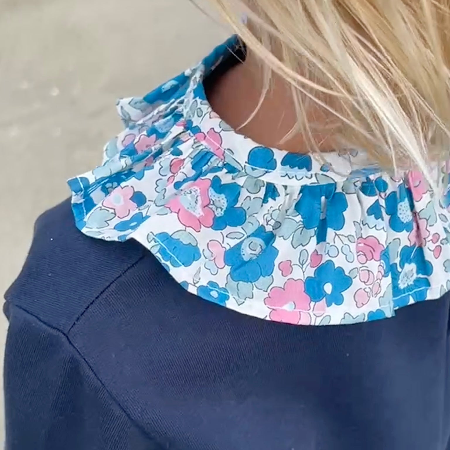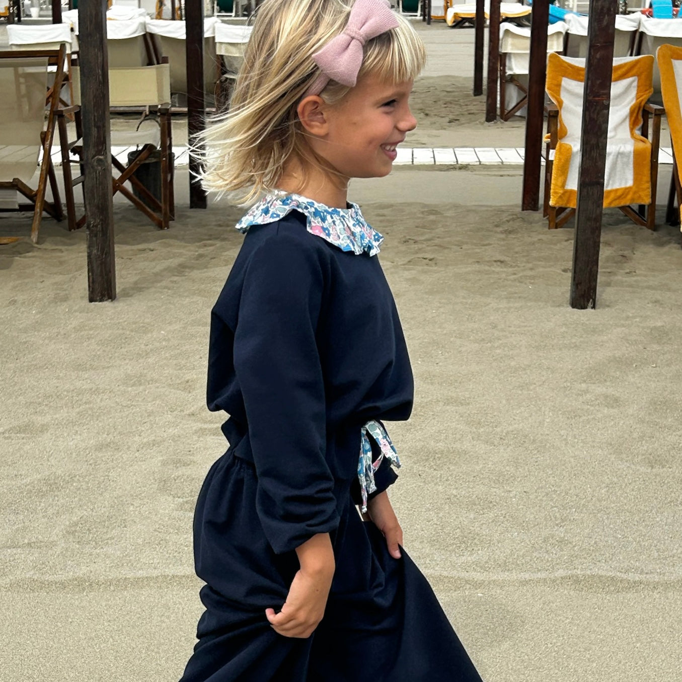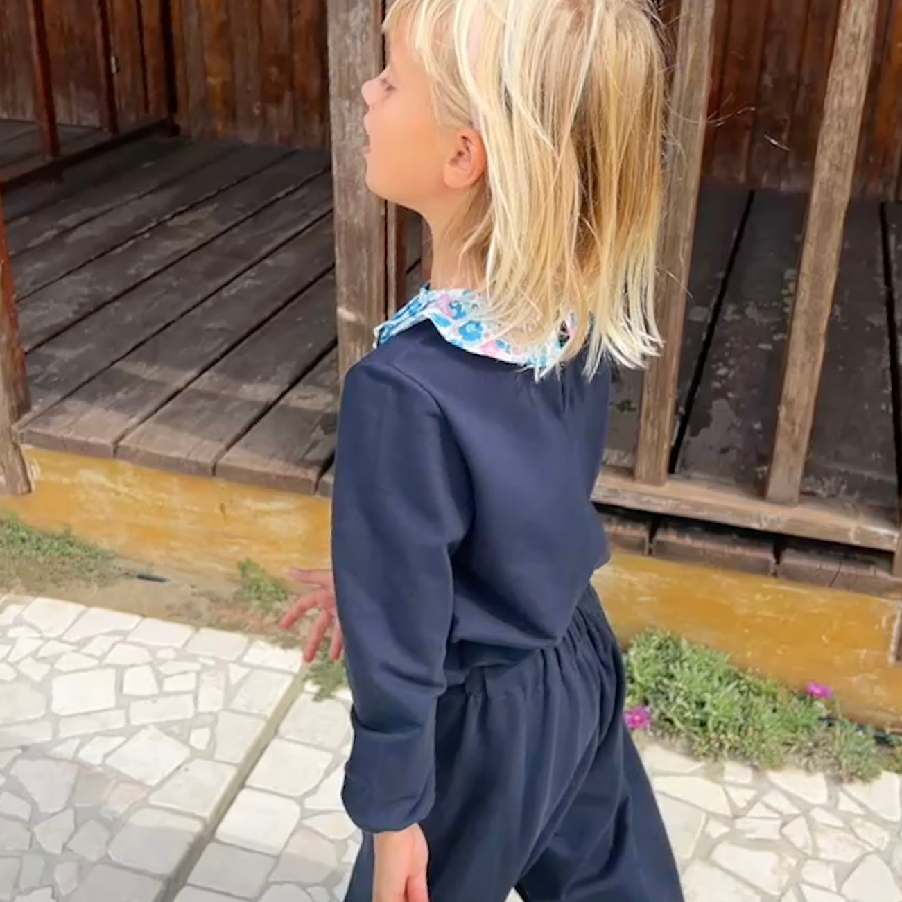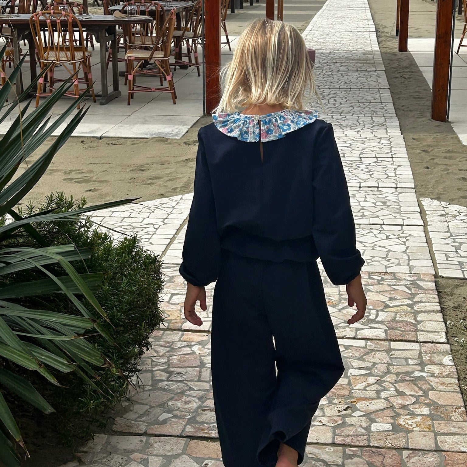 Completo LAB Barbara felpa colletto e coulisse fiorellini + palazzo blu scuro