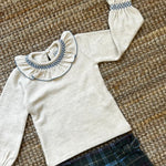 Maglioncino con collo frill e polsini con ricamo in contrasto