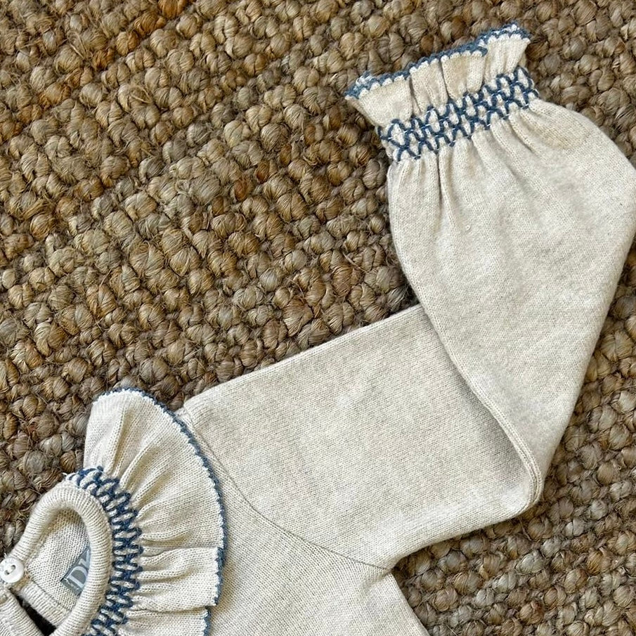 Maglioncino burro collo frill con ricamo azzurro Dr Kid DK310