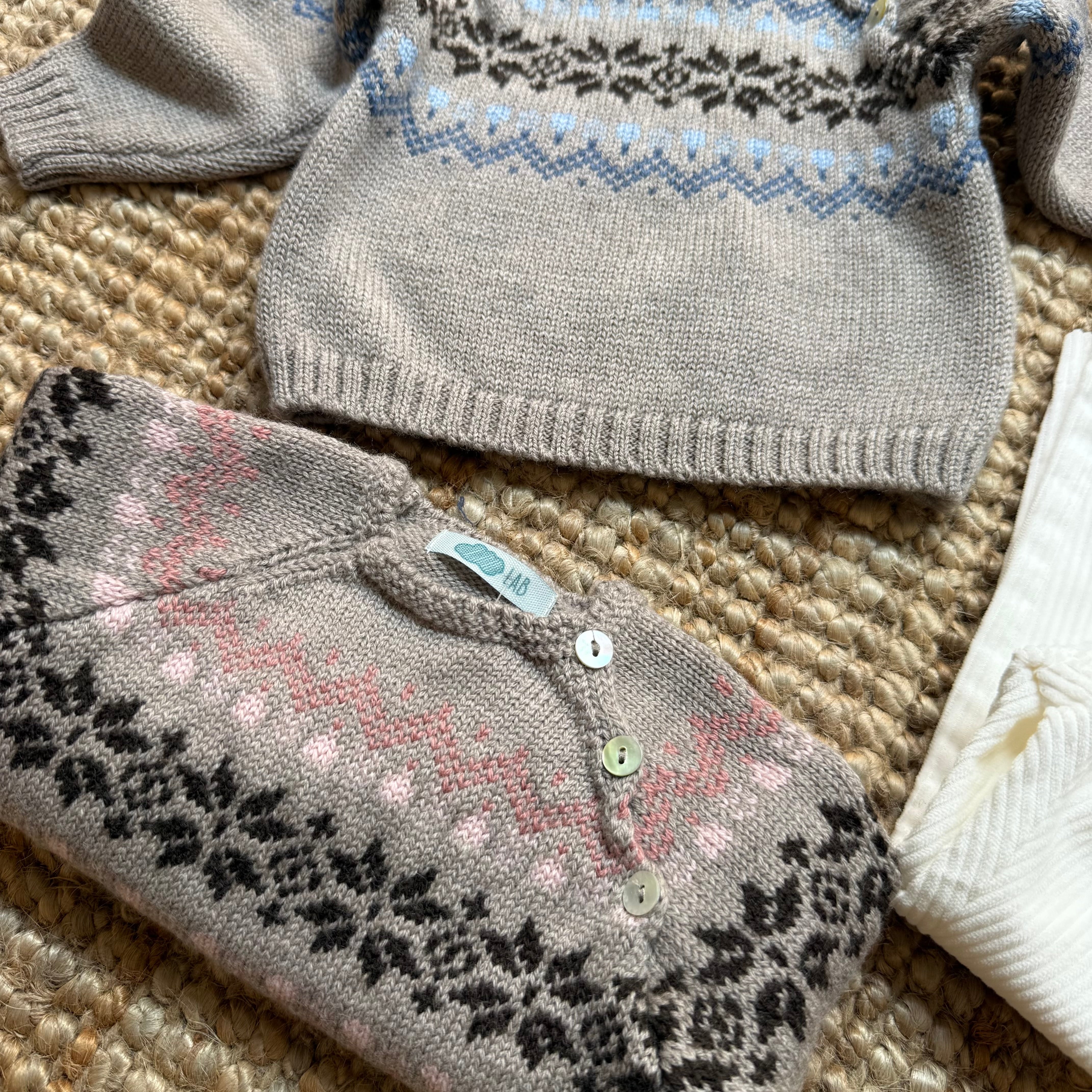 Maglione jacquard tortora rosa Mi Lucero x LA NUVOLA LAB I25286