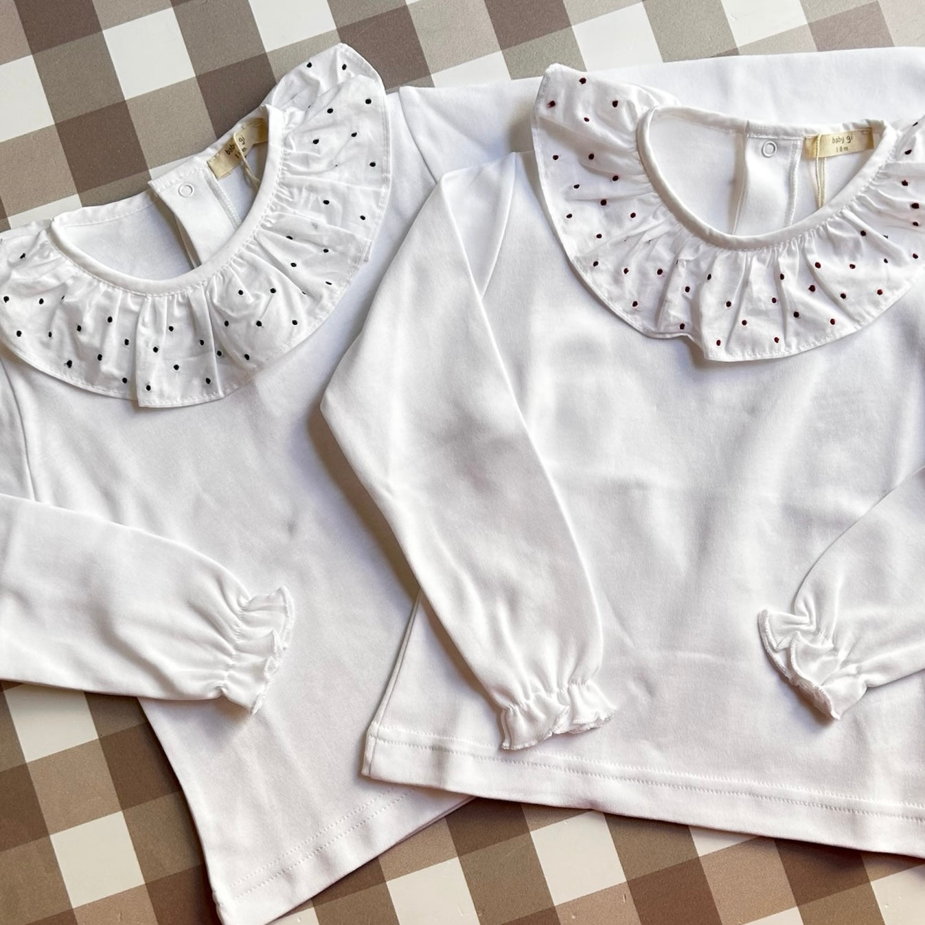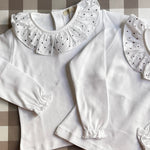 Polo manica lunga con colletto pierrot ricamato con delicati pois
