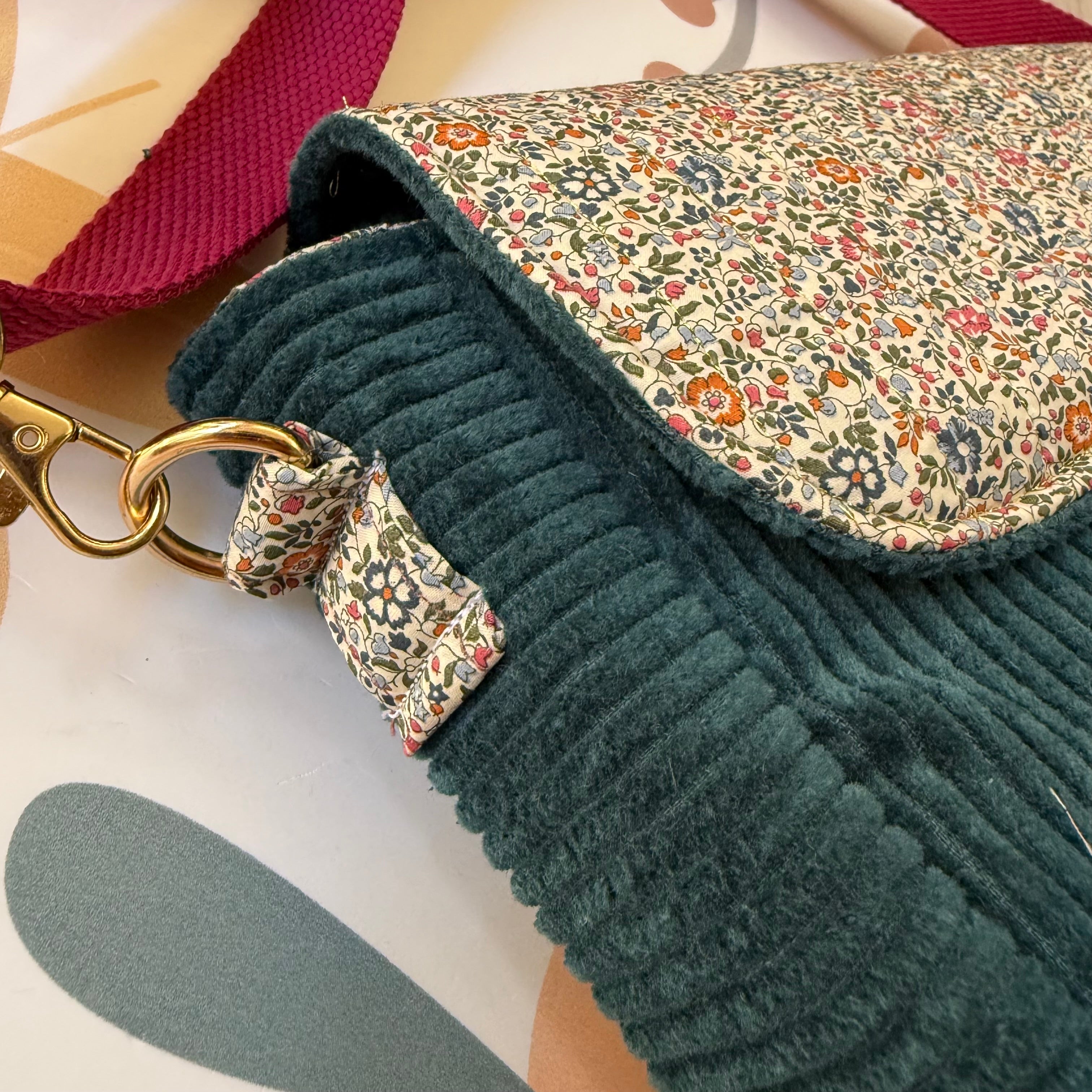 Tracolla patchwork LAB velluto petrolio + fiorellini