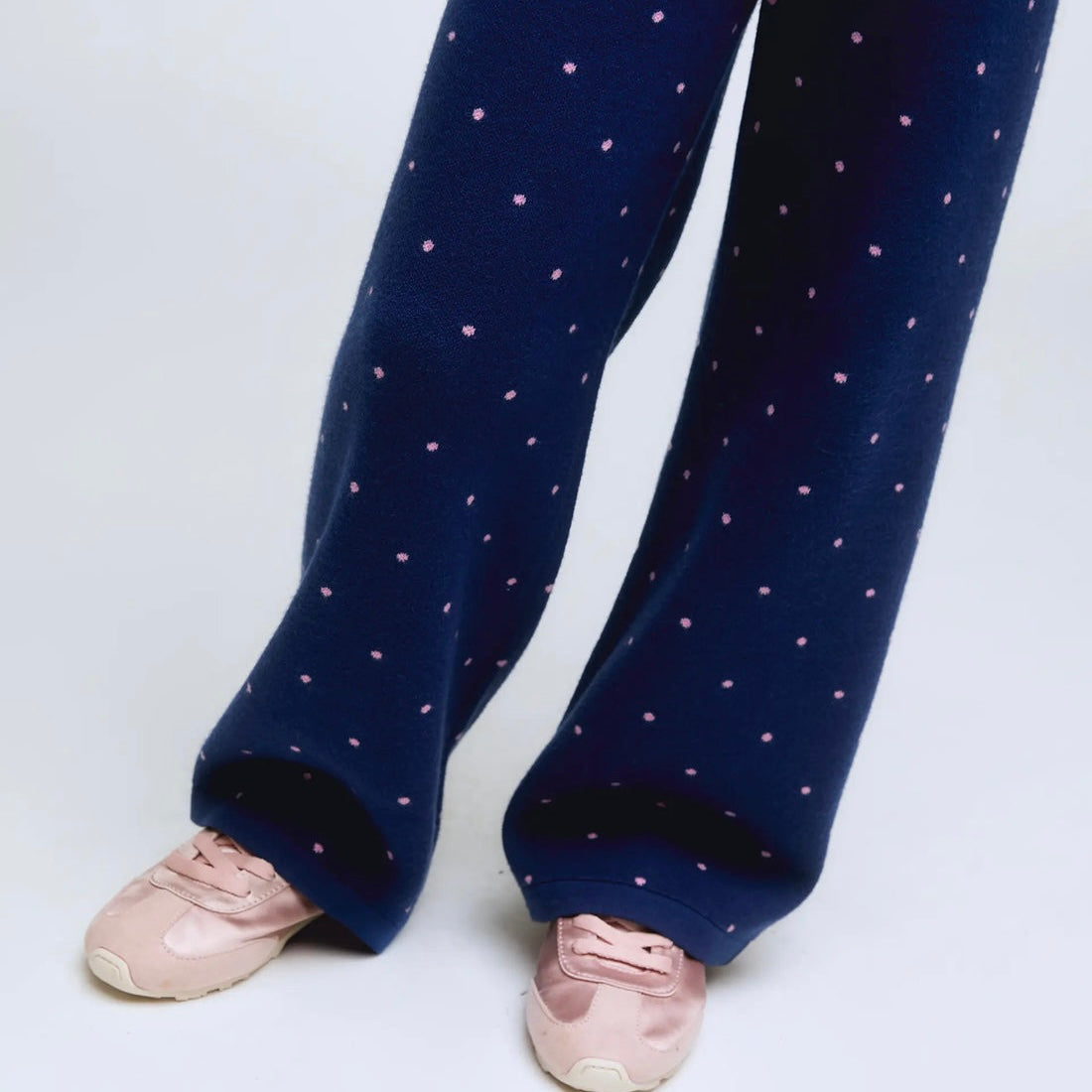 Pantalone Compania Fantastica in maglia blu micropois rosa 10301