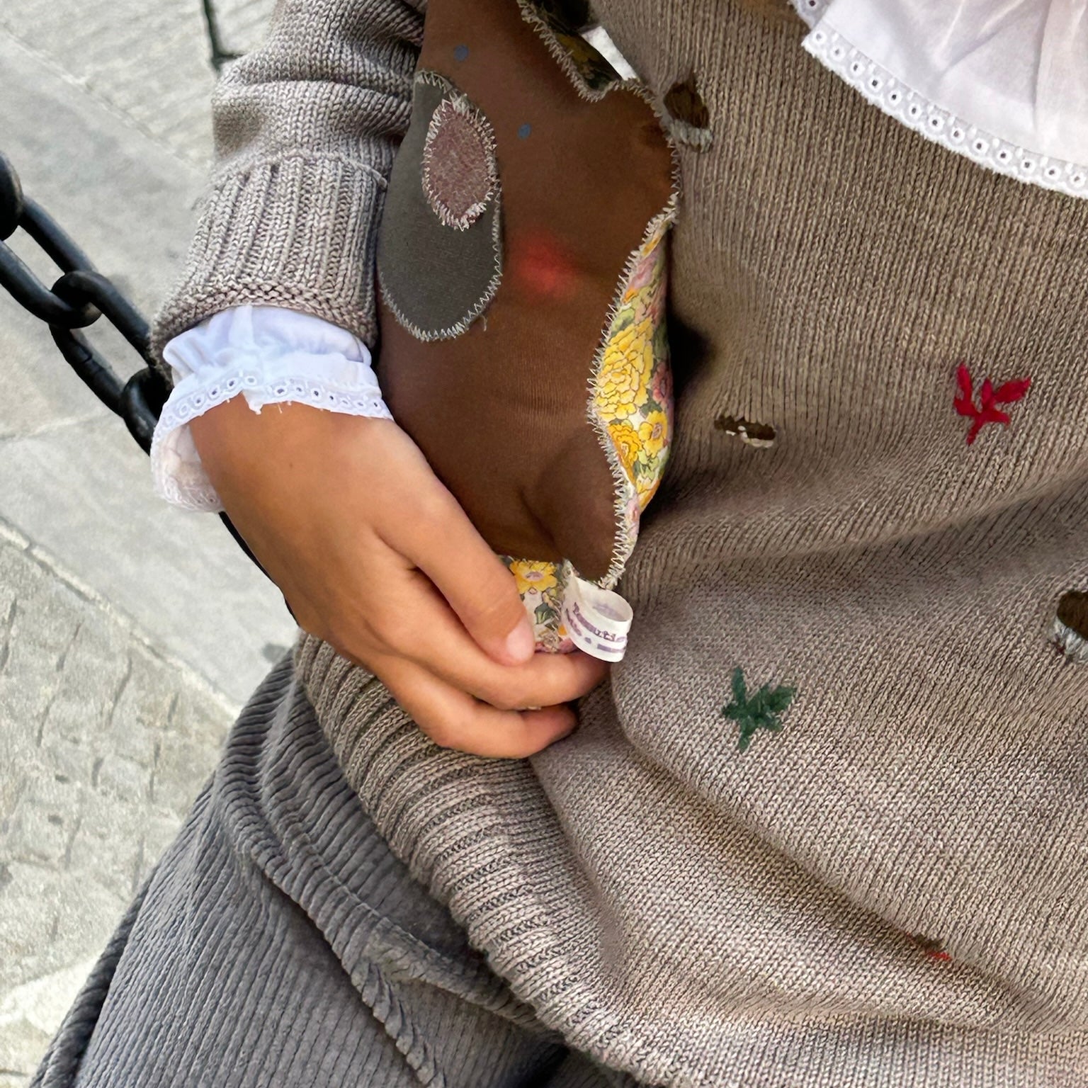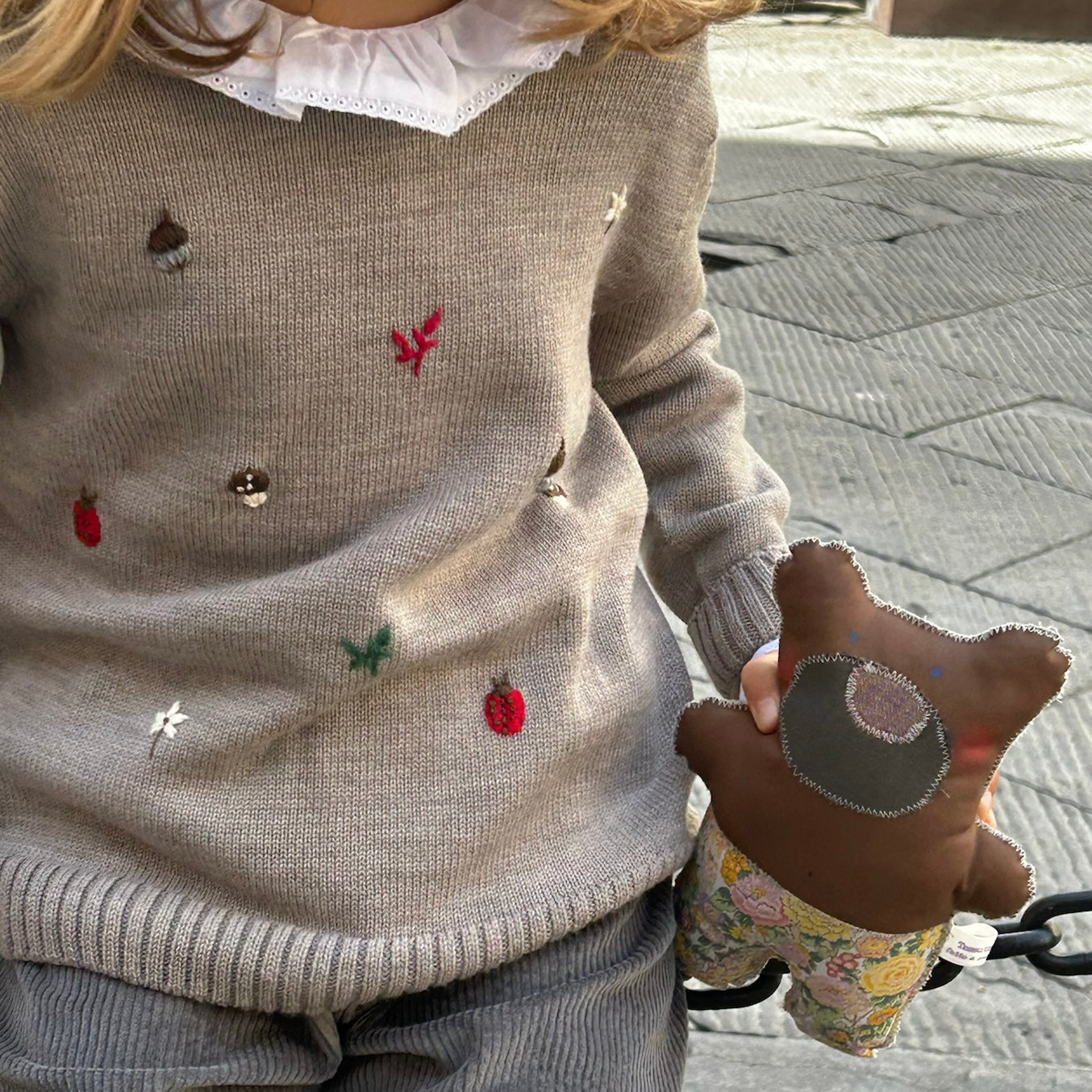 Maglioncino girocollo Mi Lucero x LA NUVOLA LAB tortora con ricamo autunnale I24113
