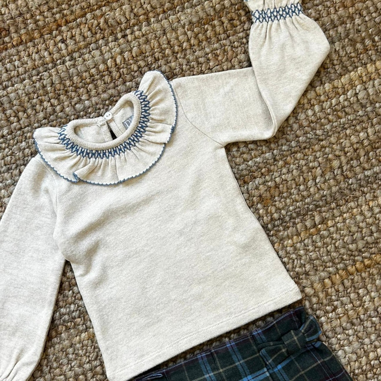 Maglioncino burro collo frill con ricamo azzurro Dr Kid DK310
