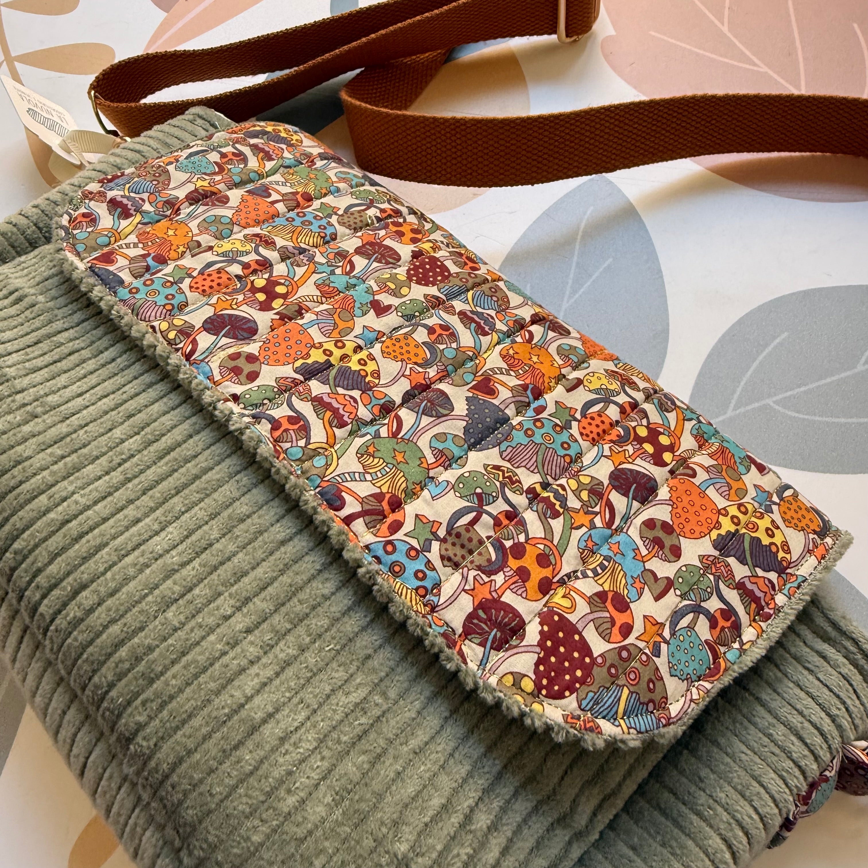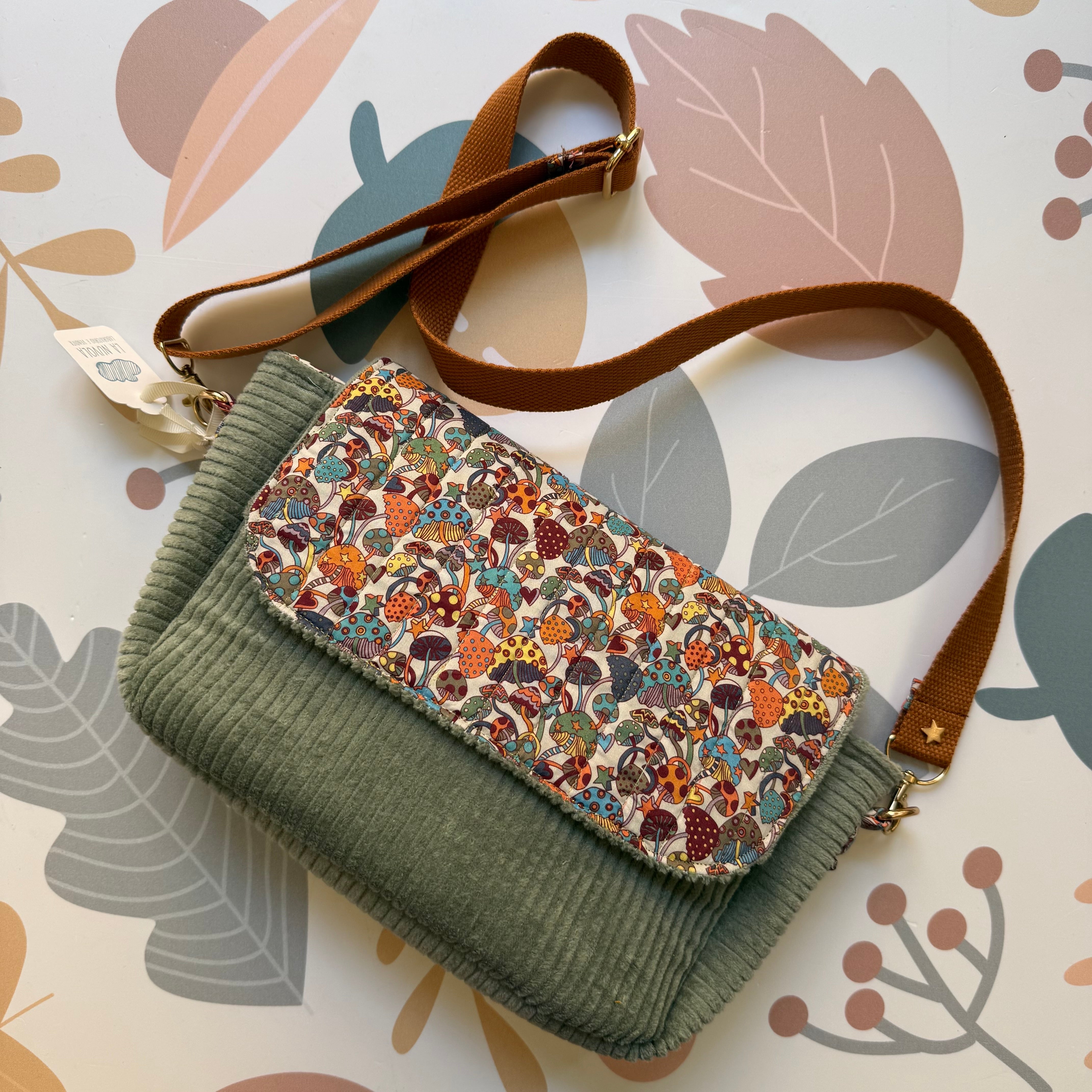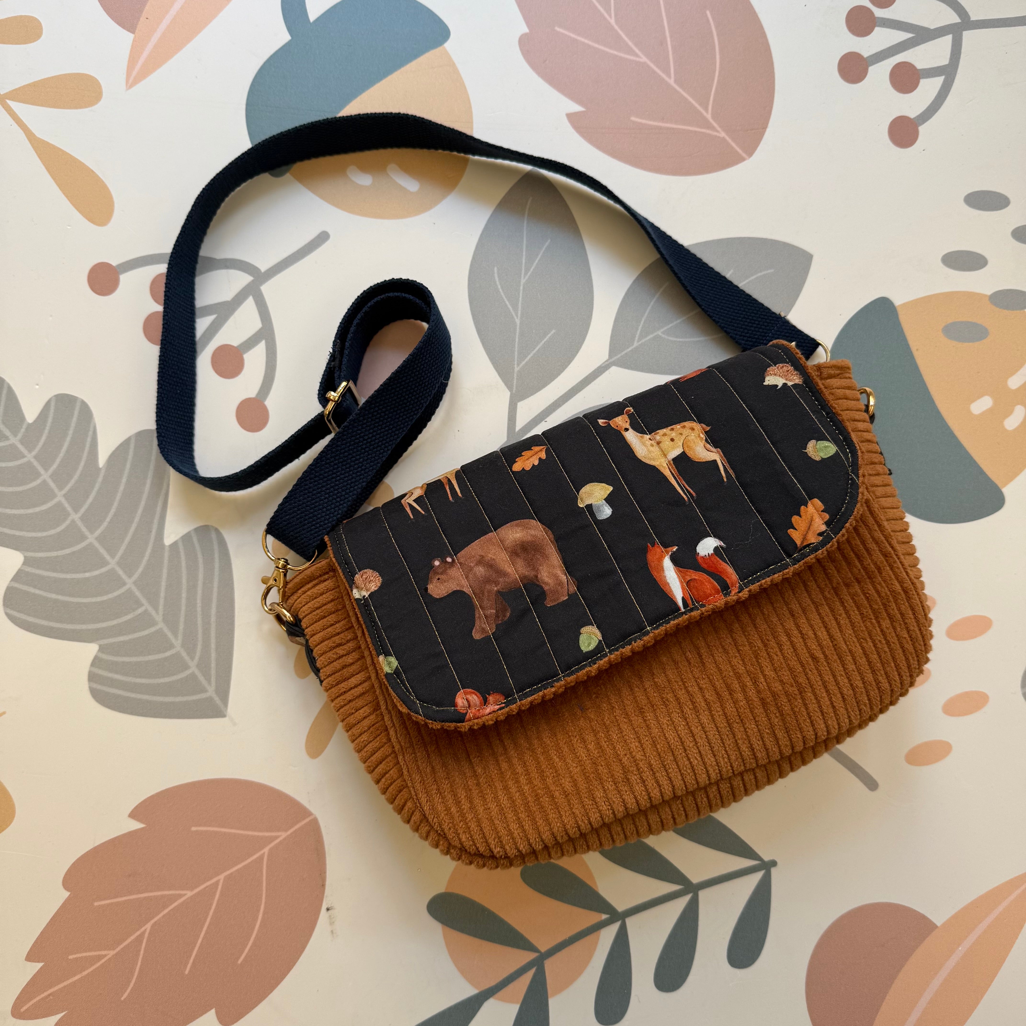 Tracolla patchwork LAB velluto caramello + fantasia bosco