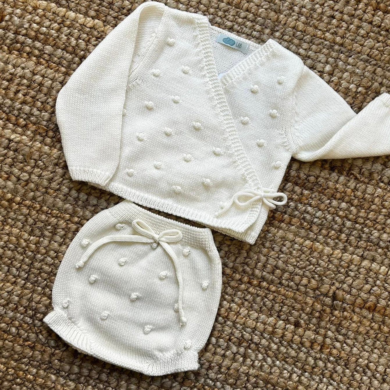 Completo incrociatino + bloomers lavorazione noccioline latte Mi Lucero x LA NUVOLA LAB I25307 I25309