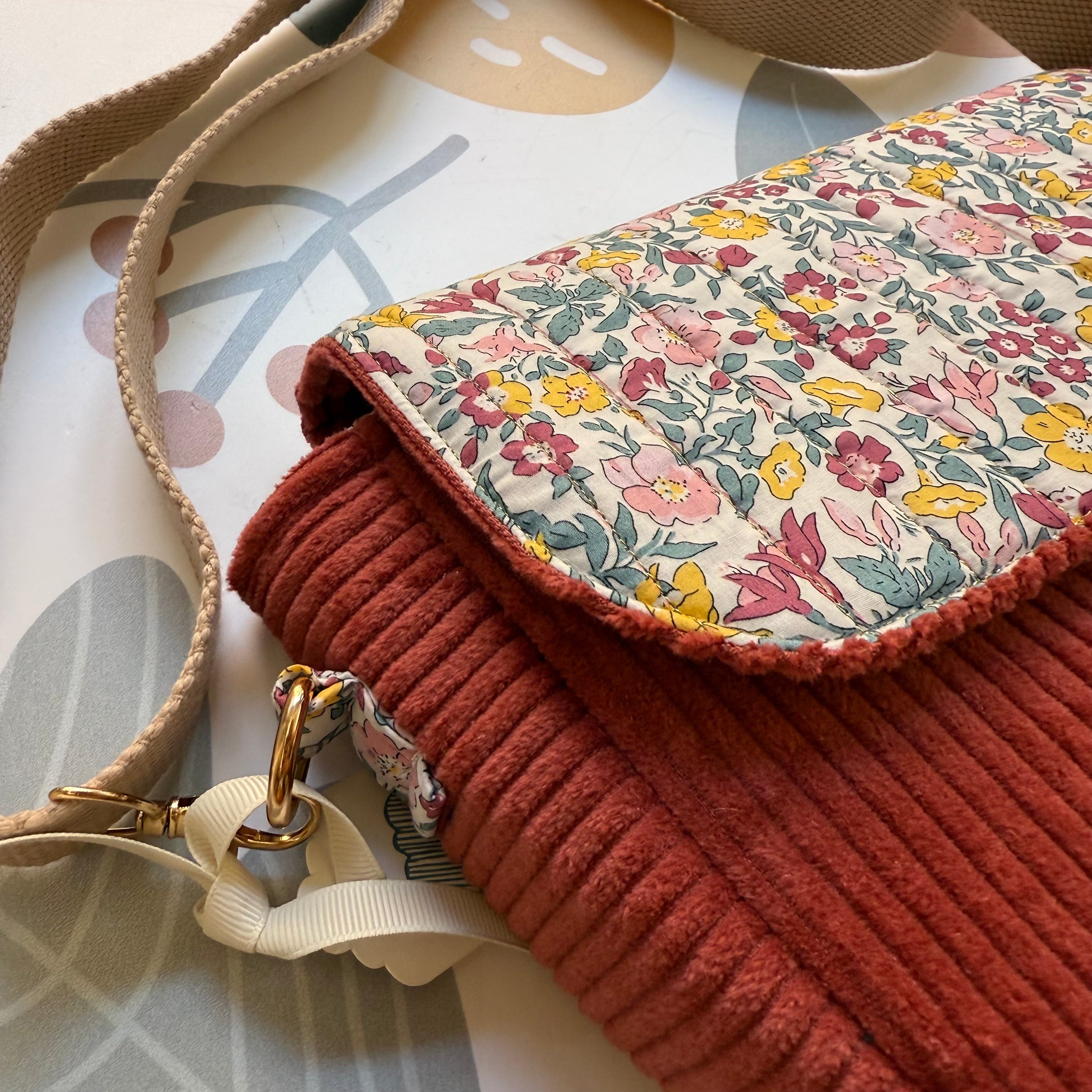 Tracolla patchwork LAB velluto mattone + fiorellini