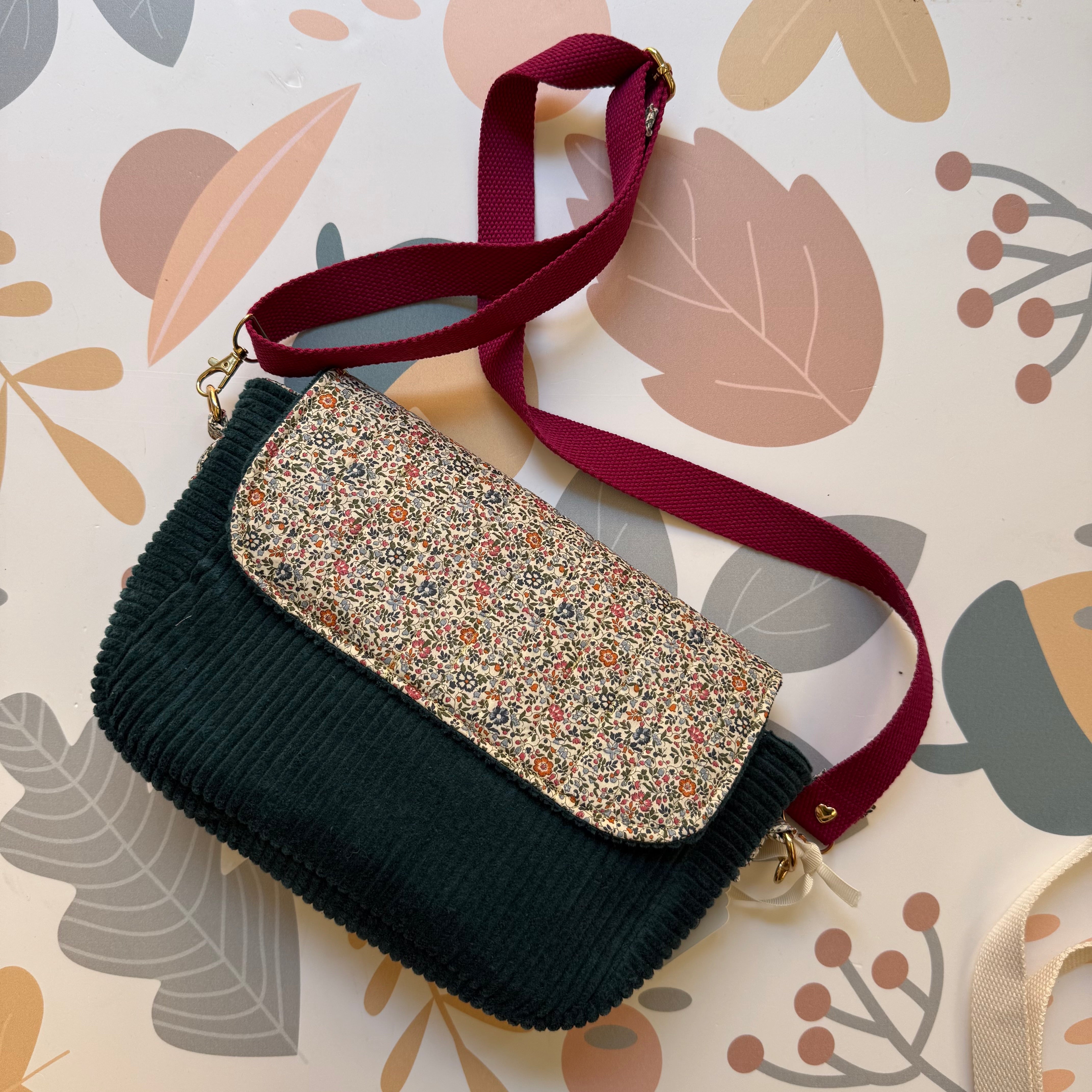 Tracolla patchwork LAB velluto petrolio + fiorellini