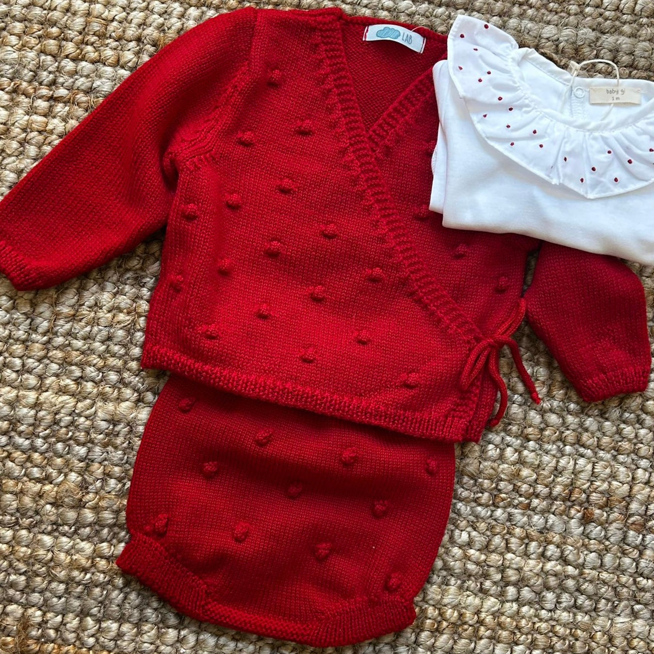 Completo incrociatino + bloomers lavorazione noccioline rosso Mi Lucero x LA NUVOLA LAB I25307 I25309