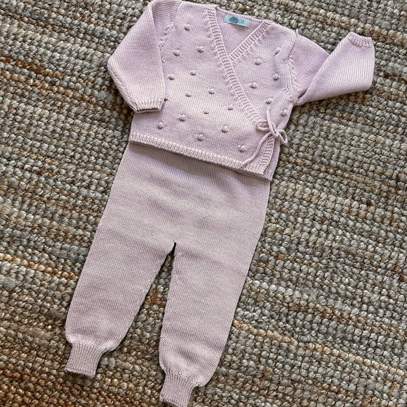 Completo incrociatino + ghettine lavorazione noccioline rosa Mi Lucero x LA NUVOLA LAB I25307