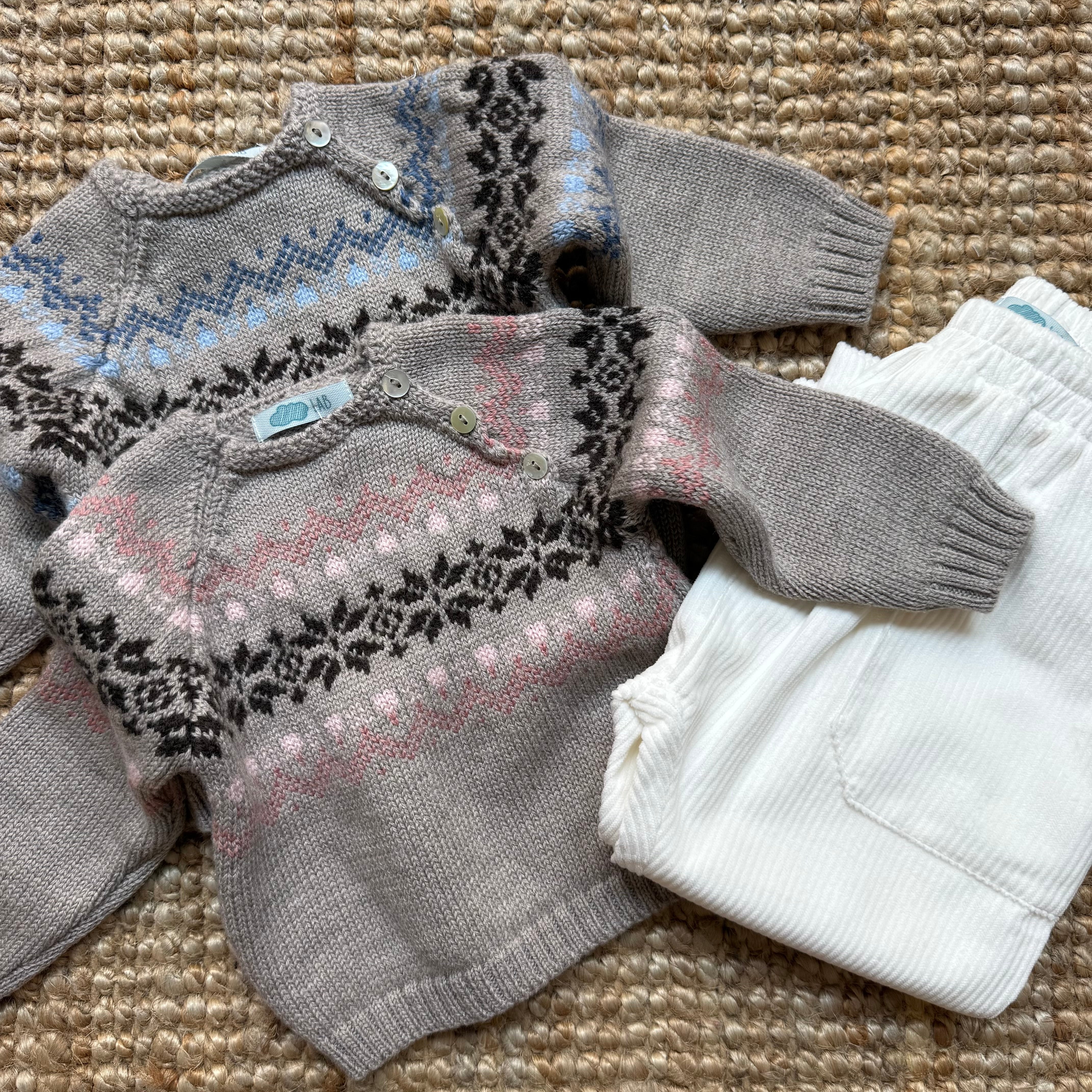 Maglione jacquard tortora azzurro Mi Lucero x LA NUVOLA LAB I25286
