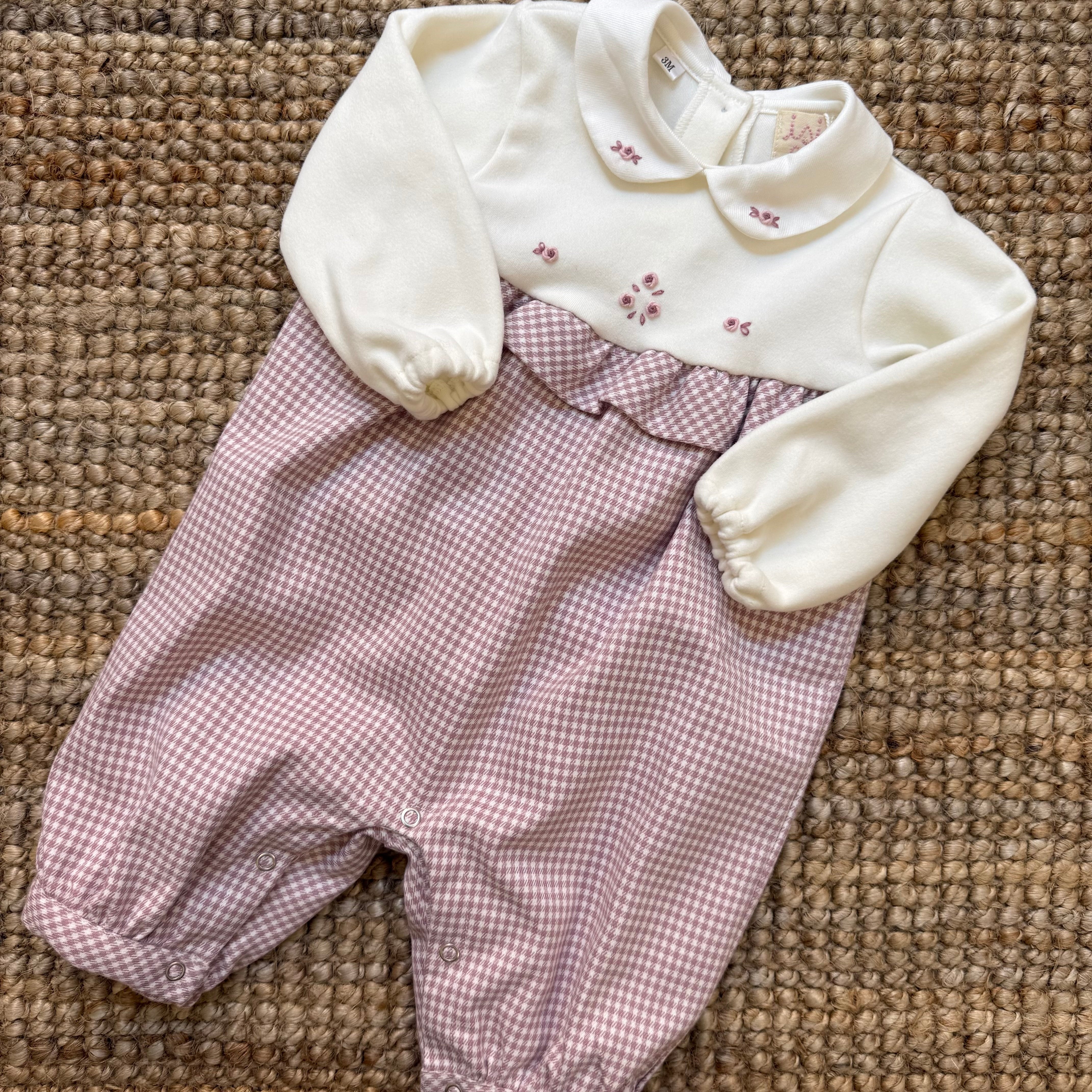 Tutina newborn in flanella vichy con fiorellini ricamati F25N152TUNC