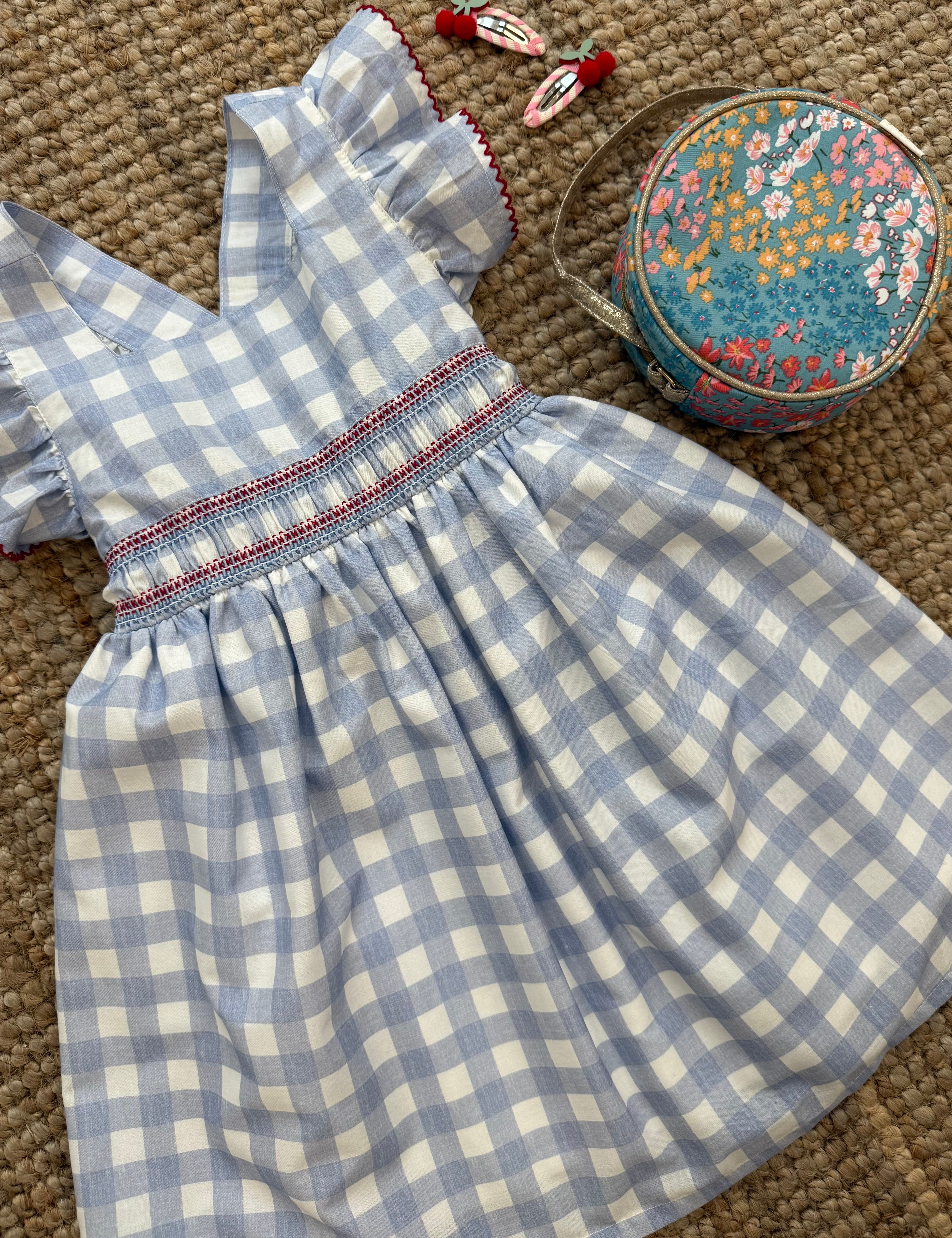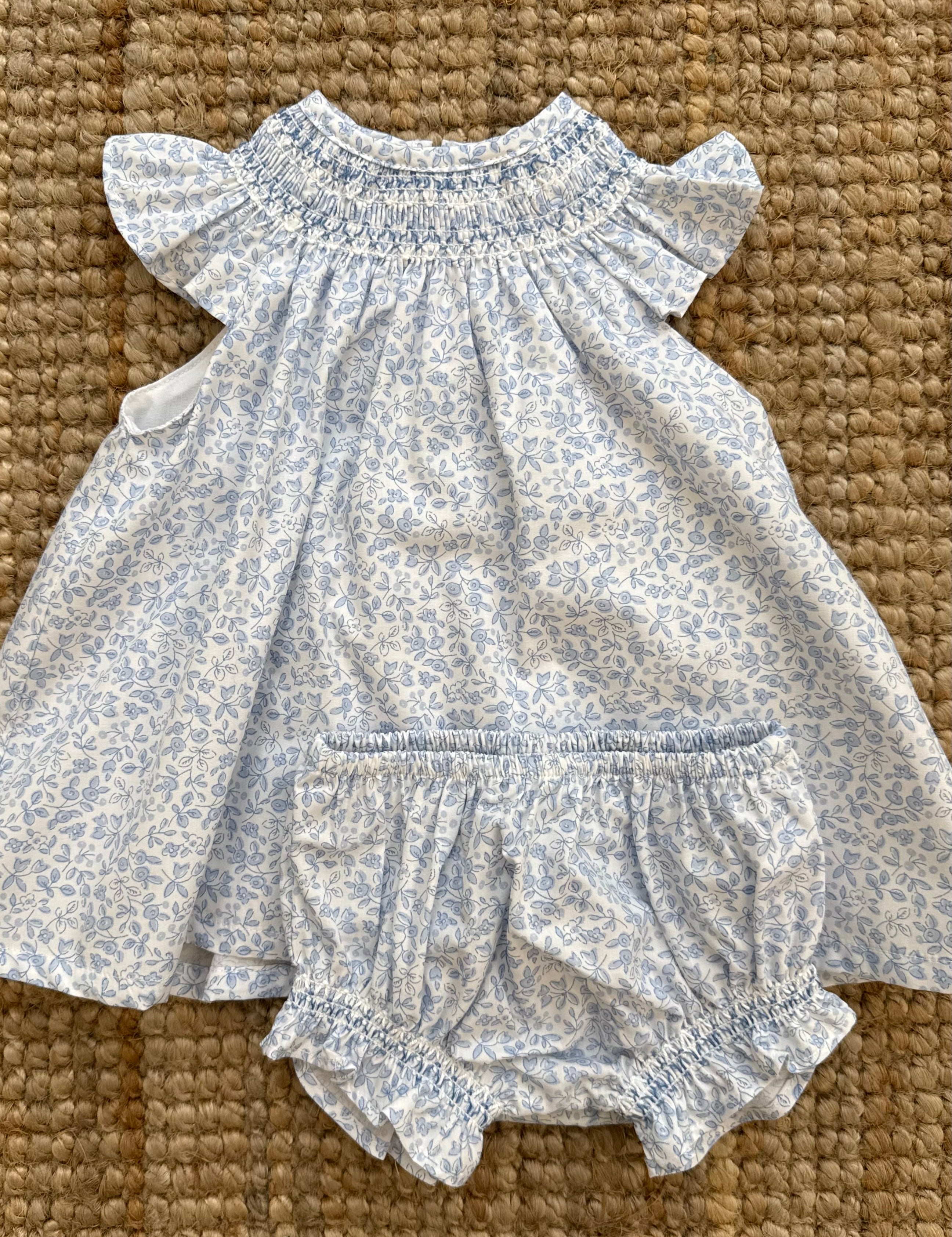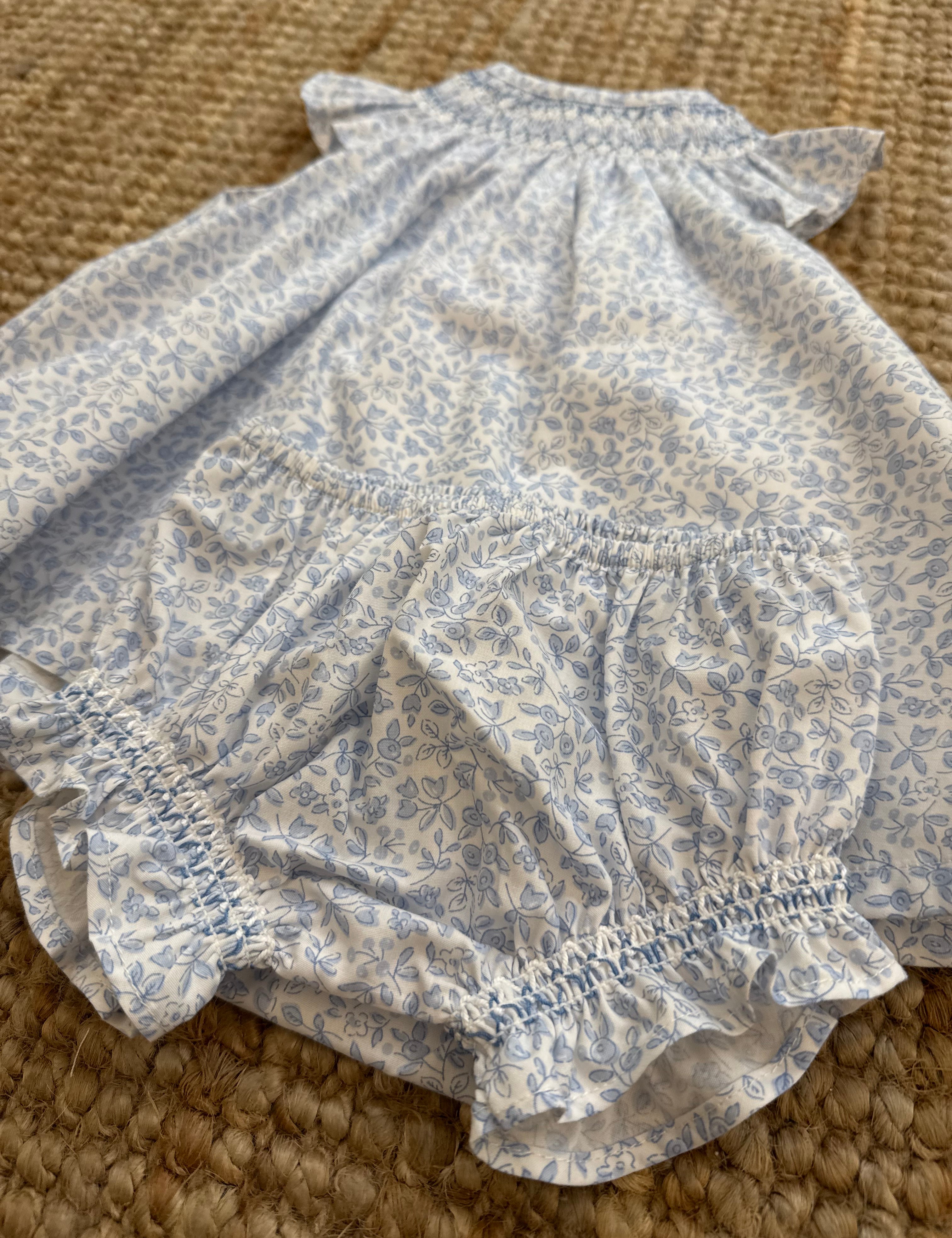 Abito fiorellino azzurro ricamo smock con coulotte Iris Deolinda DBV26308