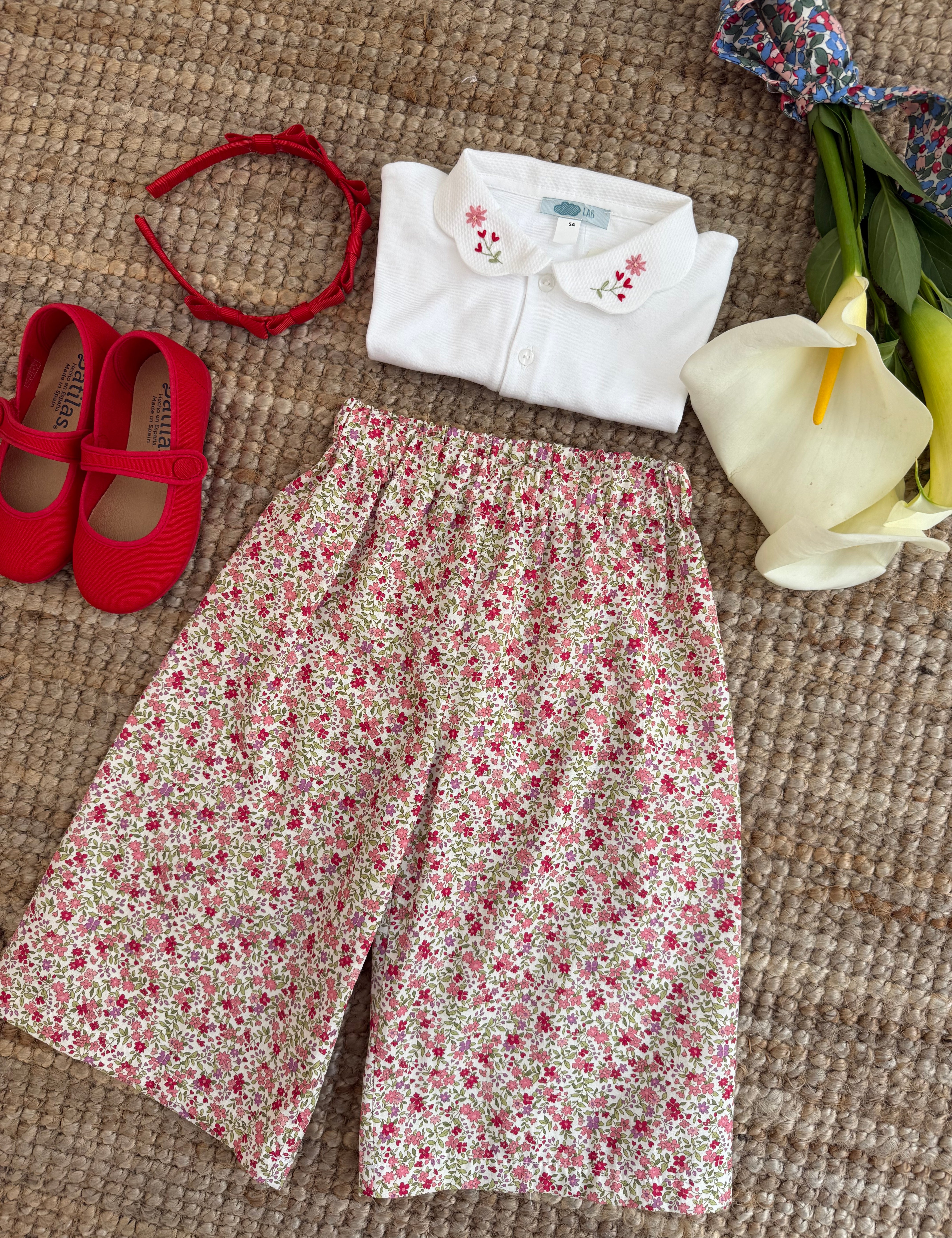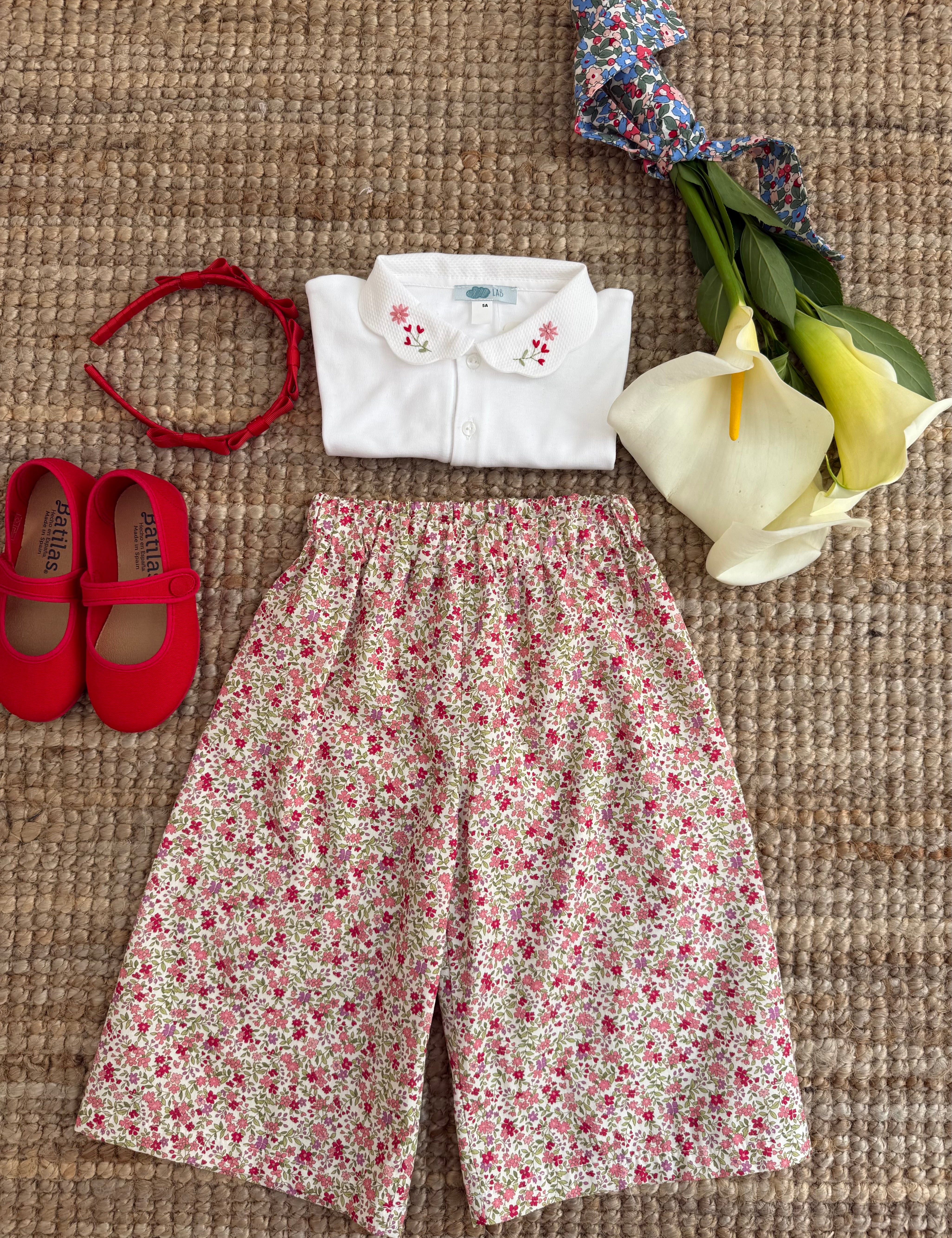 Pantalone Sissi LAB palazzo fantasia fiorellini rosa