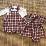 Body con colletto rotondo fantasia tartan, perfetto da abbinare alla salopette della stessa fantasia