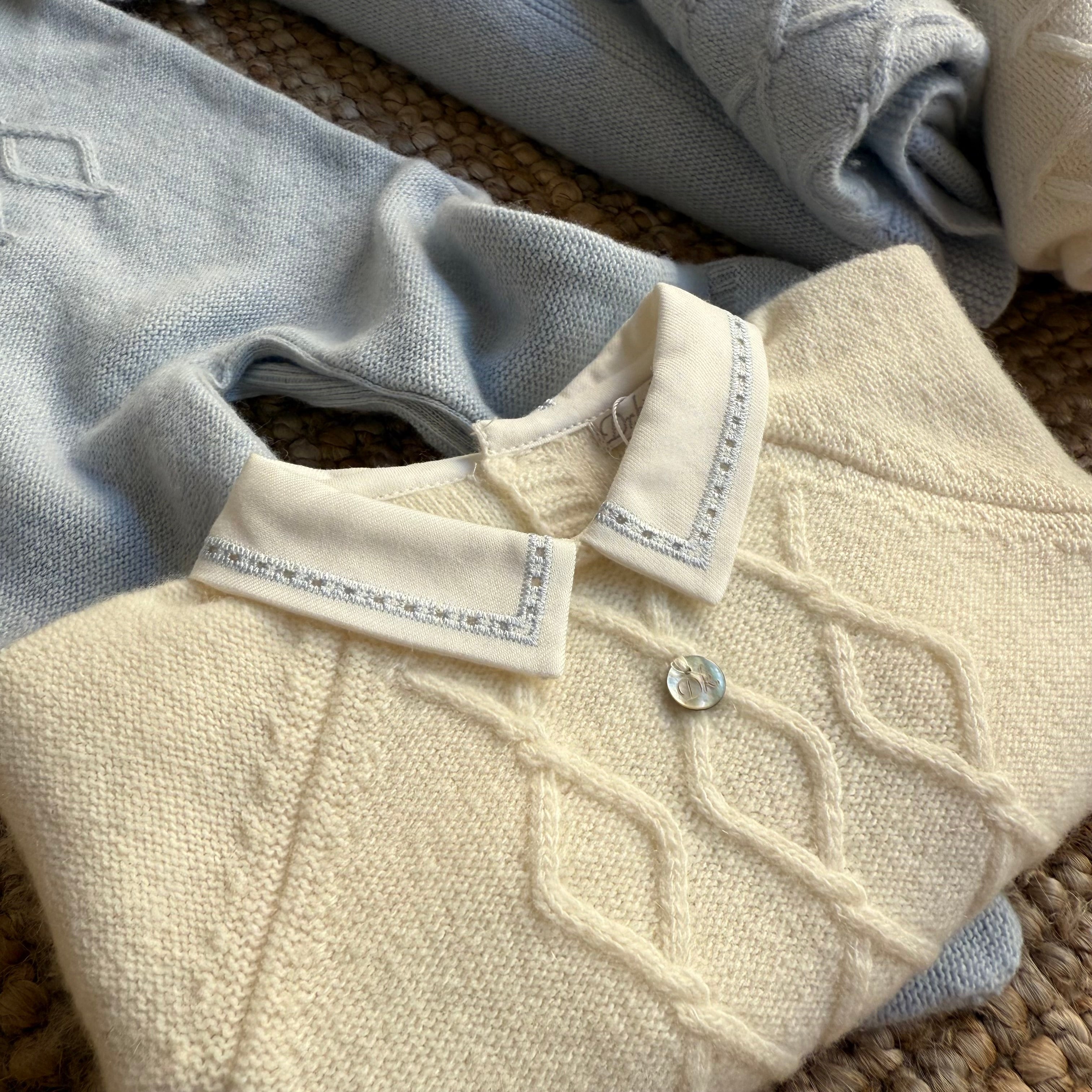 Tutina con colletto e lavorazione rombi burro Dr Kid DK120
