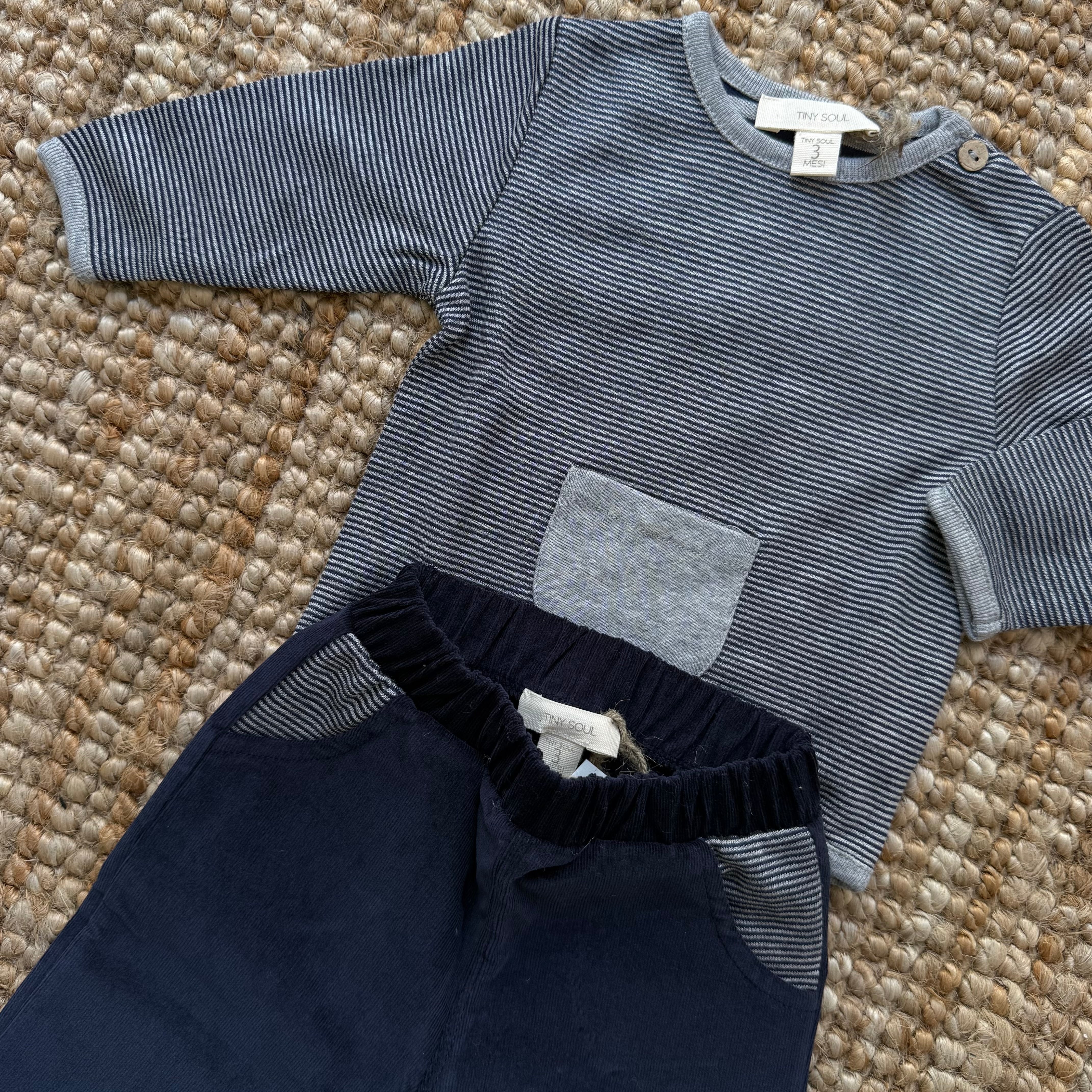 Completo spezzato newborn blu e grigio righine Tiny Soul TS707 TS706