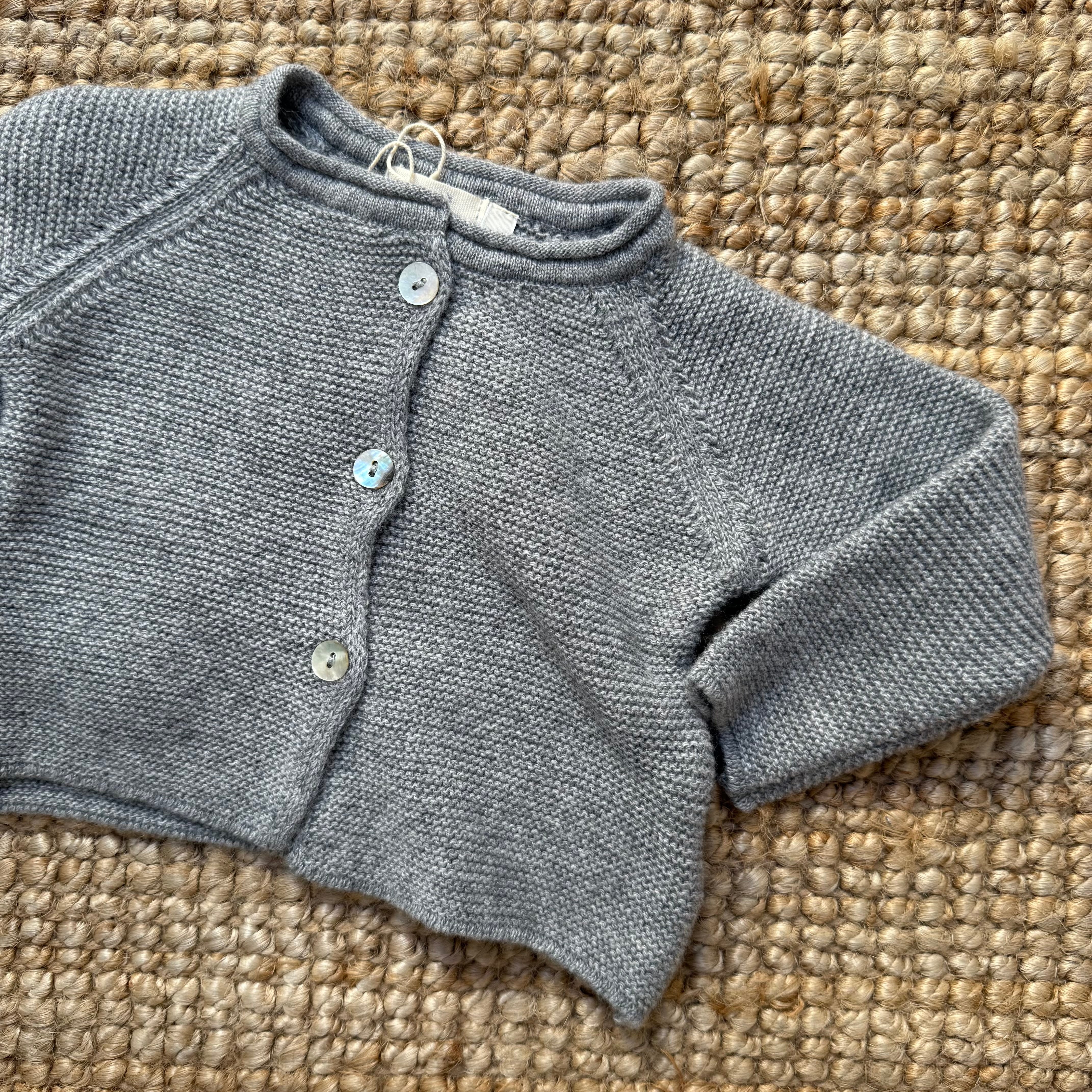Cardigan lavorazione links modello girocollo rullino, a manica lunga con bottoncini