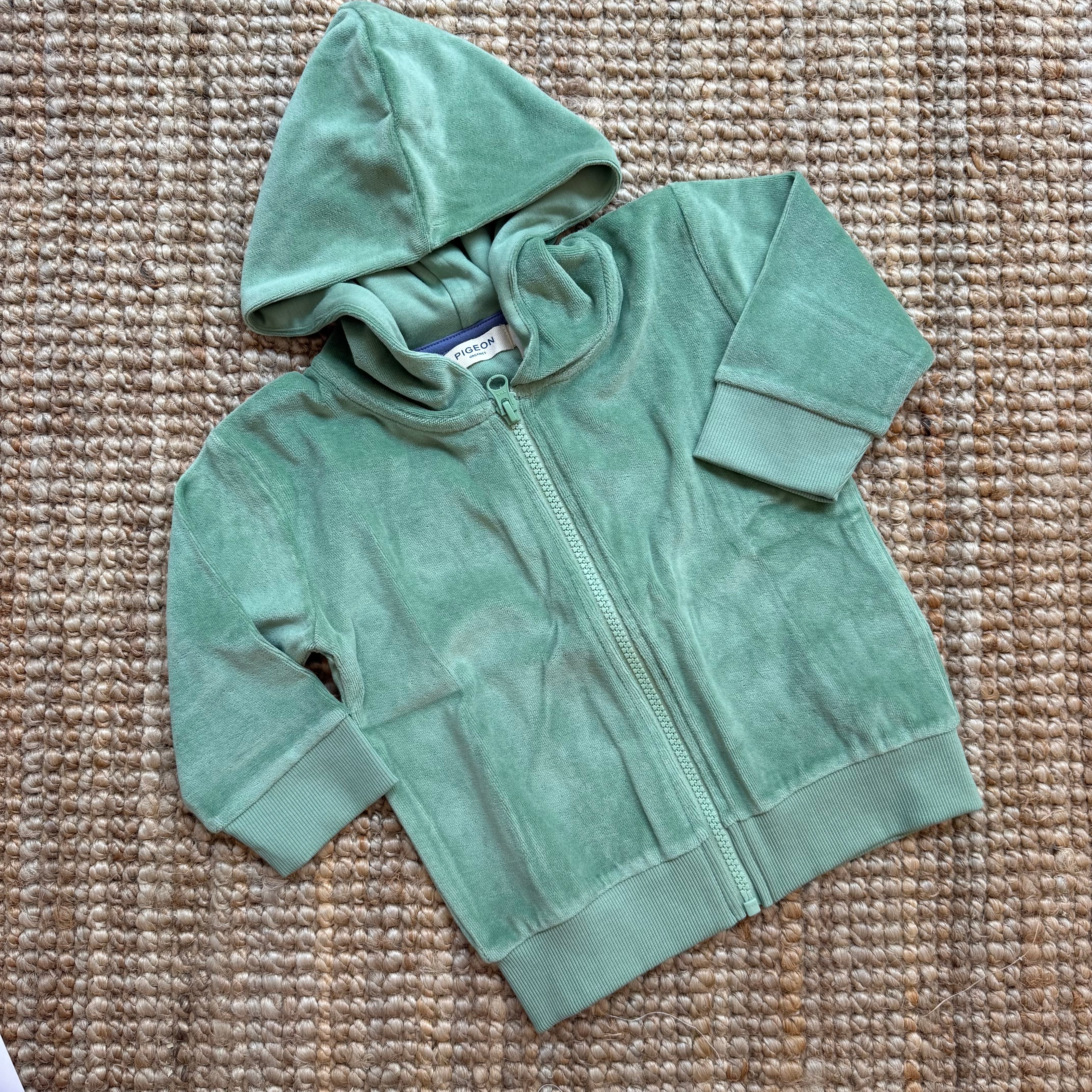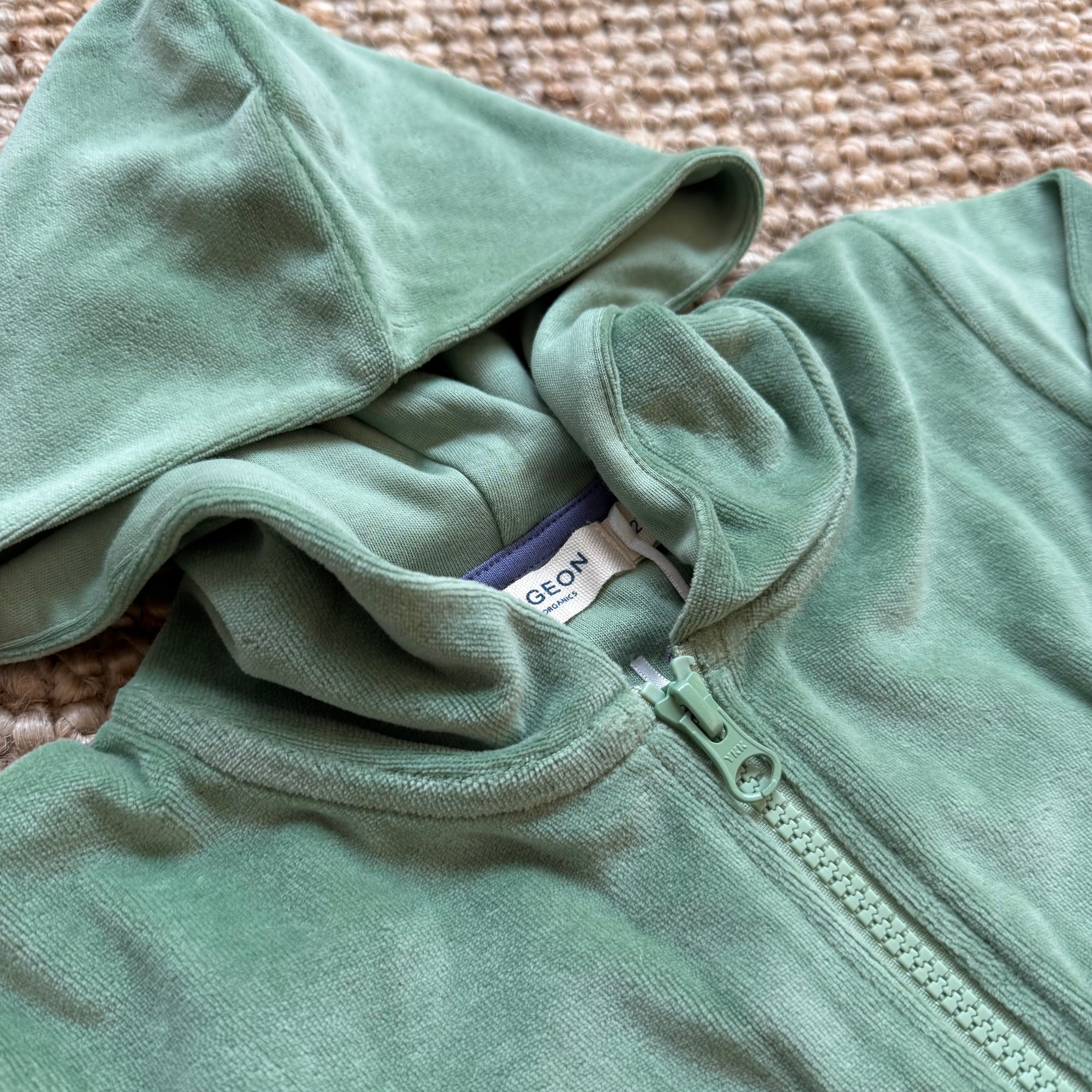 Felpa con cappuccio in ciniglia verde 25VELHGR