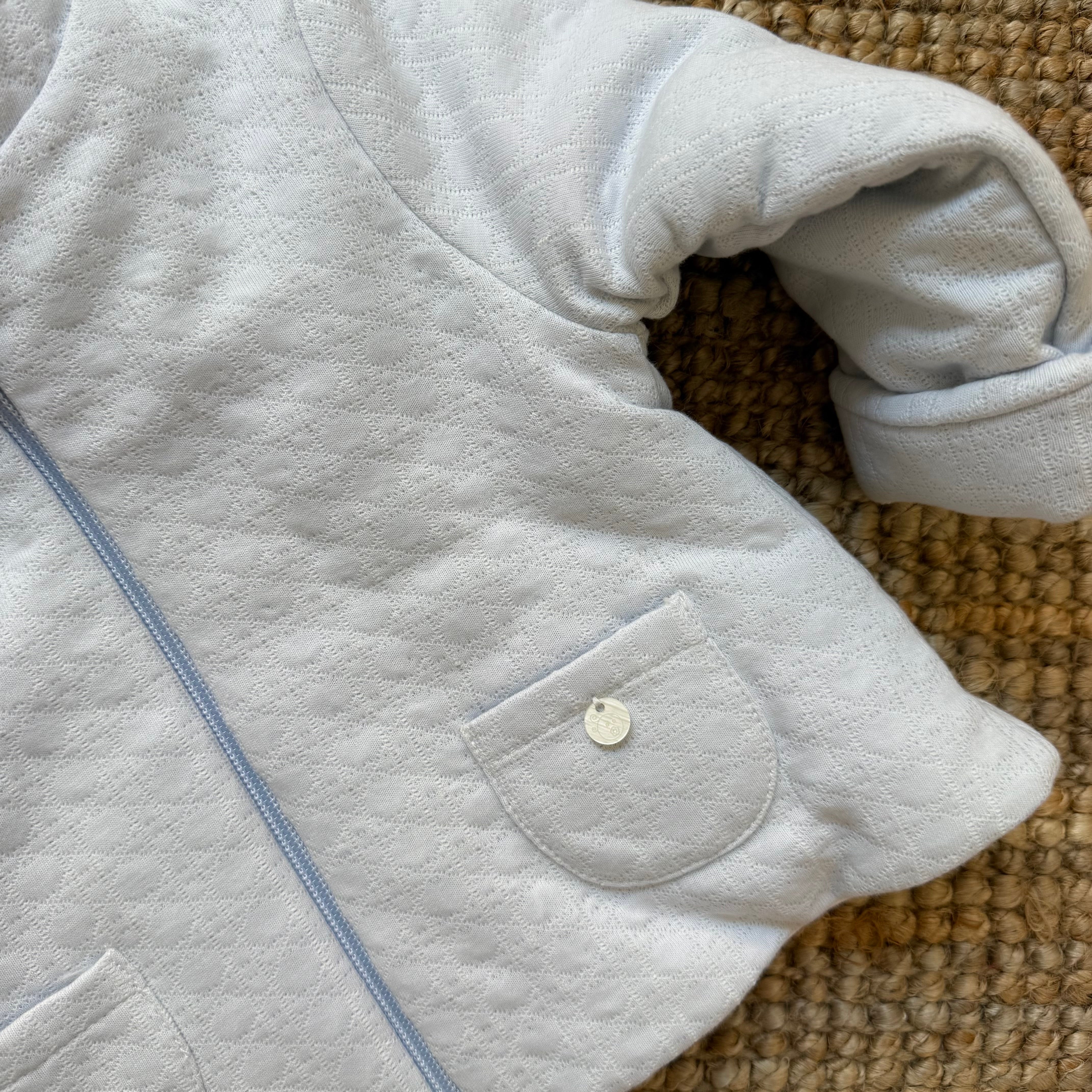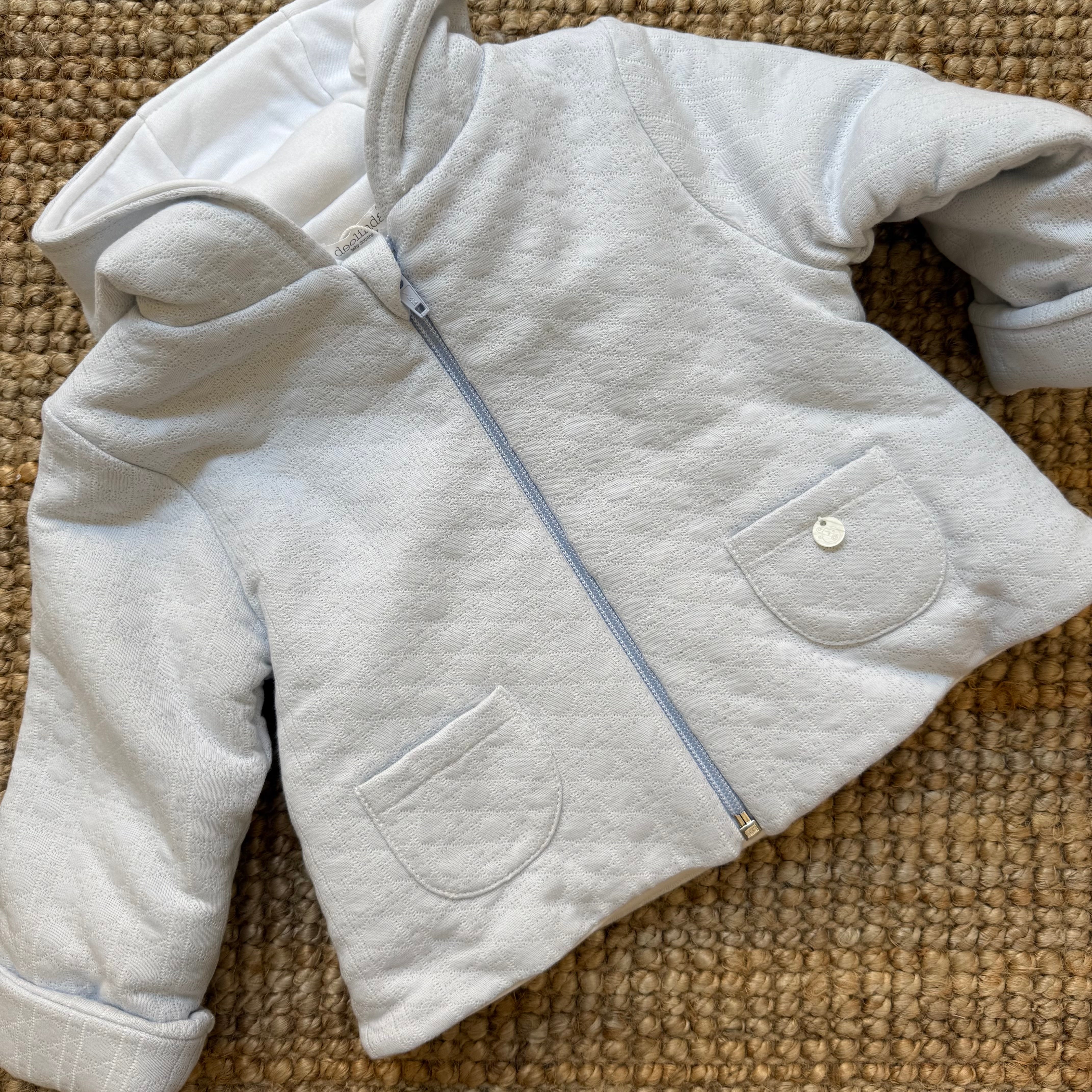 Giacchino newborn trapuntato celeste con cappuccio DBI25802