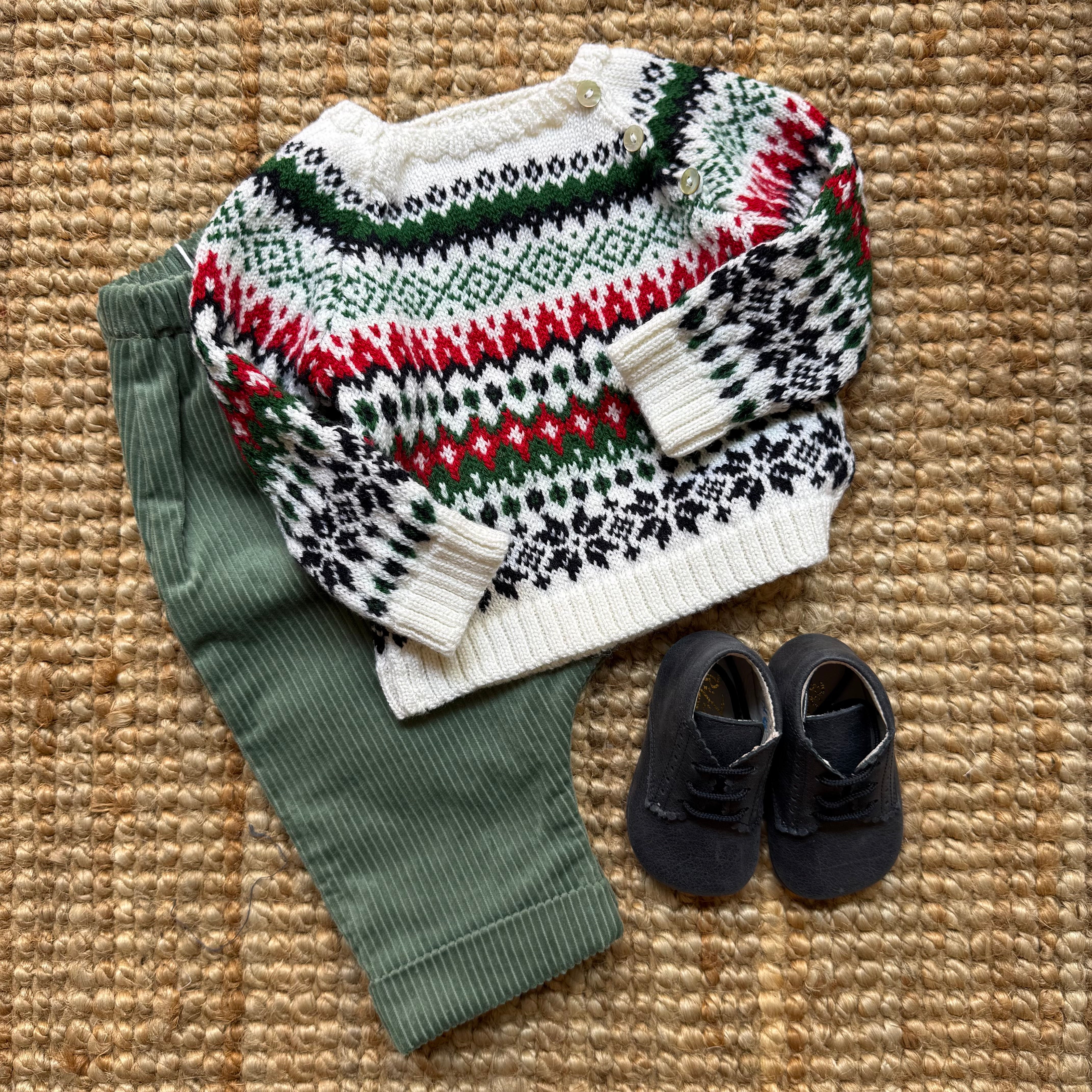 Maglione jacquard latte verde rosso Mi Lucero x LA NUVOLA LAB I25286