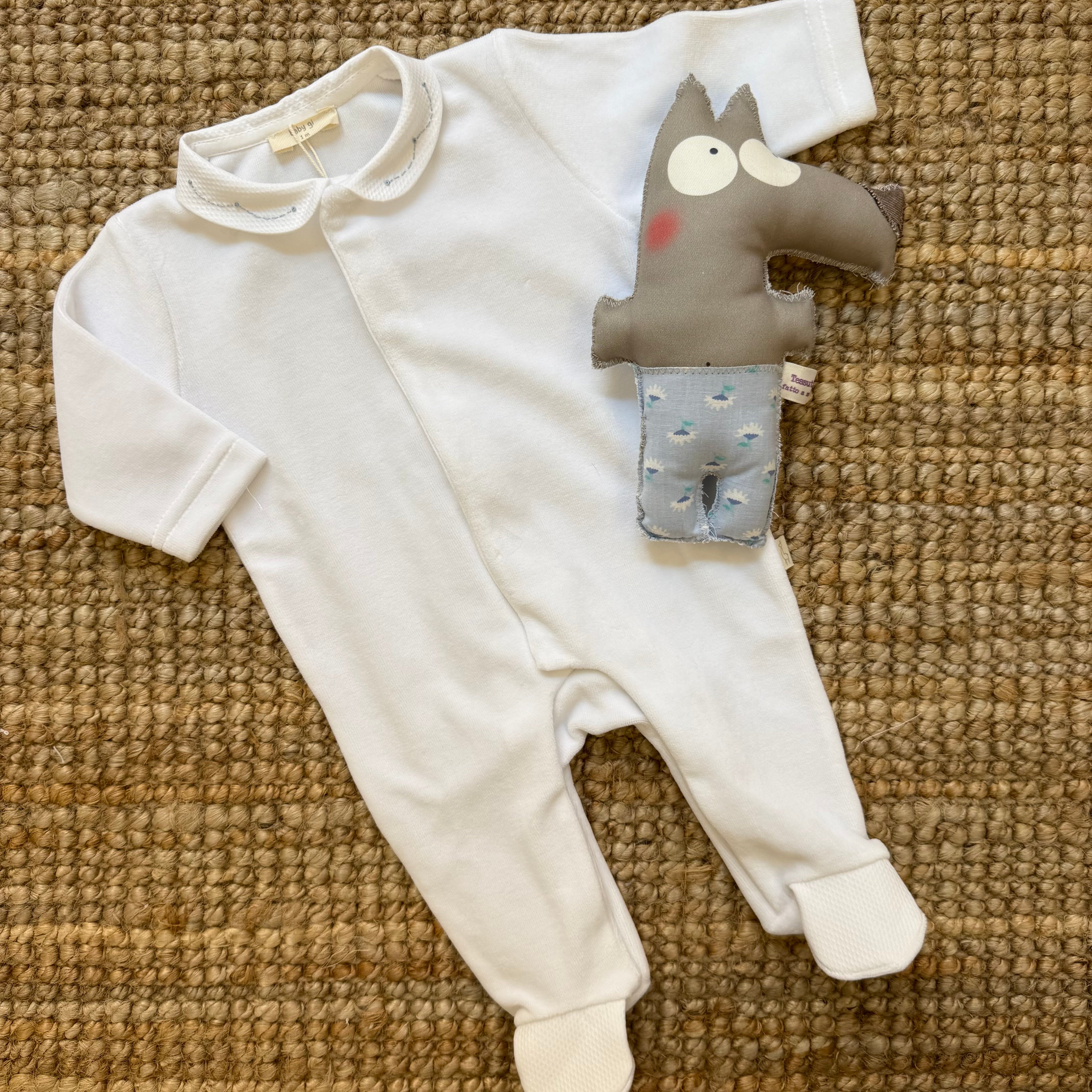 Tutina in ciniglia bianco con colletto petalo piquet PQ50