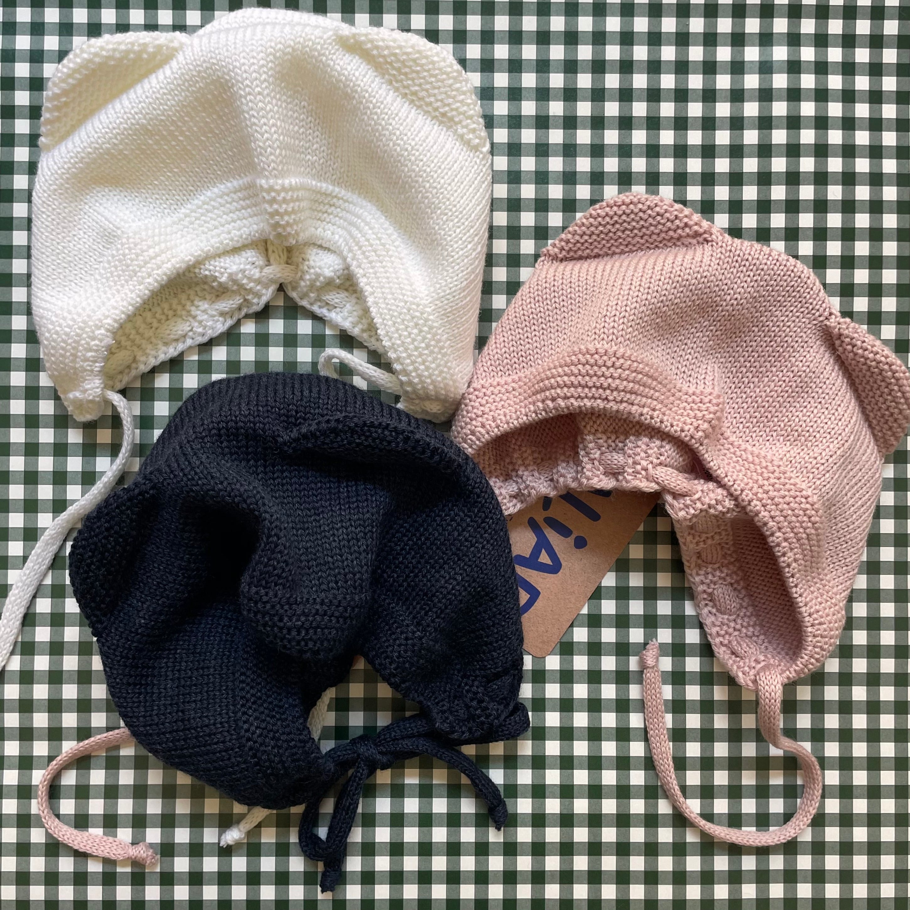 Cappellino cuffietta newborn in pura lana merinos con orecchie Aliap 4410