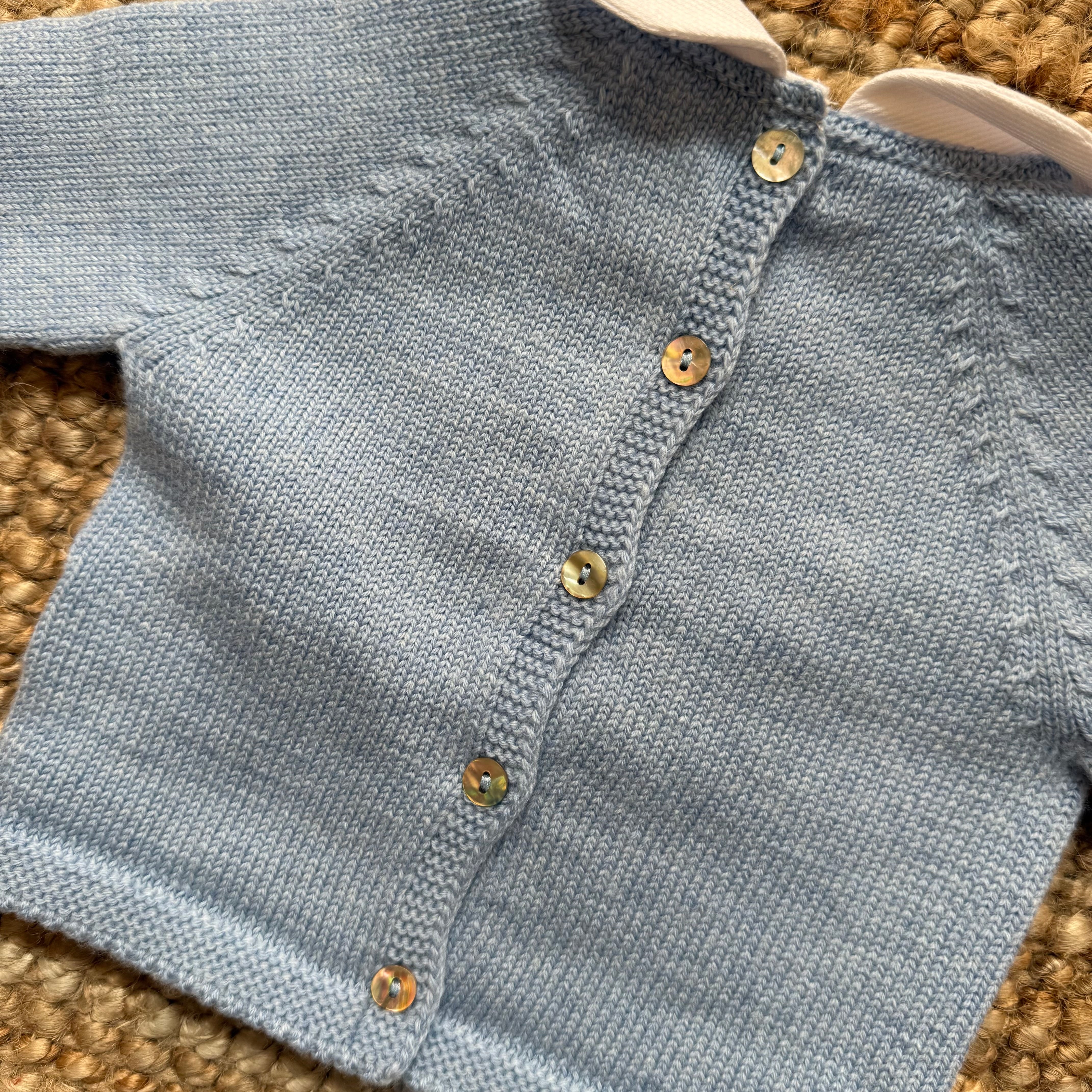 Maglioncino con colletto frill con deliziosi fiorellini ricamati mano e ghettine lisce senza piede