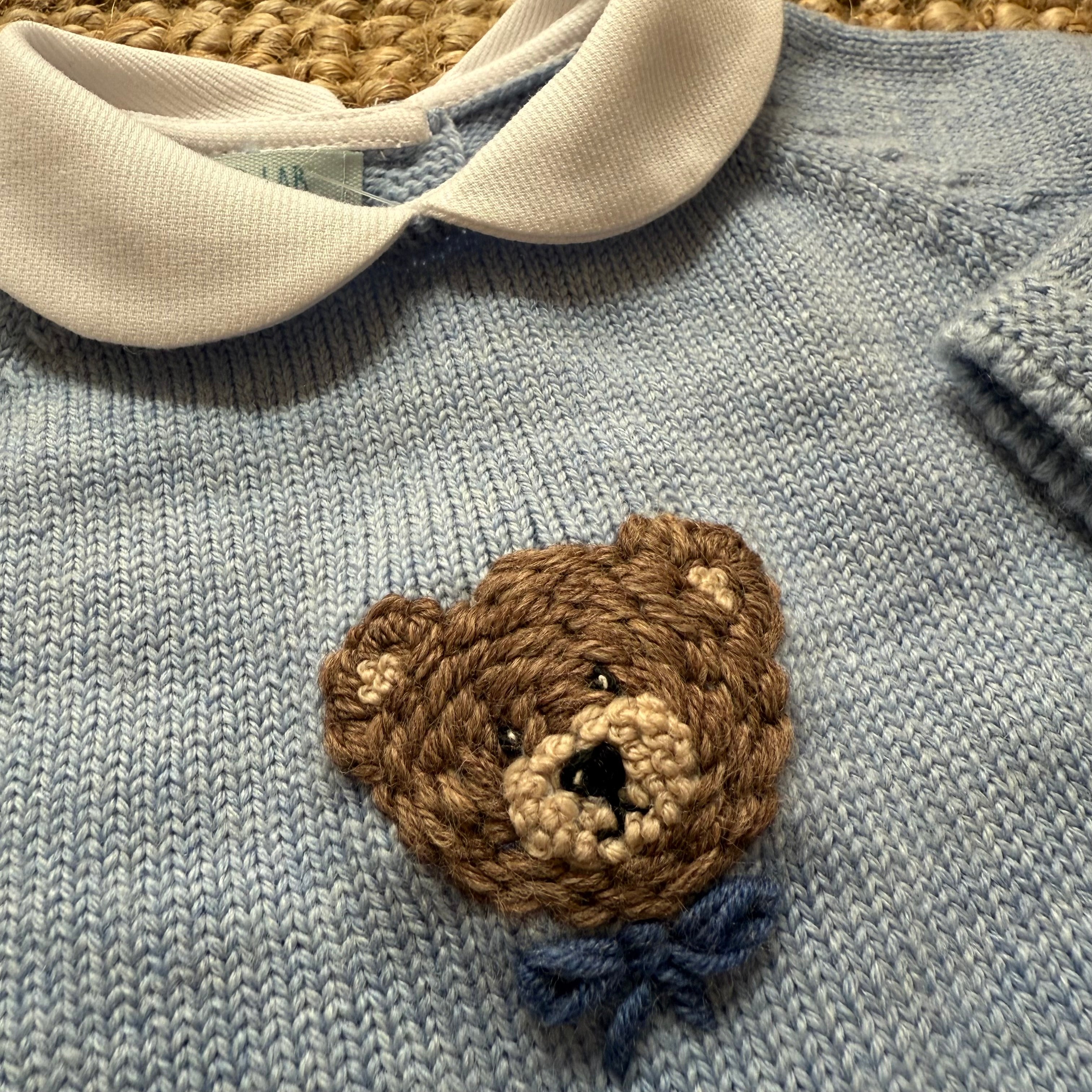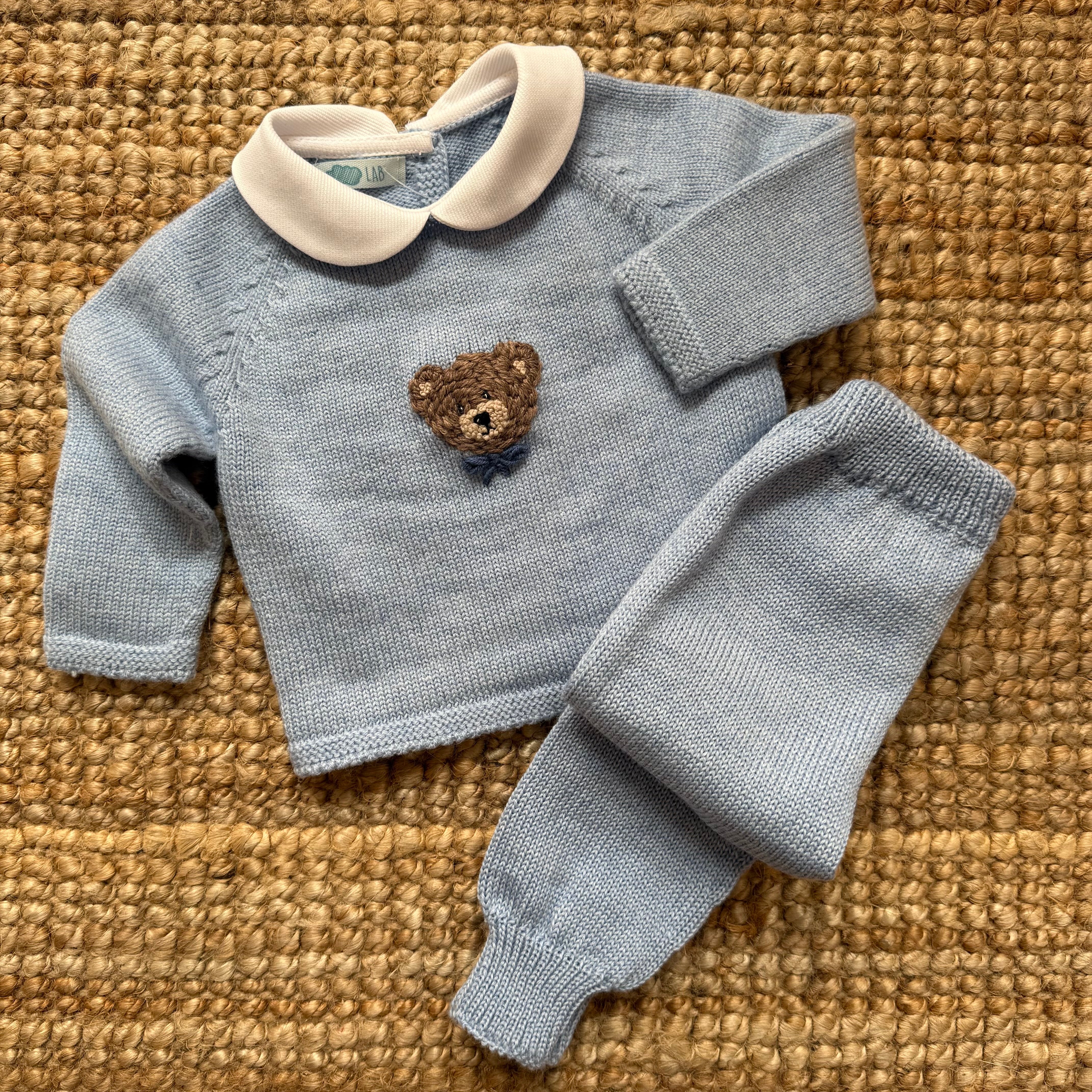 Completo azzurro con colletto tondo e ricamo orsetto Mi Lucero x LA NUVOLA LAB I25070