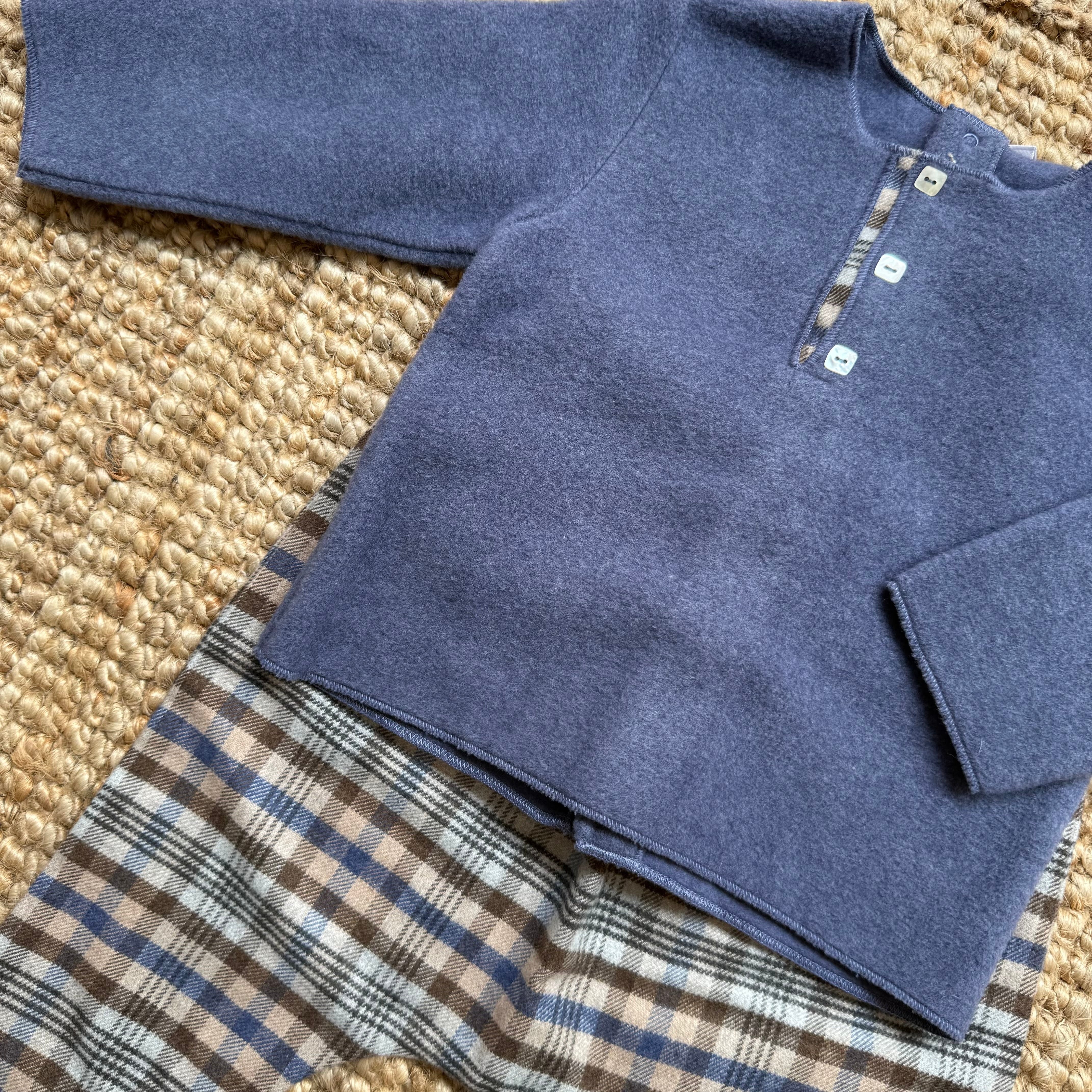 Felpa girocollo in pile con dettaglio quadro da abbinare ai pantaloni della stessa serie - apertura completa sul retro