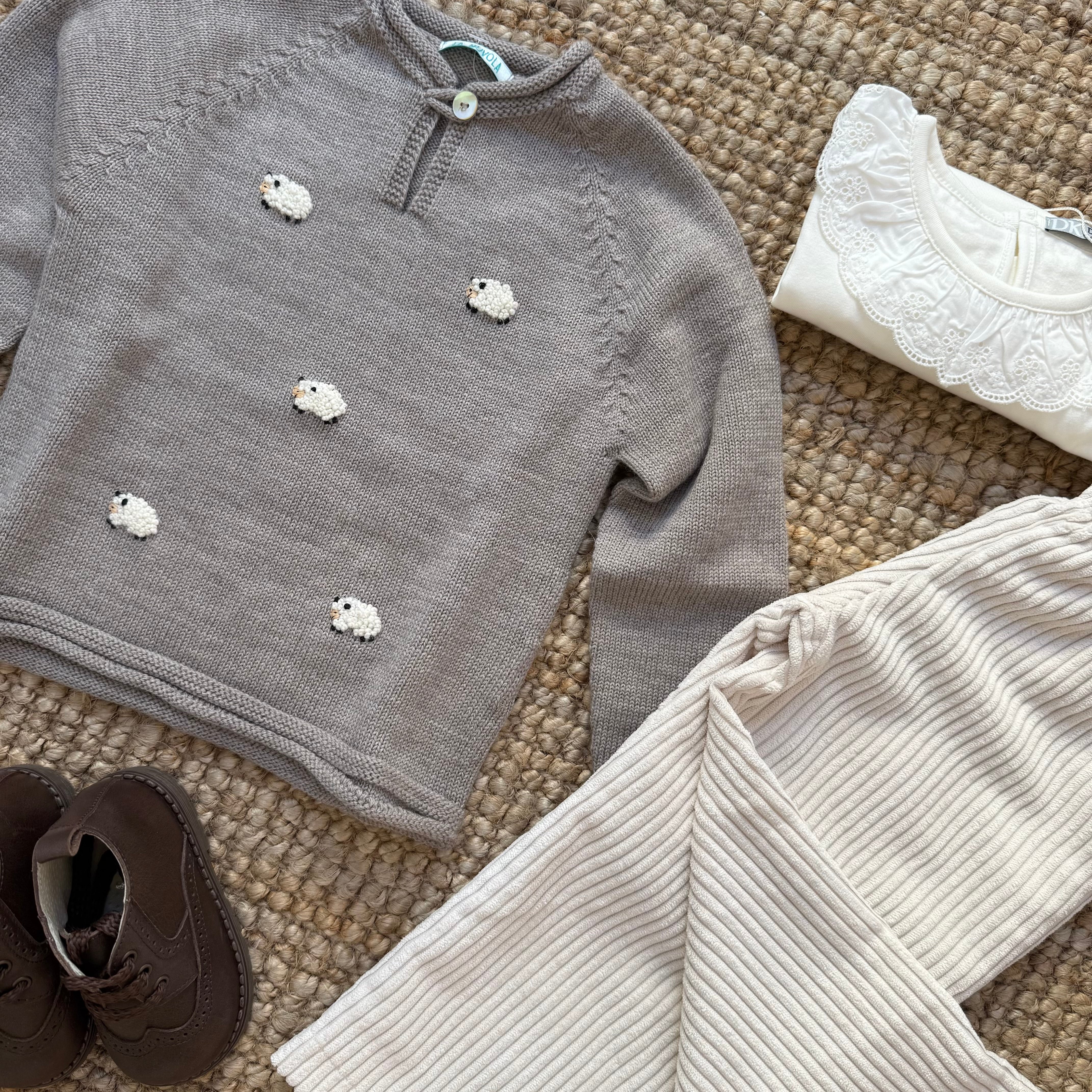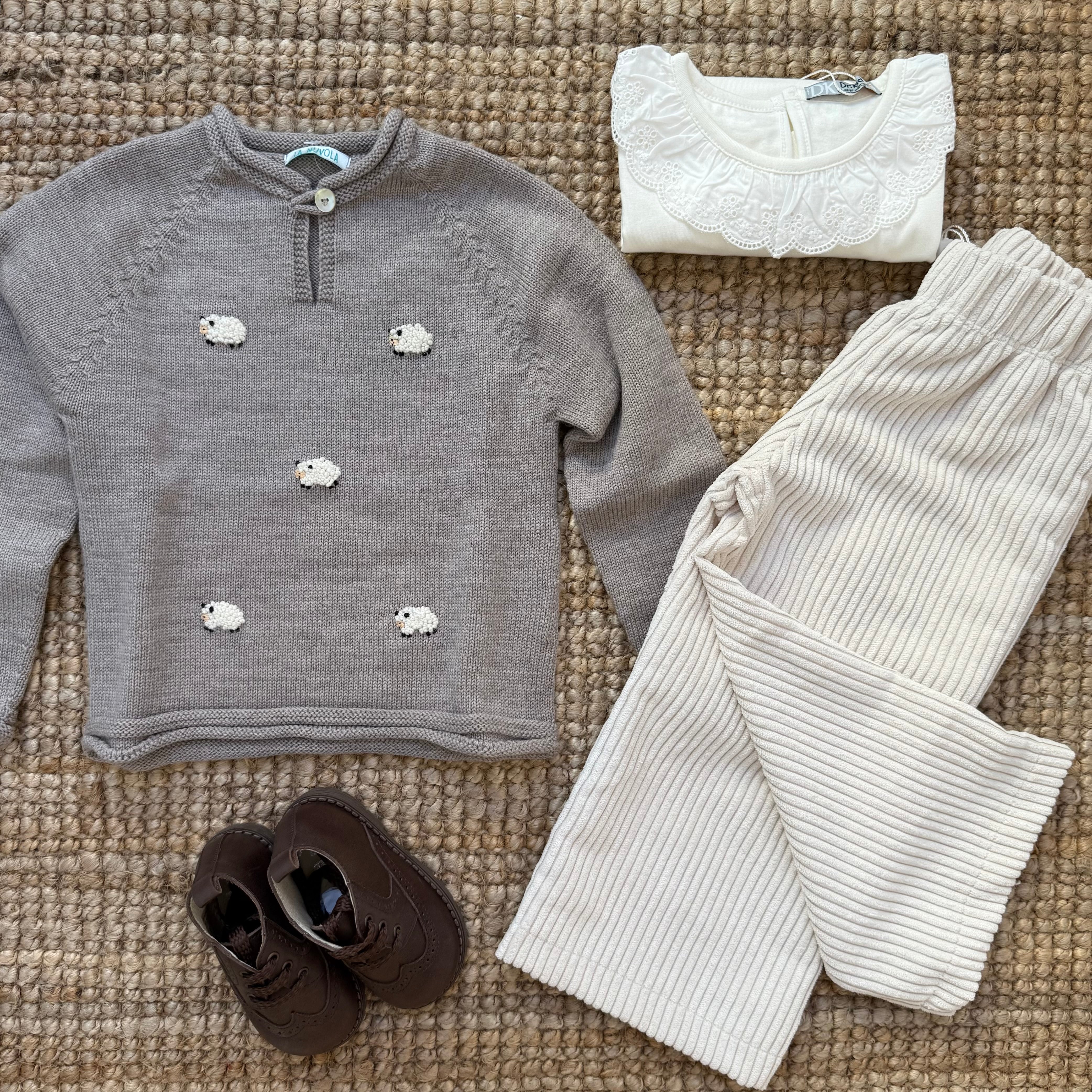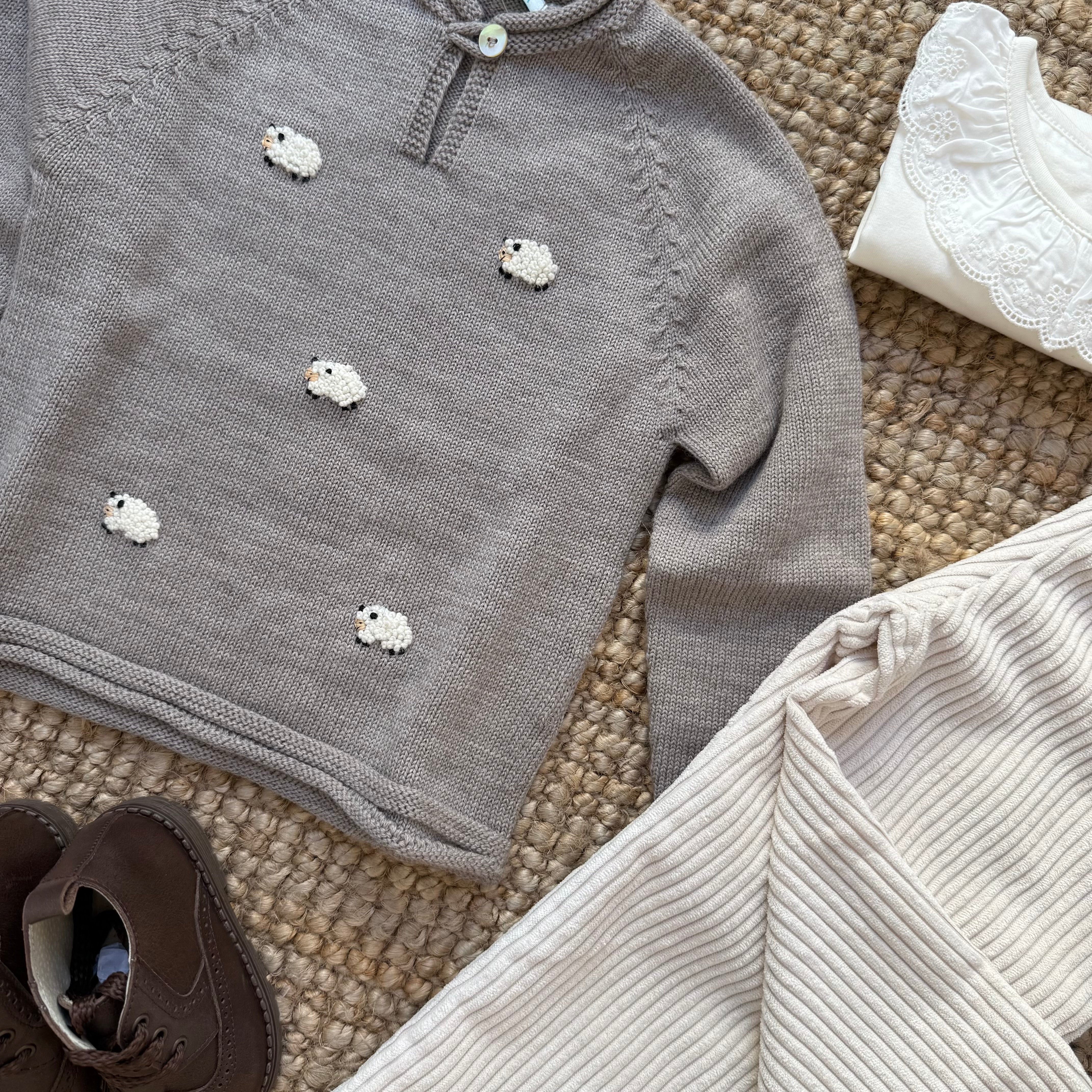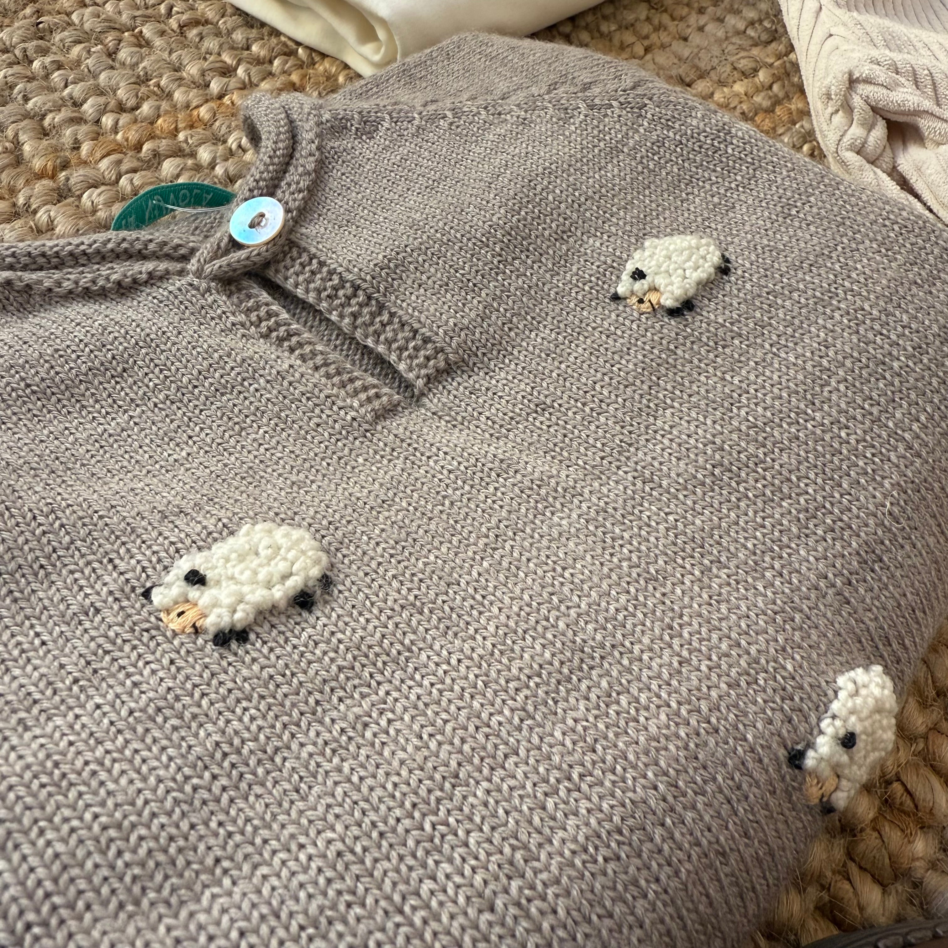 Maglioncino tortora ricamato con pecorelle Mi Lucero x LA NUVOLA LAB I24115