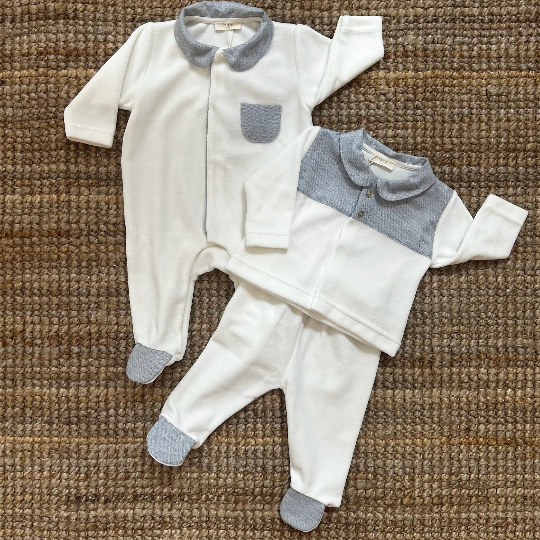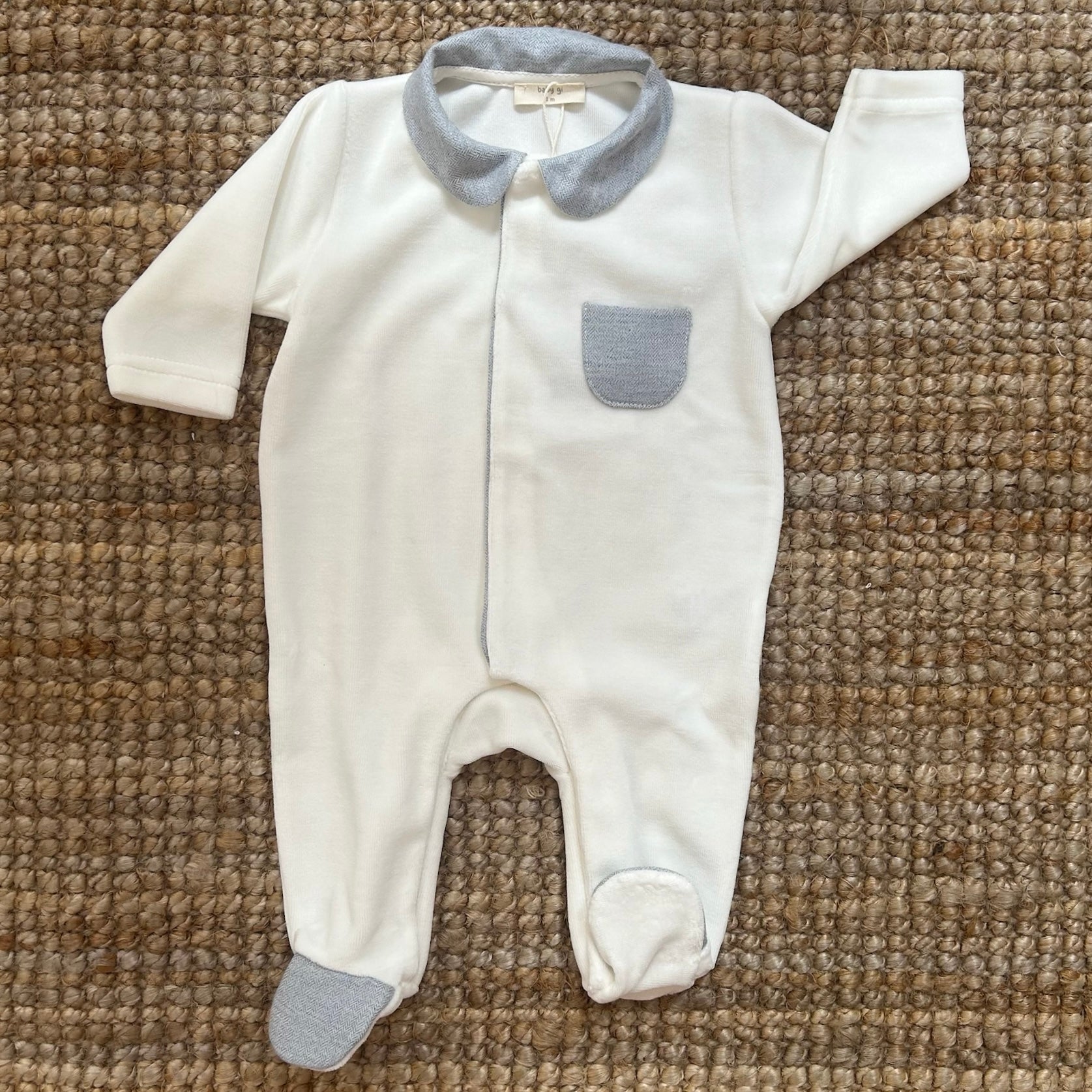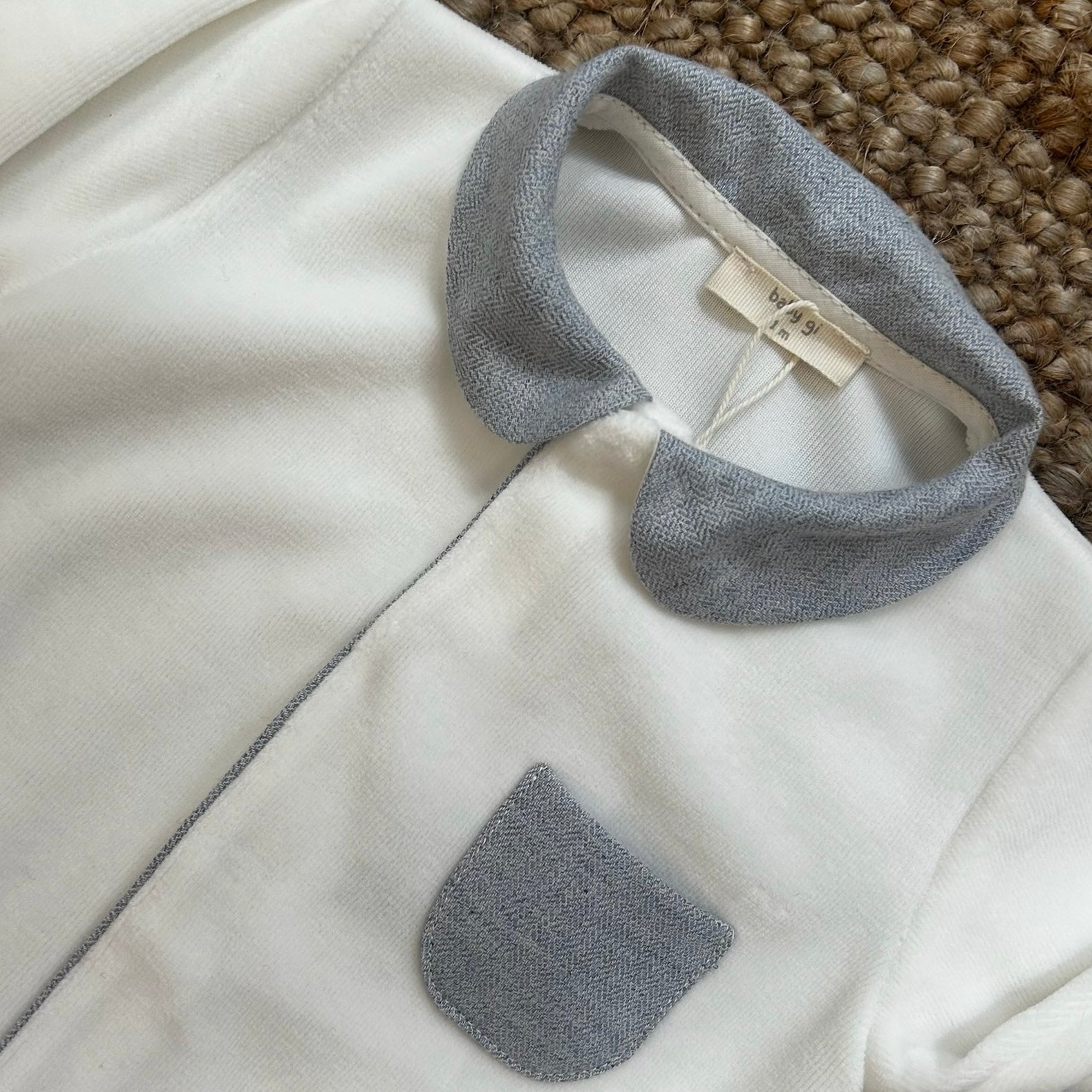 Tutina in ciniglia latte con dettaglio spigato polvere WY53B