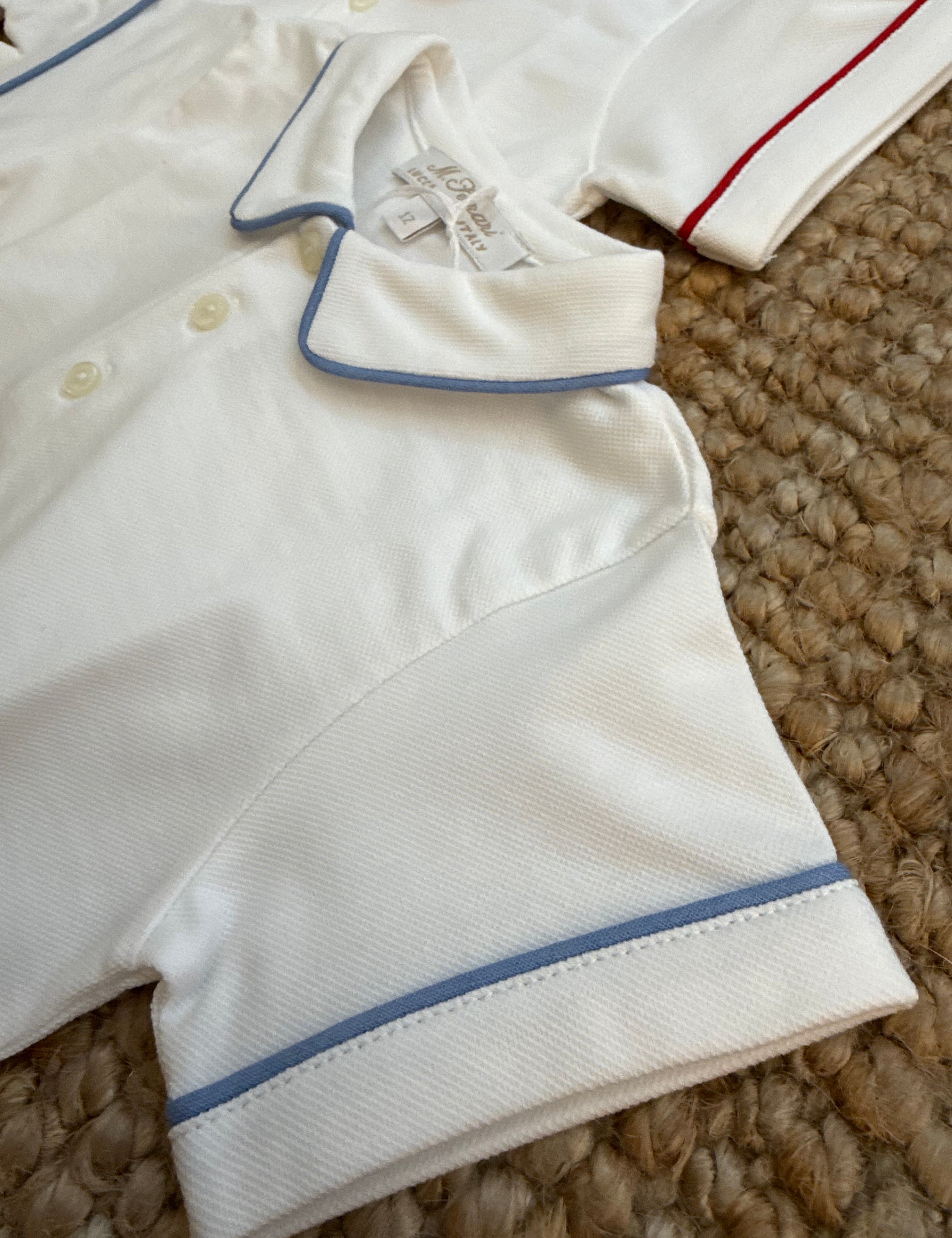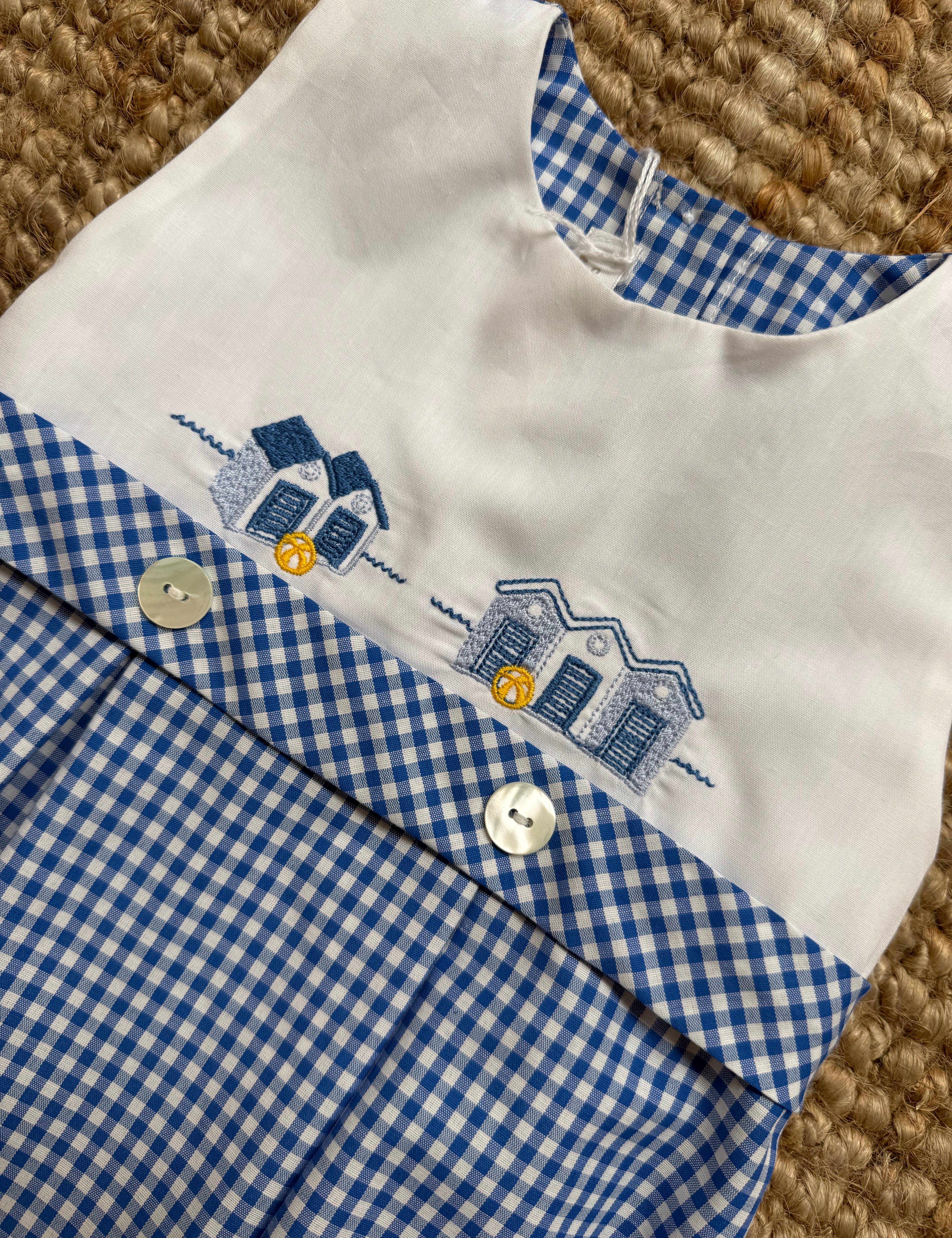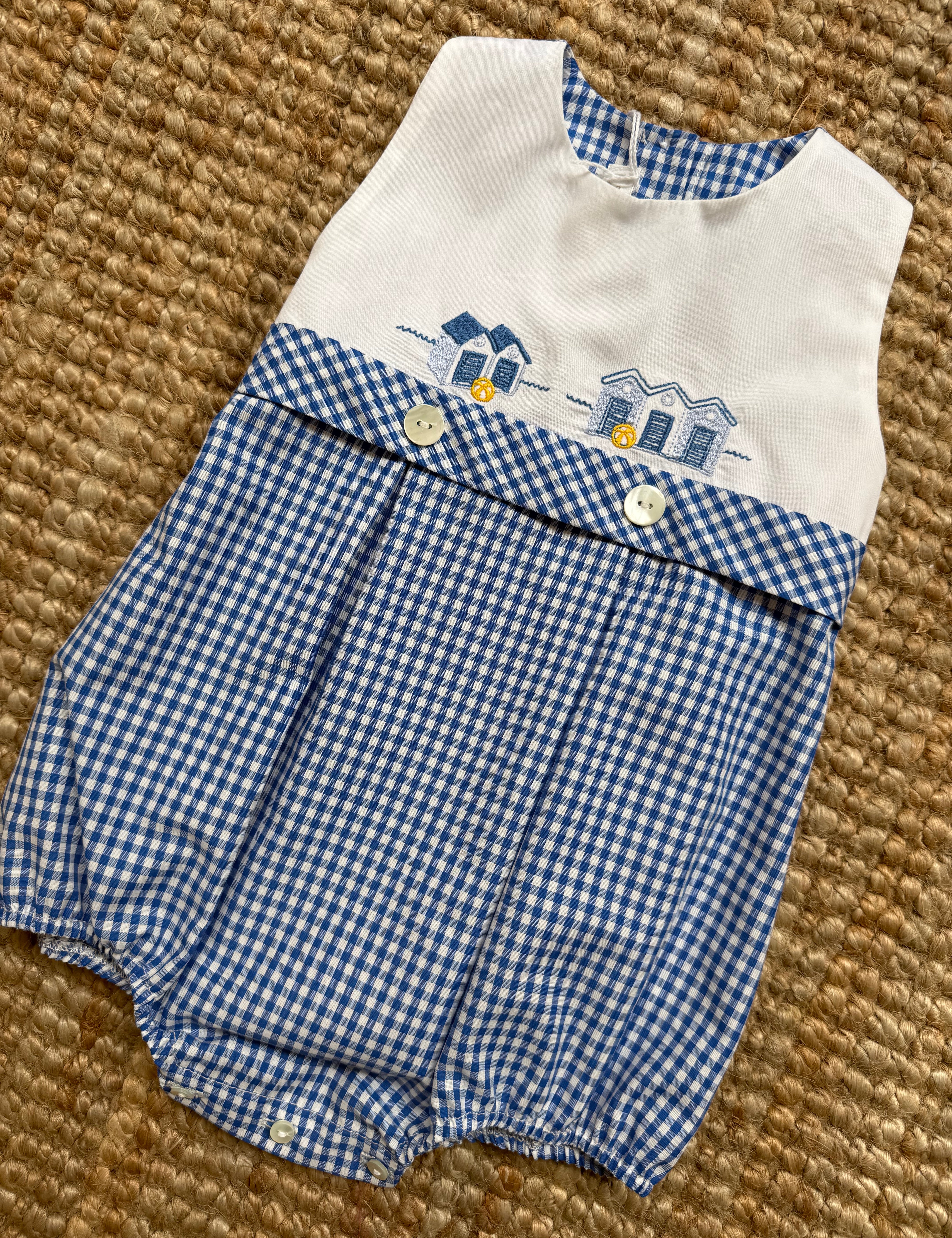 Pagliaccetto vichy blu e bianco ricamo cabine Mariella Ferrari PLD4BIS