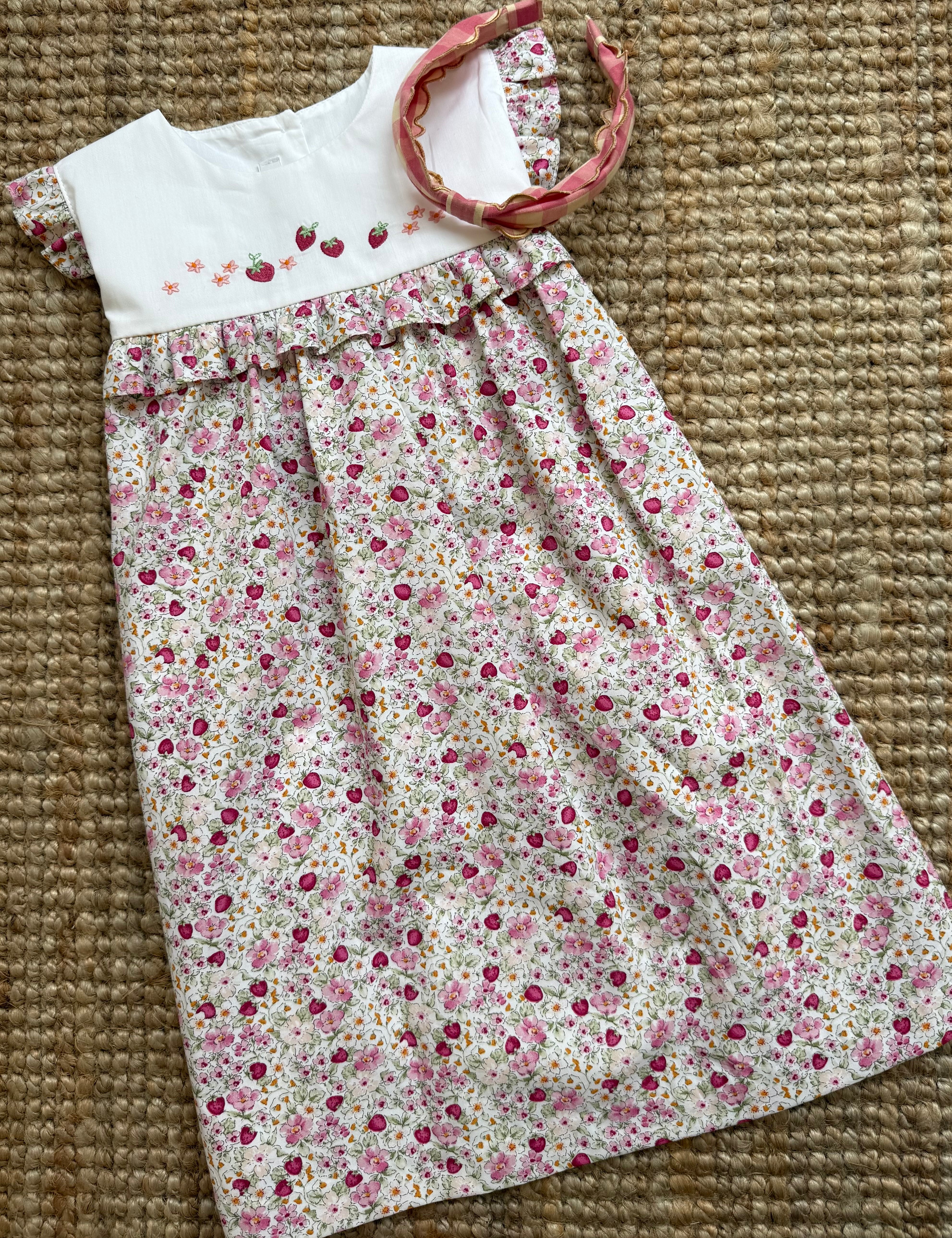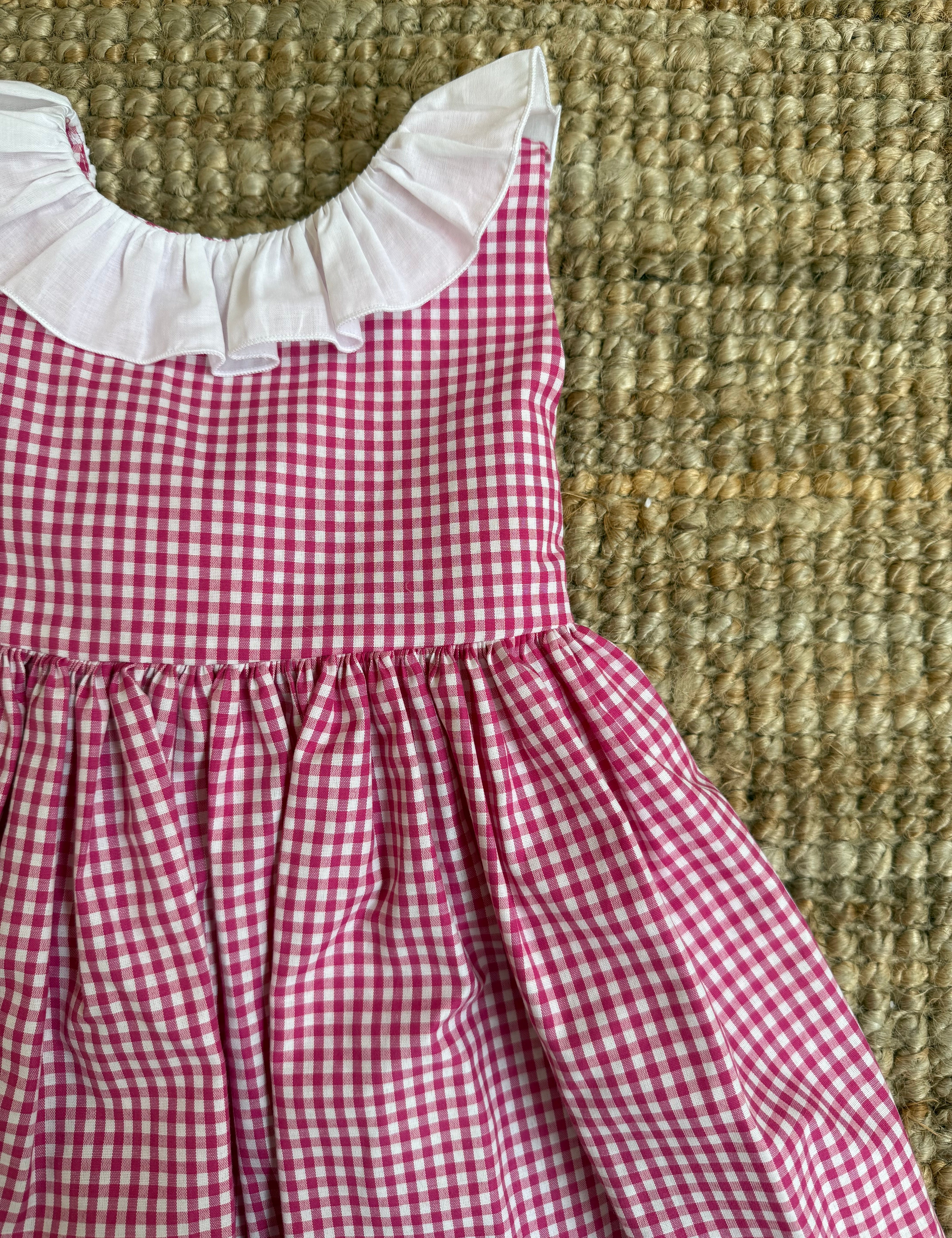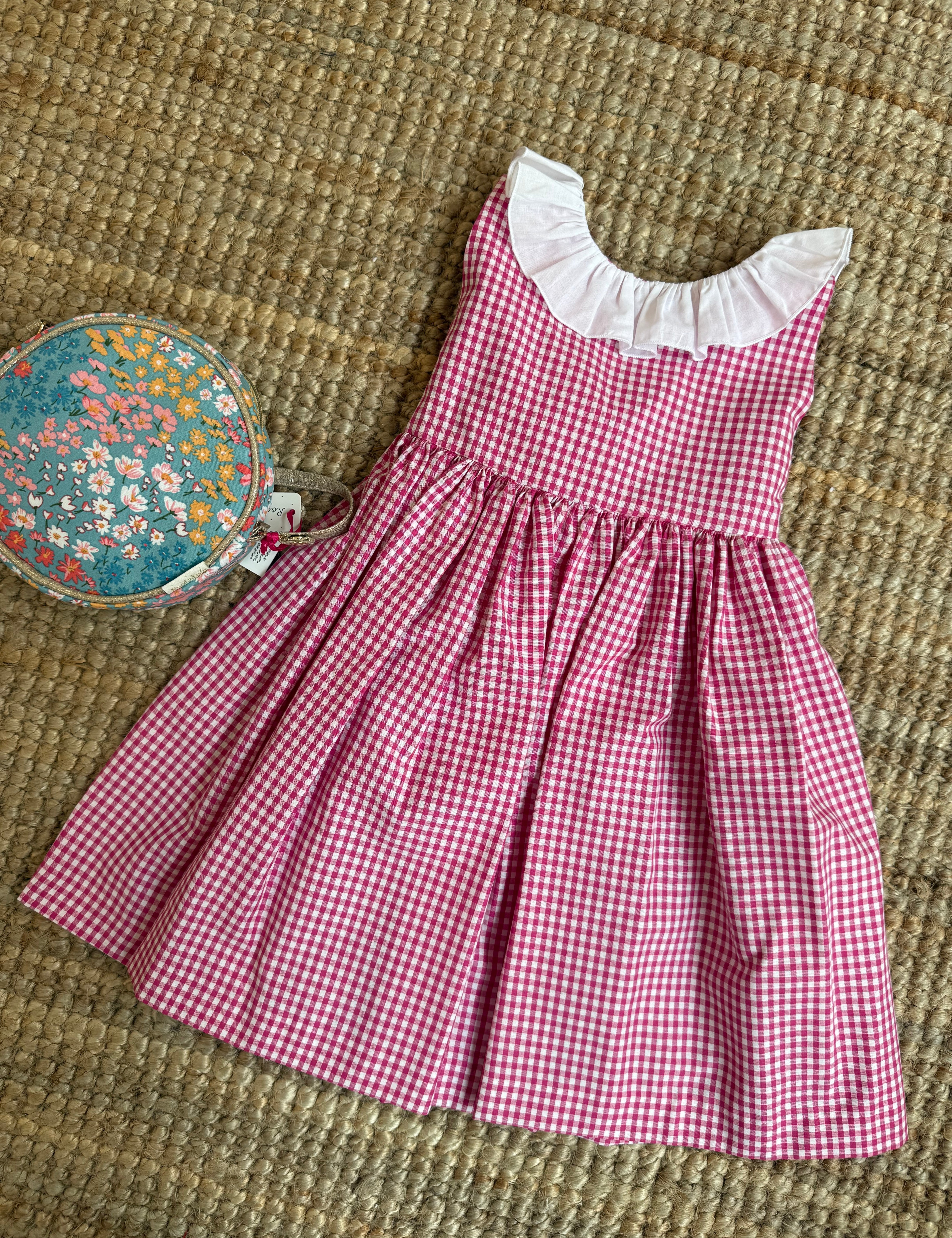 Abito vichy fucsia e bianco con collo frill Mariella Ferrari AT931
