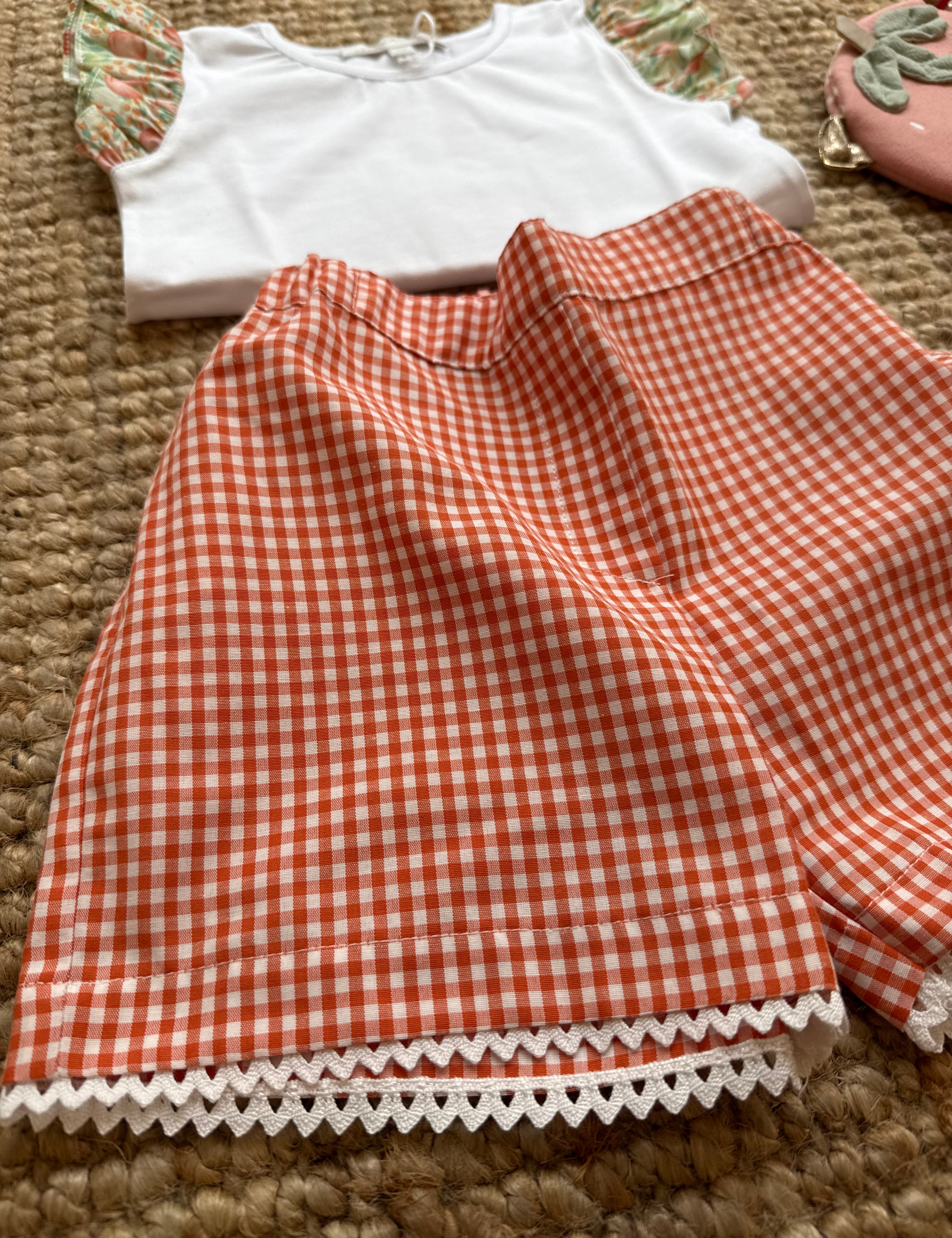 Shorts vichy bianco e arancio Mariella Ferrari PND4