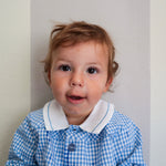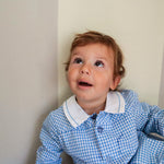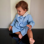 Grembiule LAB vichy bianco e blu collo a punta in cotone